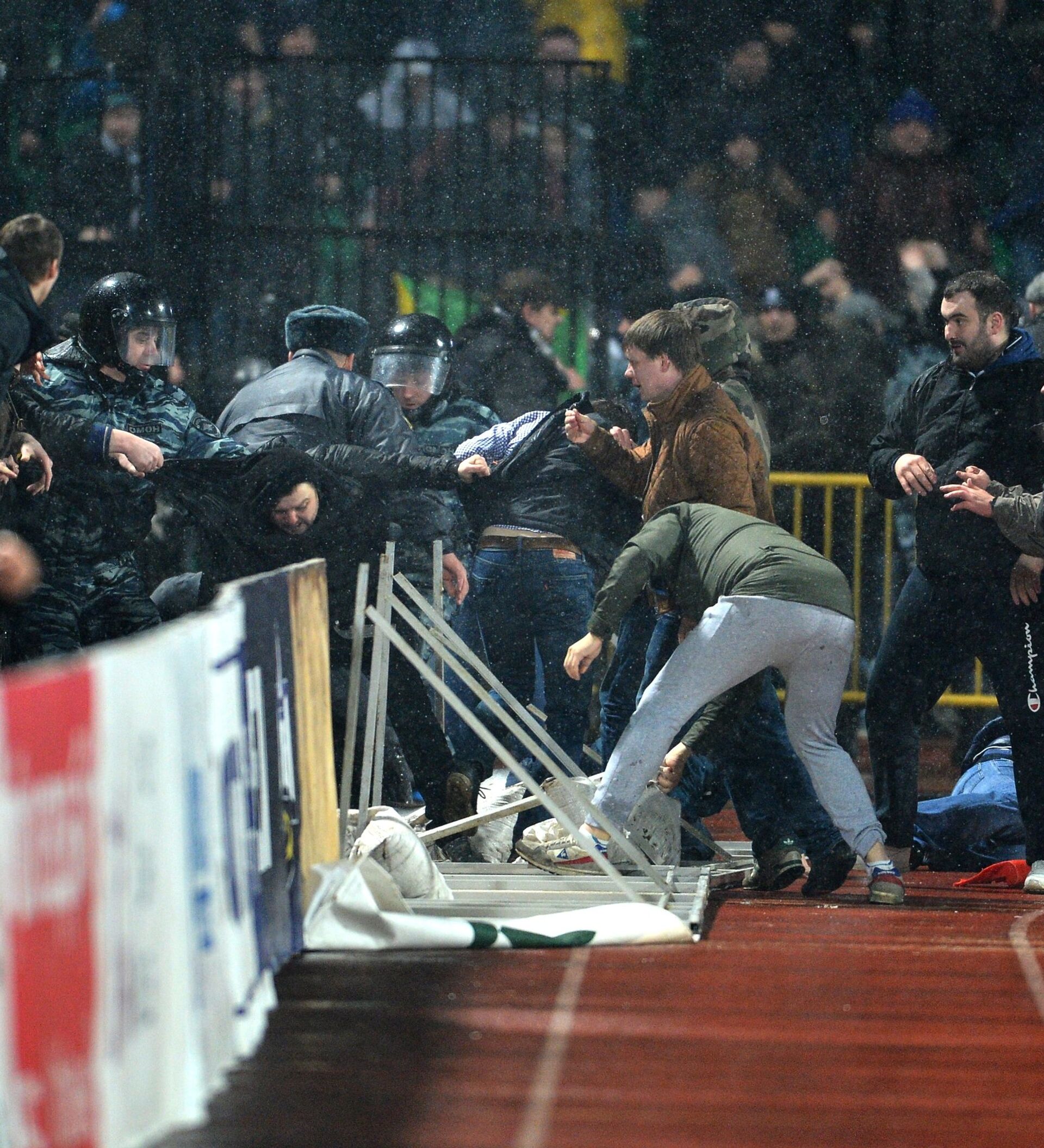 Tula fanları da buna karşılık olarak Moskova taraftarlarına küfür içerikli sloganlar attı. Ardından taraflar aralardaki bariyerleri yıkıp birbirlerinin üzerine yürüdü.