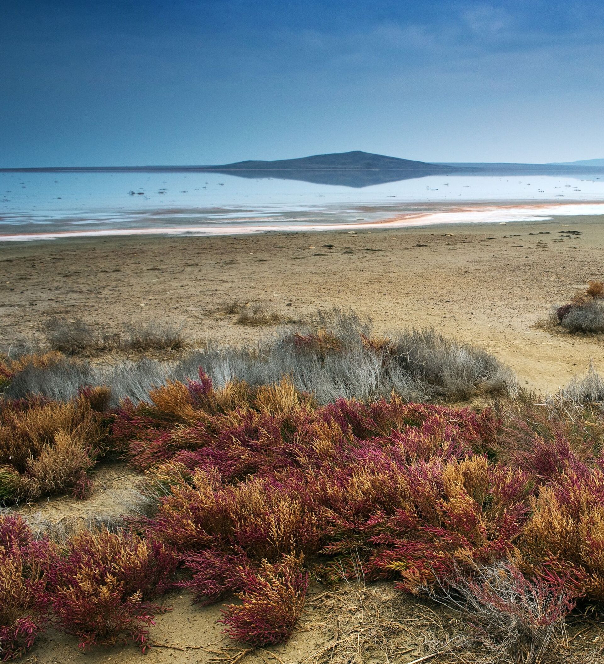 1998 yılından itibaren Kırım'ın Opuksk Doğa Koruma Alanları arasında yer alan meşhur pembe Koyaş Gölü.