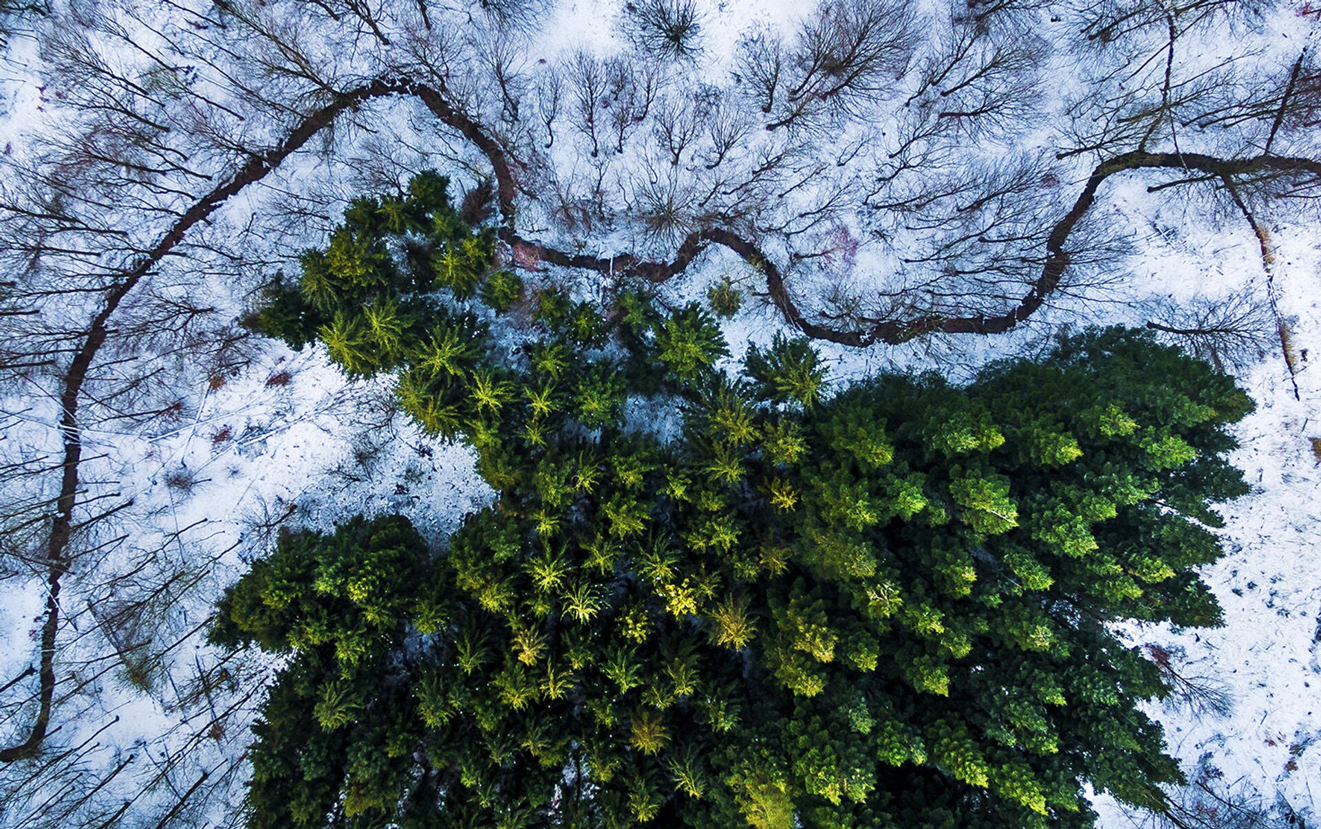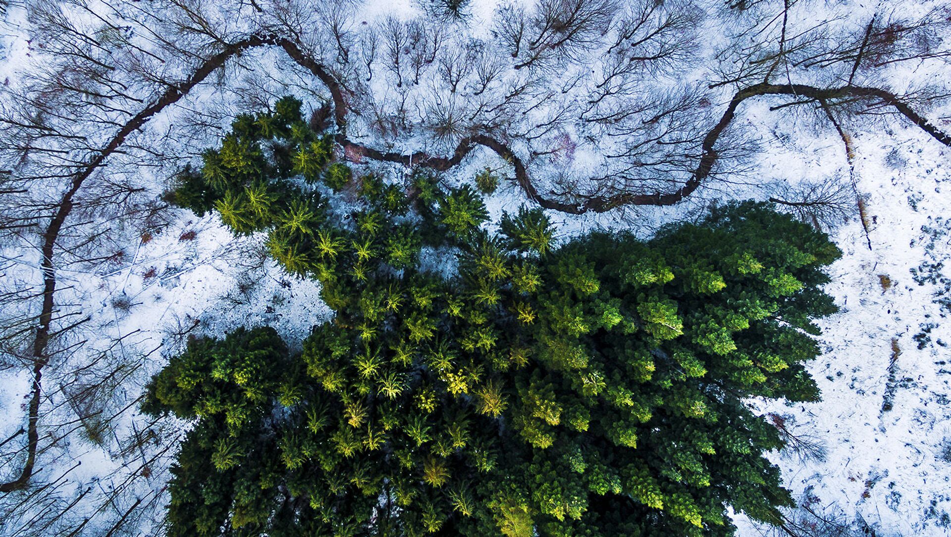 İHA'dan çekilen ve yarışmayı kazanan fotoğrafta Danimarka'daki bir ormanda çam ağaçları görülüyor.
