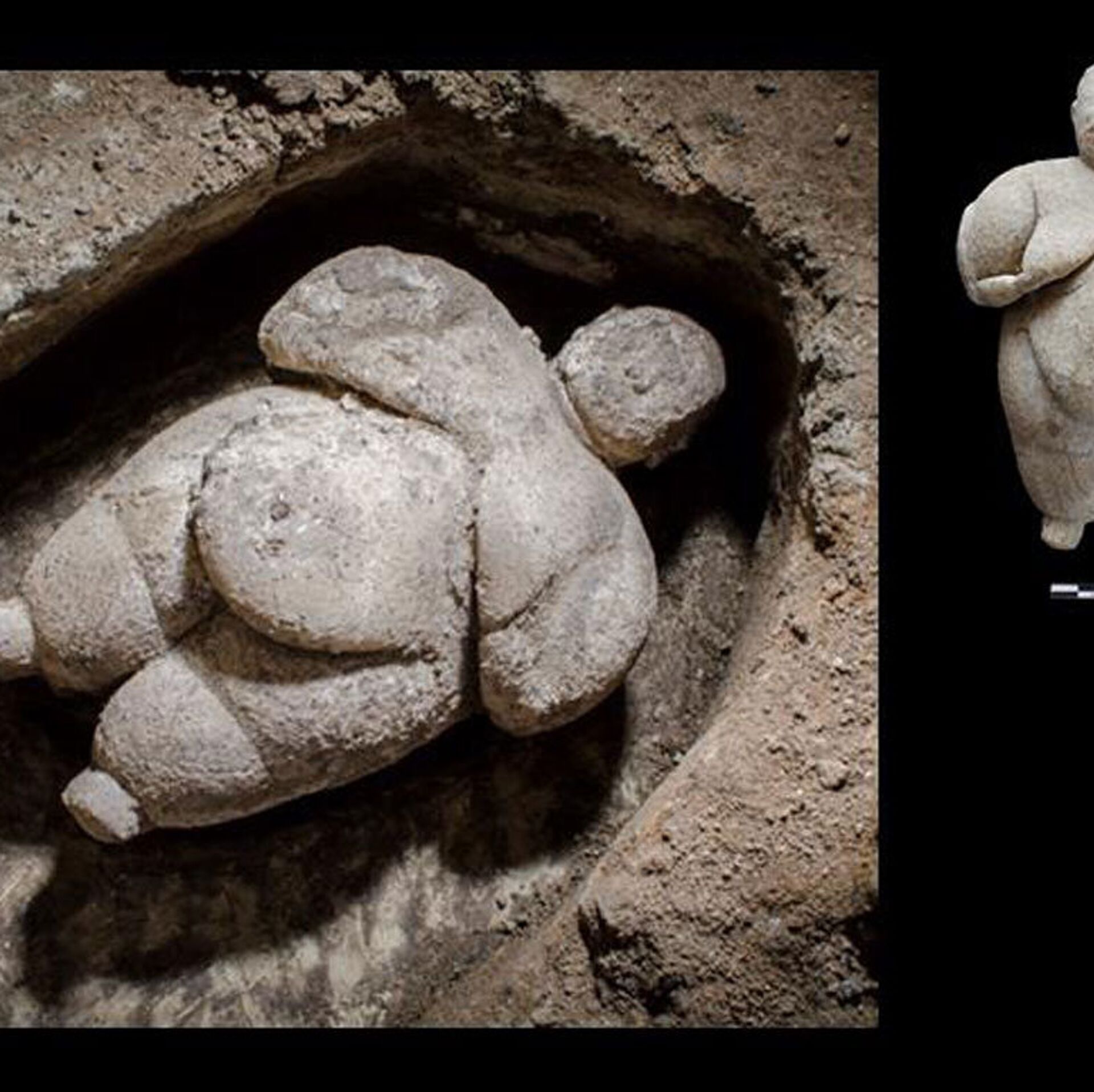 Figürin, genelde olduğu gibi çöp alanında değil, bir platformun altında tek parça volkan camıyla birlikte özenle yerleştirilmiş bulundu. Parça kaybetmeden sağlam kalan eser, 17 santimetre yüksekliğinde ve 1 kilogram ağırlığında.