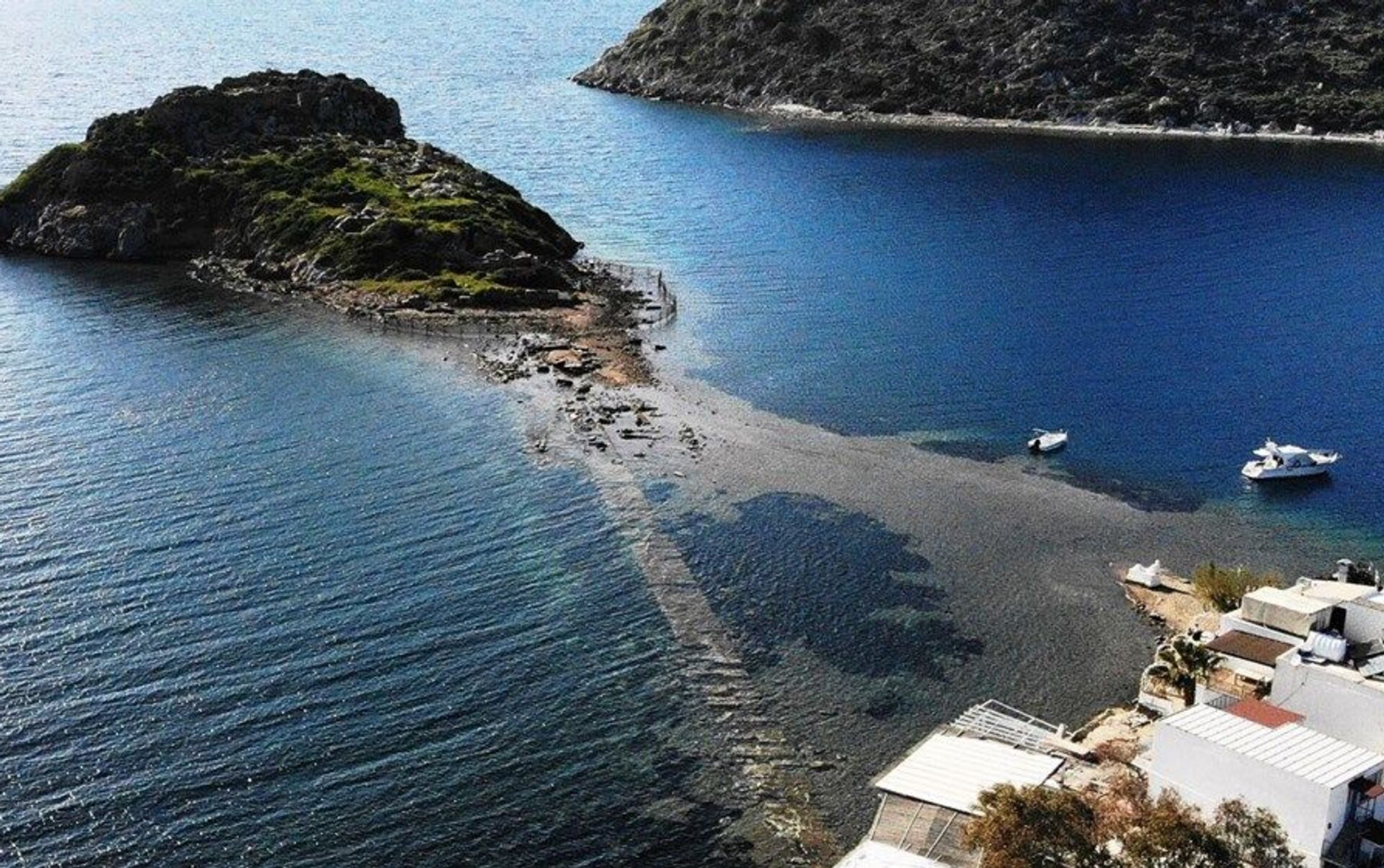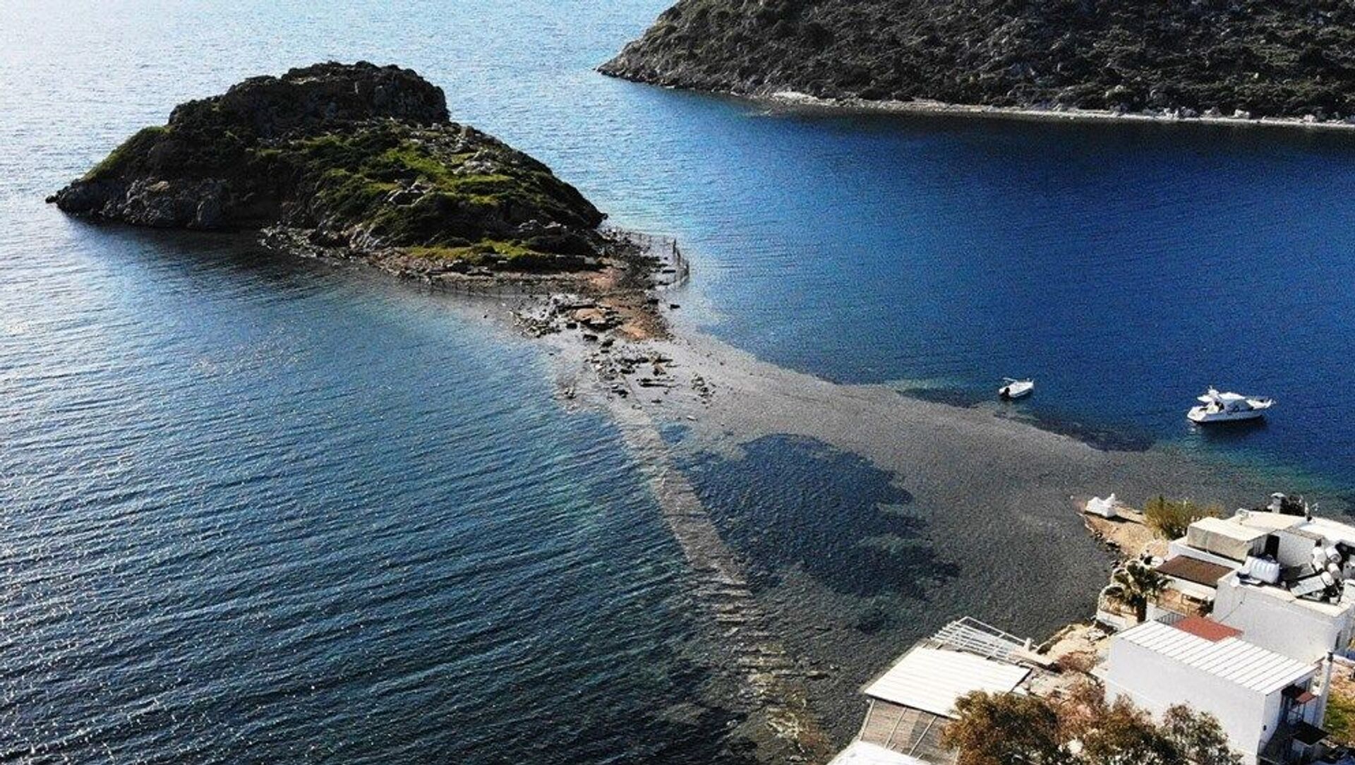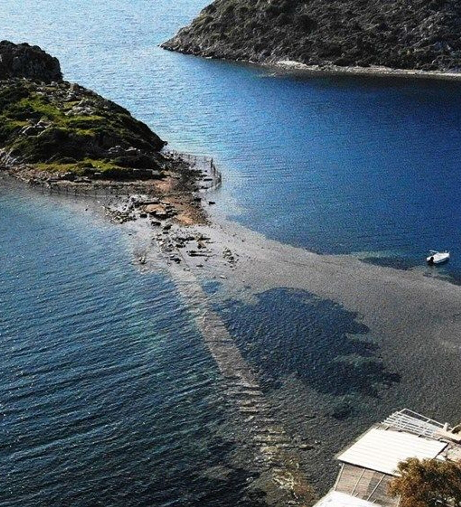 Gümüşlük koyunda aniden çekilen deniz suyu 3 bin 500 yıllık tarihi Mydos kentine giden kral yolunu ortaya çıkardı.
