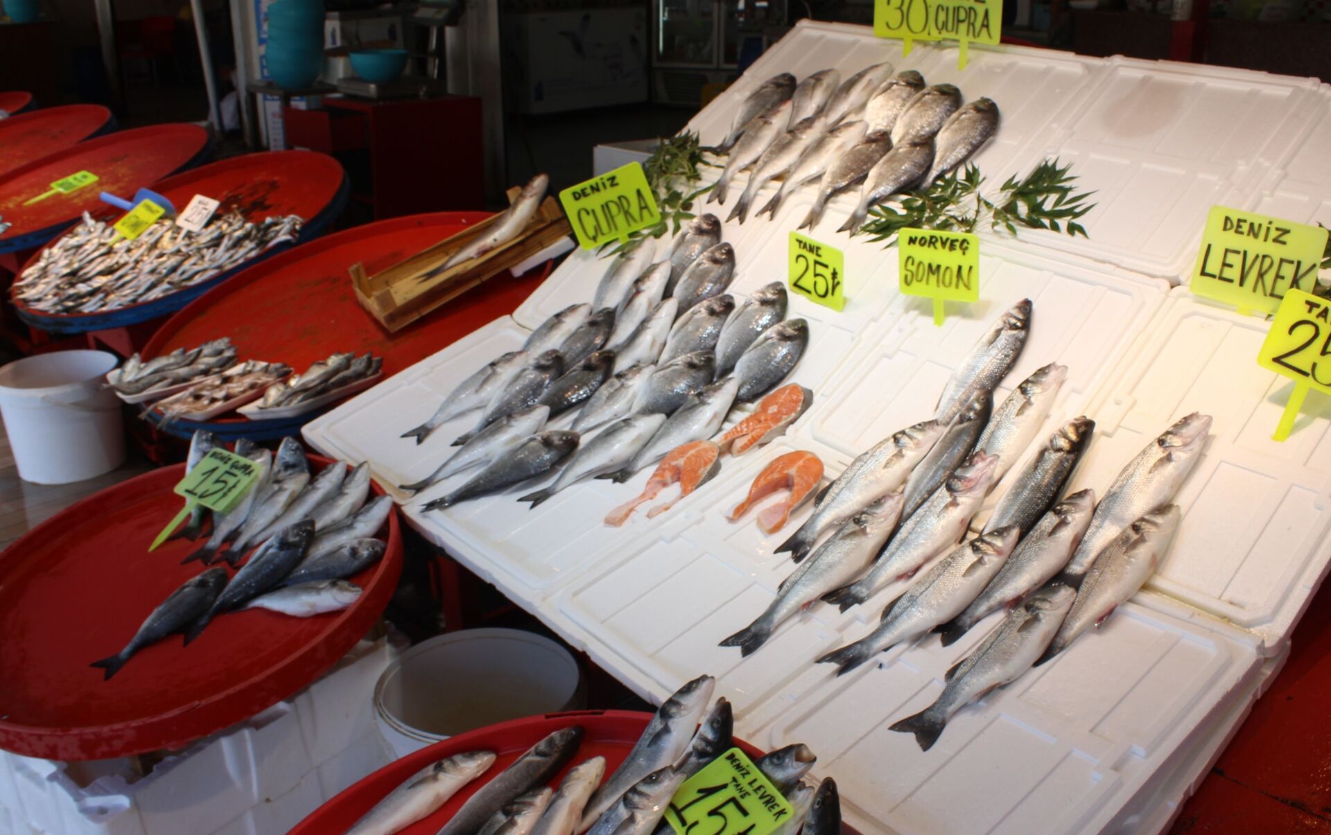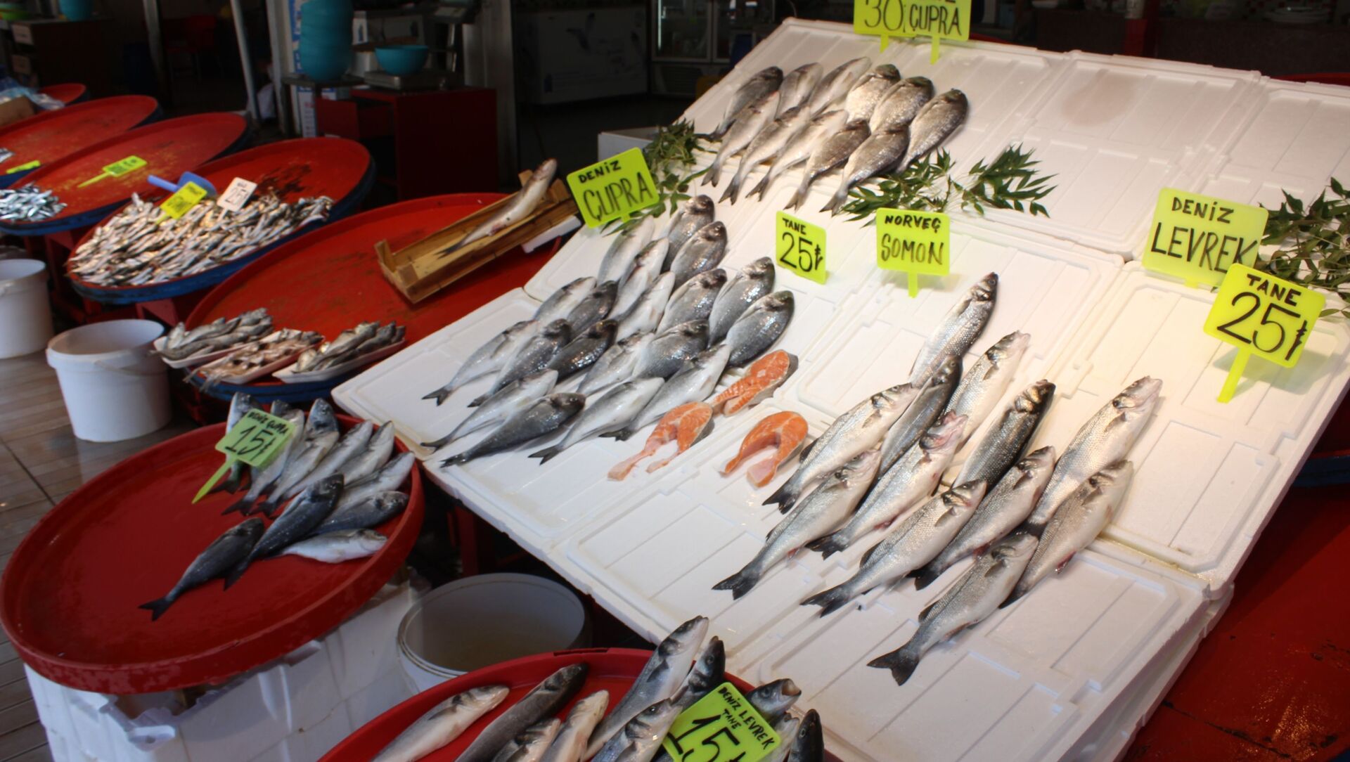 istavrit 25 çipura ve levreğin tanesi 25, hamsinin ise 20 liradan