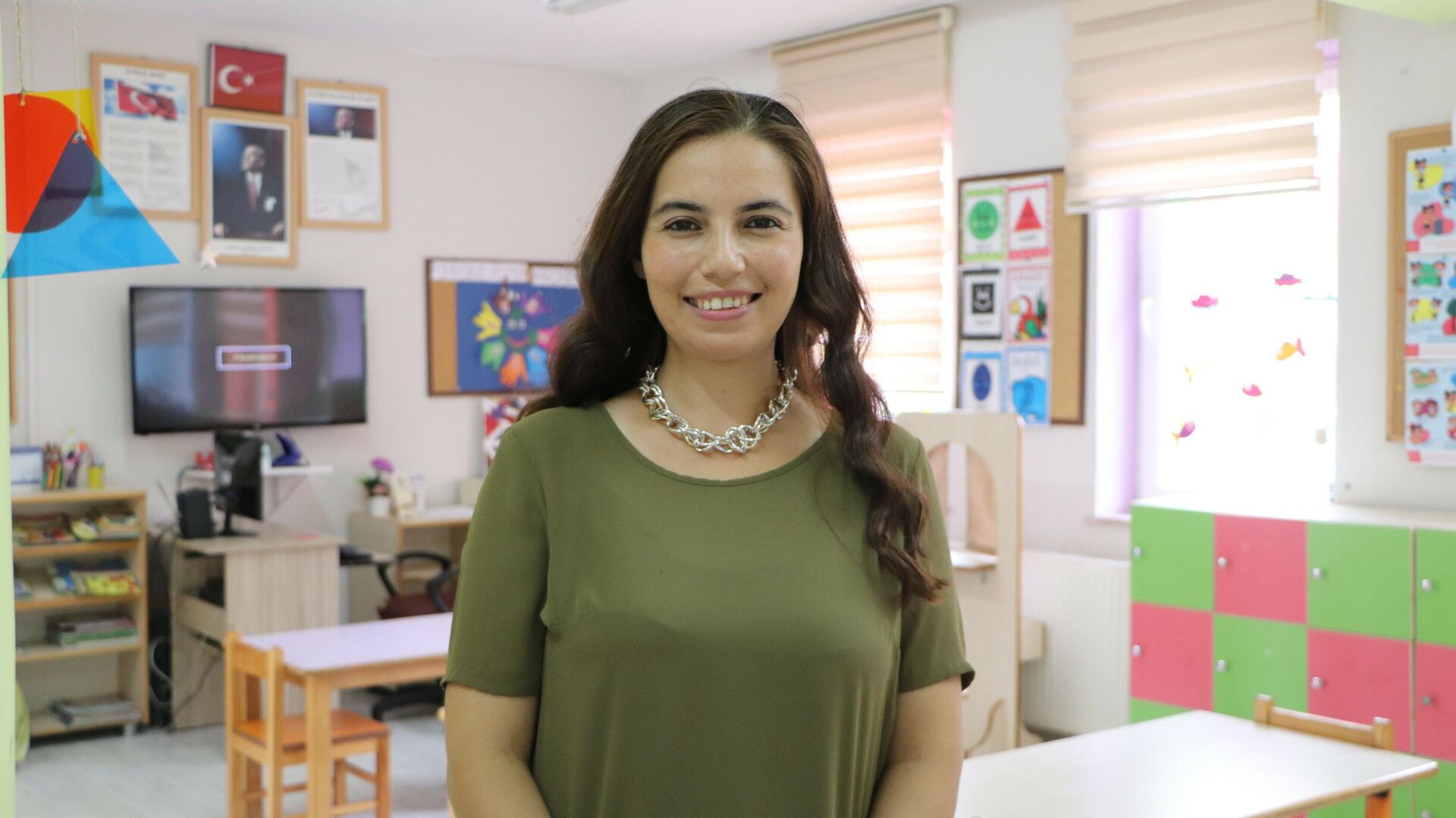 Nurten öğretmen, Salıpazarı Anaokulu'nda müdürlük görevinin yanı sıra eğitim projelerine de devam ediyor.
