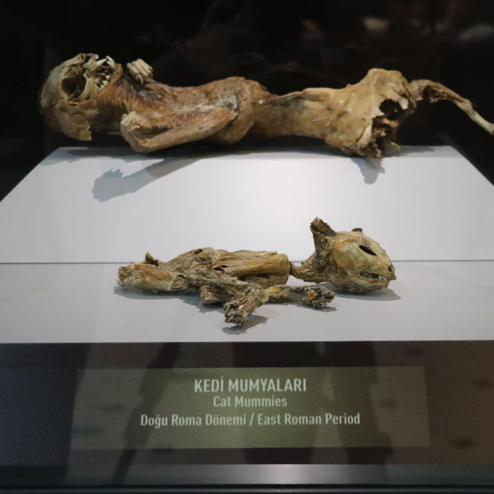 Mumyalama tekniği ile sahibi tarafından çok sevilen bir kedinin de mumyalanarak korunduğunu ifade eden Müze Müdürü Yusuf Altın, kazı kurtarma çalışmalarında bir adet kedi mumyası bulunduğunu ifade etti. Kedi mumyasının da çocuklar tarafından büyük ilgi gördüğünü söyleyen Altın, “Diğer bir mumyamız ise özellikle çocuklarımızın dikkatini çeken kedi mumyamız var. Kedi mumyamızda muhtemelen sahibi tarafından çok sevildiği için balmumu ile kaplanıp korunmuş. Bizler de bunu tespit ettikten sonra onu da müzemizde sergiliyoruz. Mumyalarımızın hepsi 10, 11 ve 12. yüzyıllara ait mumyalar. Yani yaklaşık bin yıllık mumyalar” diye konuştu.