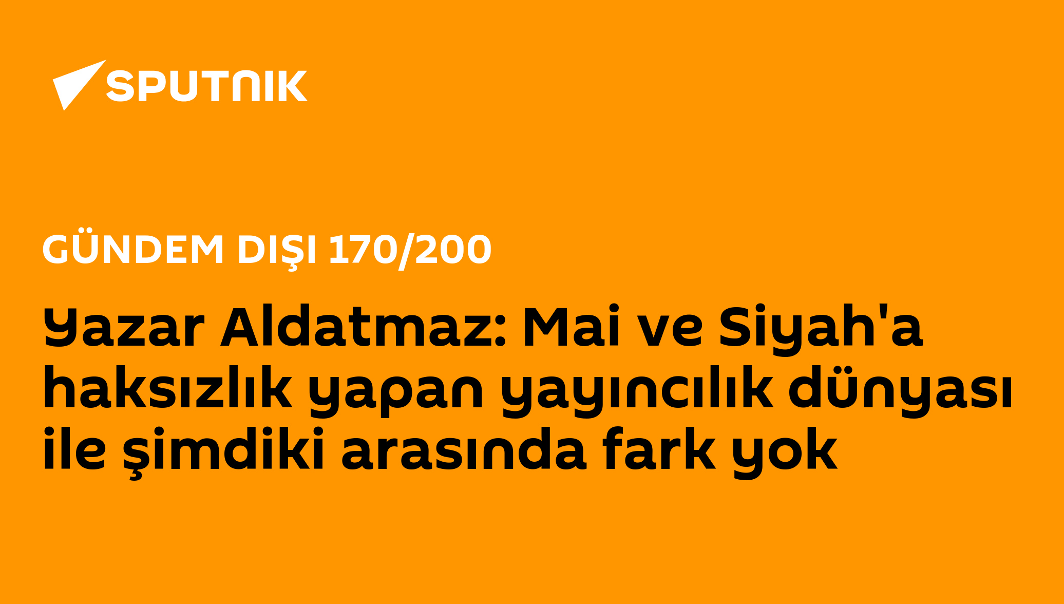 Yazar Aldatmaz, “Mai ve Siyah bugün kült, herkesin bildiği bir kitap ama bakıyoruz yayınlama aşamasında çok büyük umutsuzluklar, bazı yayıncılardan gördüğü... 03.04.2022, Sputnik Türkiye