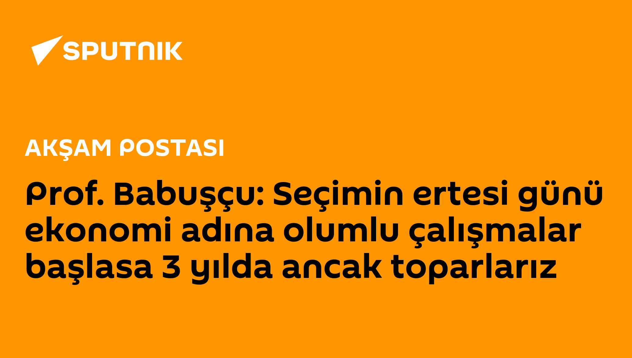 22:22 08.06.2022 (güncellendi: 12:14 09.06.2022) Radyo Sputnik’te Atilla Güner’le Akşam Postası yayınına konuk olan Ekonomist Prof. Şenol Babuşçu "Enflasyonun 6 ayda ulaştığımız noktaya geri gelmesi 3 yılımızı alabilir. Muhalefet iktidara gelse, yeni bir hükümet kurulsa ve seçimin ertesi günü ekonomi adına olumlu çalışmalar başlasa 3 yılda ancak toparlarız" açıklamasında bulundu.
