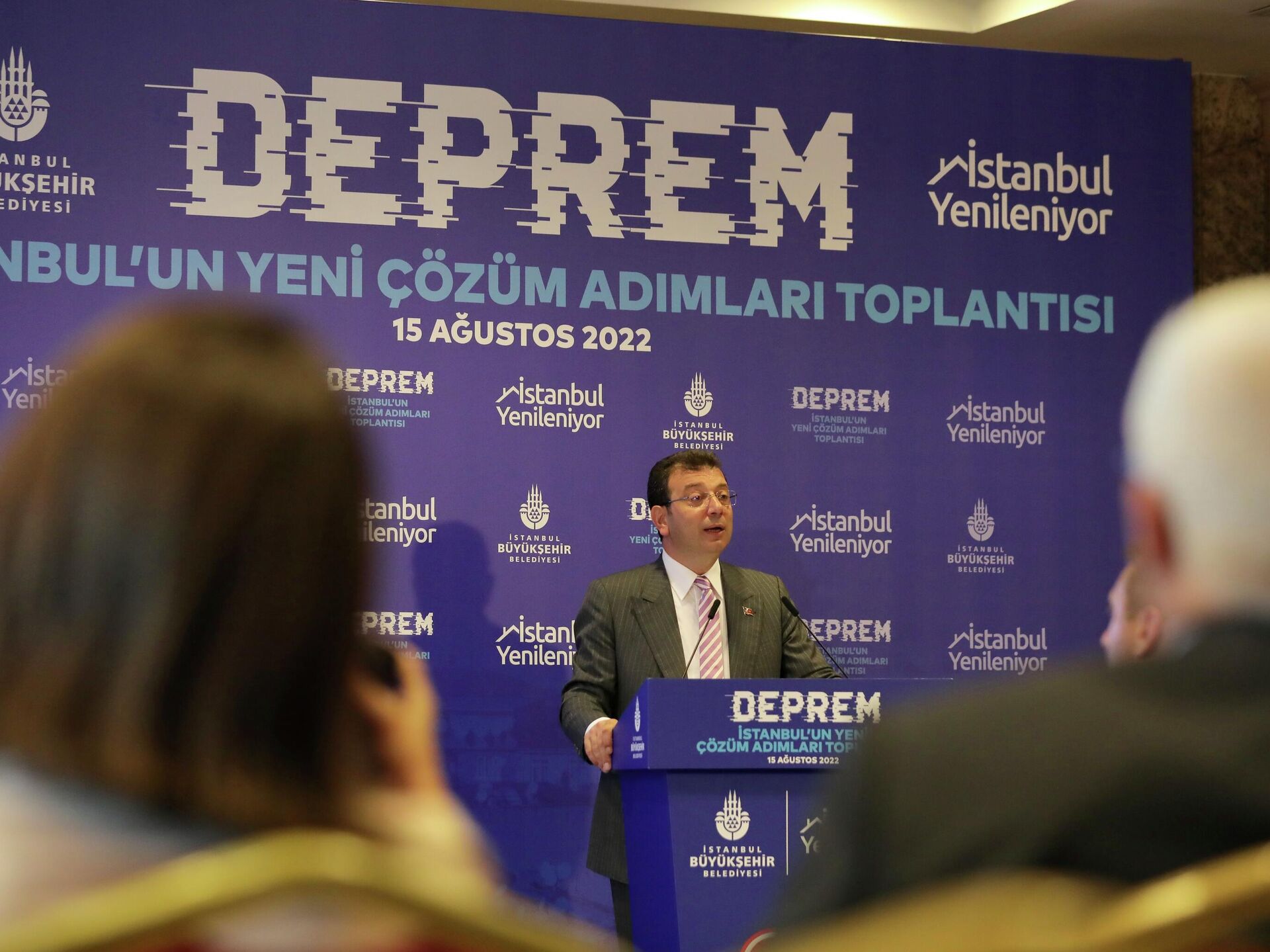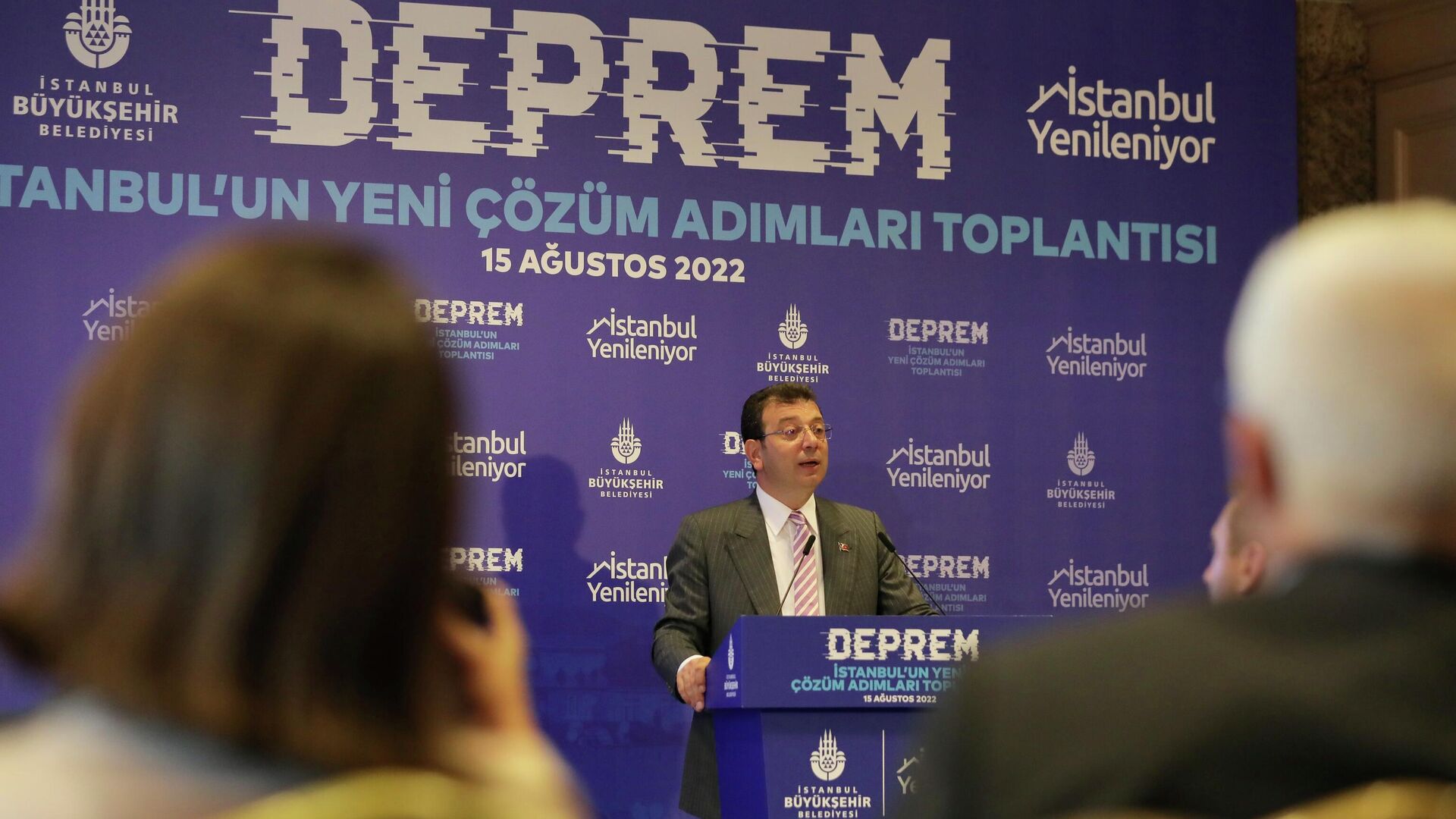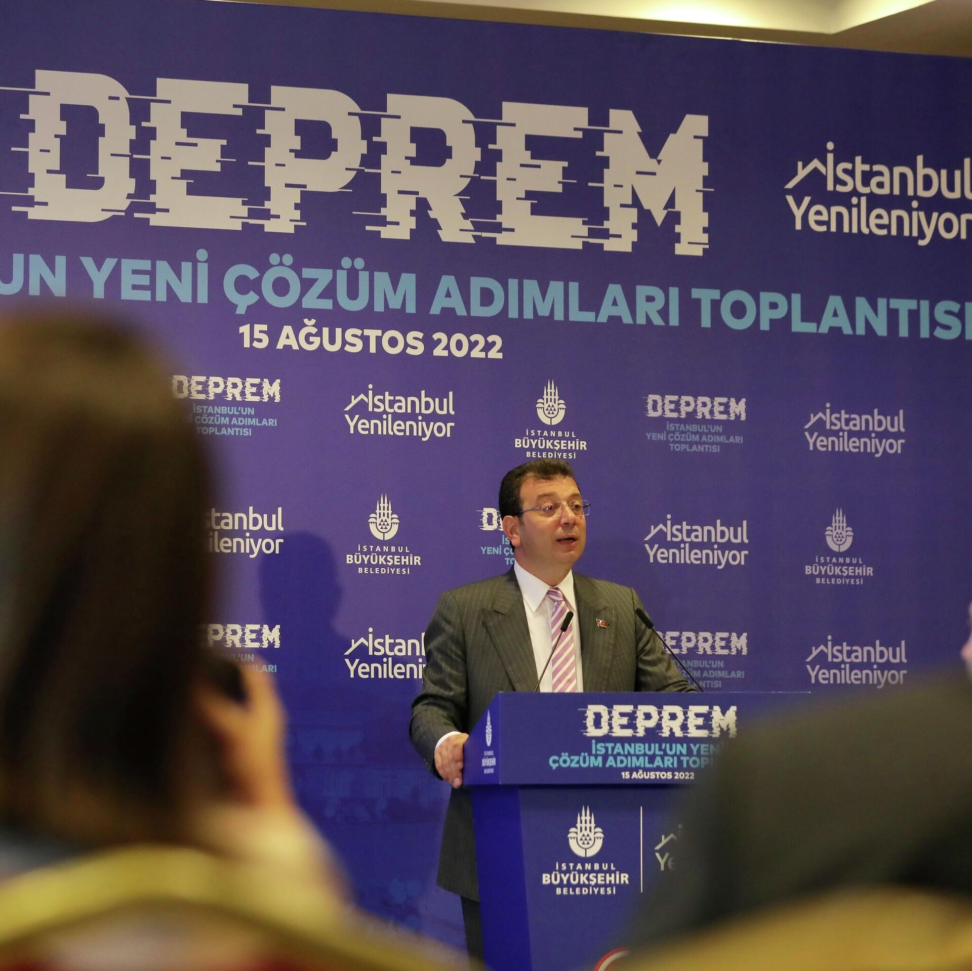 İstanbul Büyükşehir Belediye (İBB) Başkanı Ekrem İmamoğlu, Haliç Kongre Merkezi'nde düzenlenen "İstanbul'un Yeni Çözüm Adımları" konulu toplantıda, kentin olası depreme hazırlık süreciyle ilgili bilgiler paylaştı.