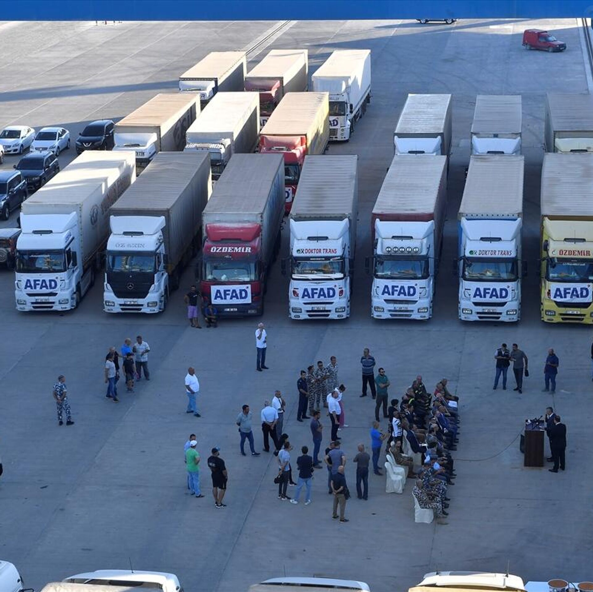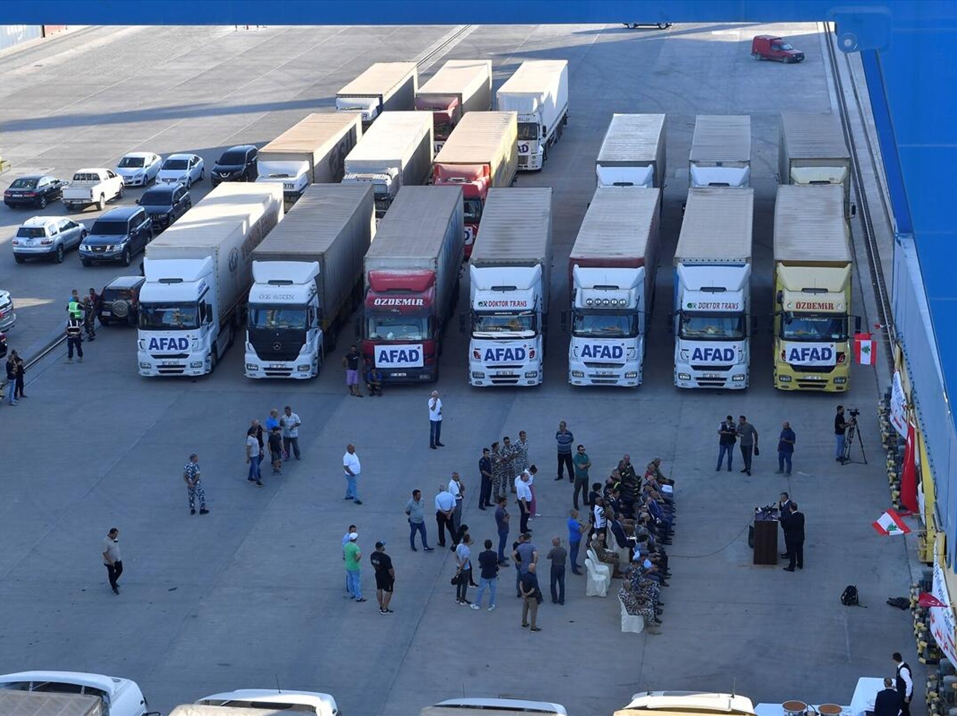 Türkiye'den Lübnan'a gönderilen 23 TIR'lık insani yardım gemisi, Trablusşam kentinde resmi törenle karşılandı.