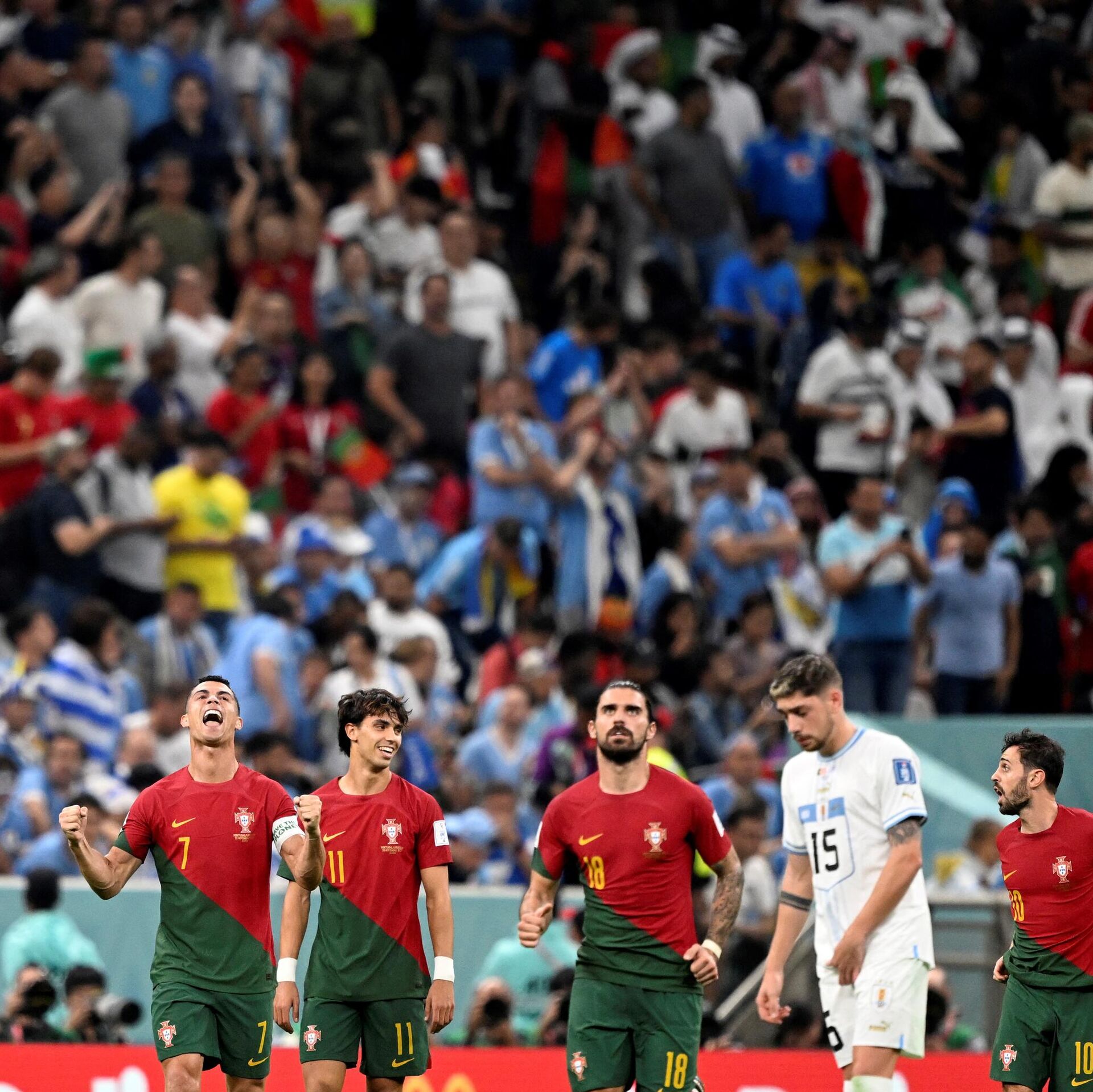 2022 FIFA Dünya Kupası'nda Portekiz, H Grubu'ndaki ikinci maçında Uruguay'ı 2-0 mağlup ederek son 16 turuna çıkmayı garantiledi. Brezilya da G Grubu'ndaki ikinci maçında İsviçre'yi 1-0 mağlup etti ve son 16'ya yükselmeyi başardı.  - Sputnik Türkiye, 1920, 29.11.2022