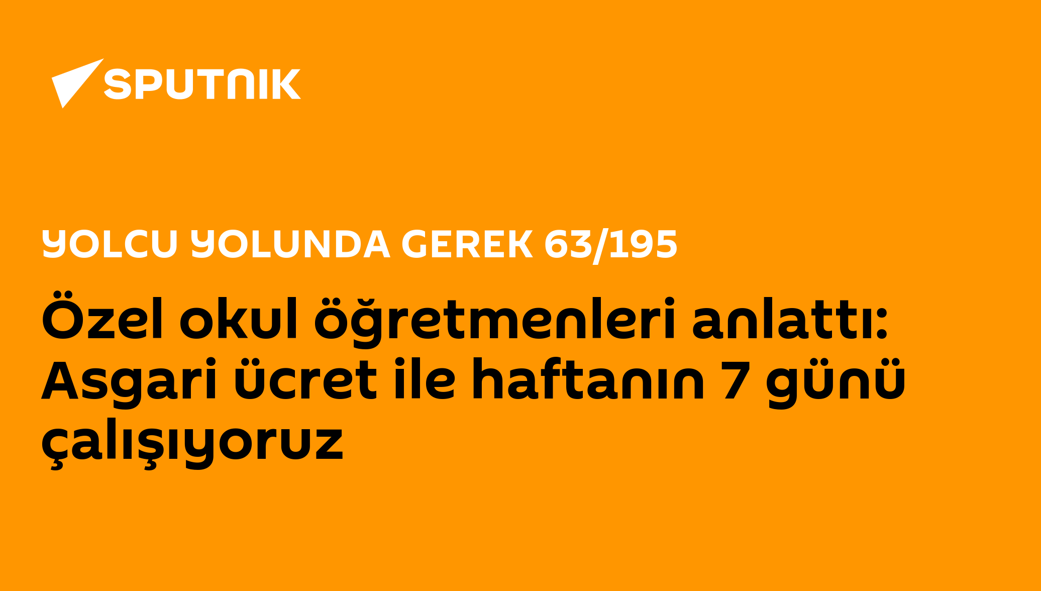Radyo Sputnik’te Yolcu Yolunda Gerek programında özel okullardaki öğretmenlerin durumu masaya yatırıldı.Konuya ilişkin Birlik Sendikası ve Özel Sektör Öğretmenleri Sendikası temsilcileri ile çok sayıda özel okul öğretmeni yayına bağlanarak sorunlarını anlattı. Genel olarak düşük maaşlardan ve ağır çalışma koşullarından bahseden öğretmenler, çoğunun asgari ücretle haftada 7 gün çalıştıklarını aktardı.Özel okullardaki fiyat artışları nedeniyle 250 bin öğrenci, velileri tarafından özel okullardan alındı. Bu sebeple 20 bin öğretmenin de işine son verildi. Milli Eğitim Bakanlığı ise belirlenen yüzde 65'lik zammın üstüne çıkan özel okullarla ilgili inceleme başlattı.