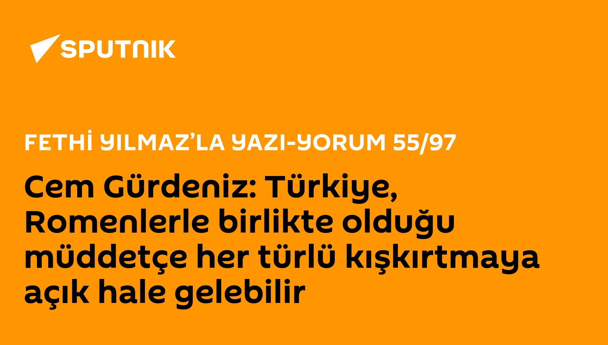 Yazı-Yorum programında Fethi Yılmaz'ın konuğu olan Emekli Tümamiral Cem Gürdeniz, Karadeniz'deki tehlikeye dikkat çekti. Gürdeniz, "Benim korkum Romanya her türlü kışkırtmayı Amerikan, İngiliz, Alman istihbaratı üzerinden yapabilecek pozisyonda bir ülke. Türkiye, Romenlerle birlikte olduğu müddetçe her türlü kışkırtmaya açık hale gelebilir.” dedi.
