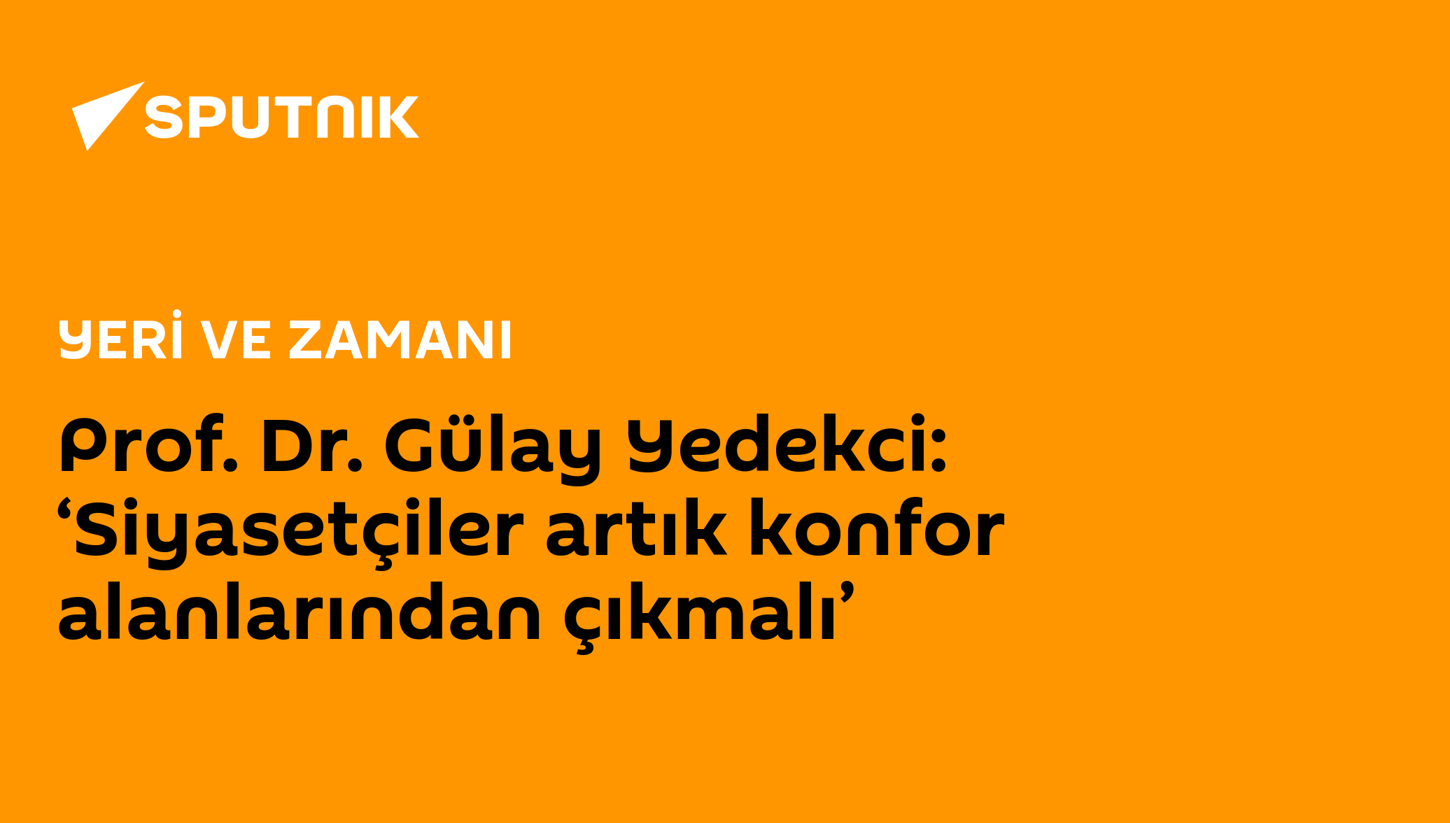 09:07 24.03.2025 (güncellendi: 15:33 24.03.2025) Radyo Sputnik’teki Yeri ve Zamanı programında Güçlü Özgan’ın konuğu eski CHP Milletvekili Prof. Dr. Gülay Yedekci oldu. Yedekci, “Toplum siyasetin ve siyasetçilerin çok önünde ilerliyor. Özellikle CHP’nin bunu öngörüp anlaması ve doğru kanalize etmesi lazım. Siyasetçiler artık konfor alanlarından çıkmalı” dedi.