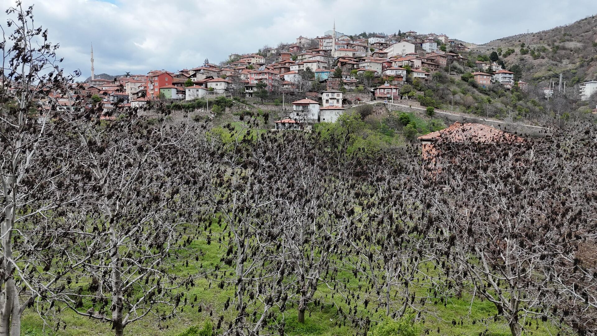 Yeni filizlenen ceviz ağaçlarının dallarının yeşilden siyaha döndüğü görüntülere yansıdı.