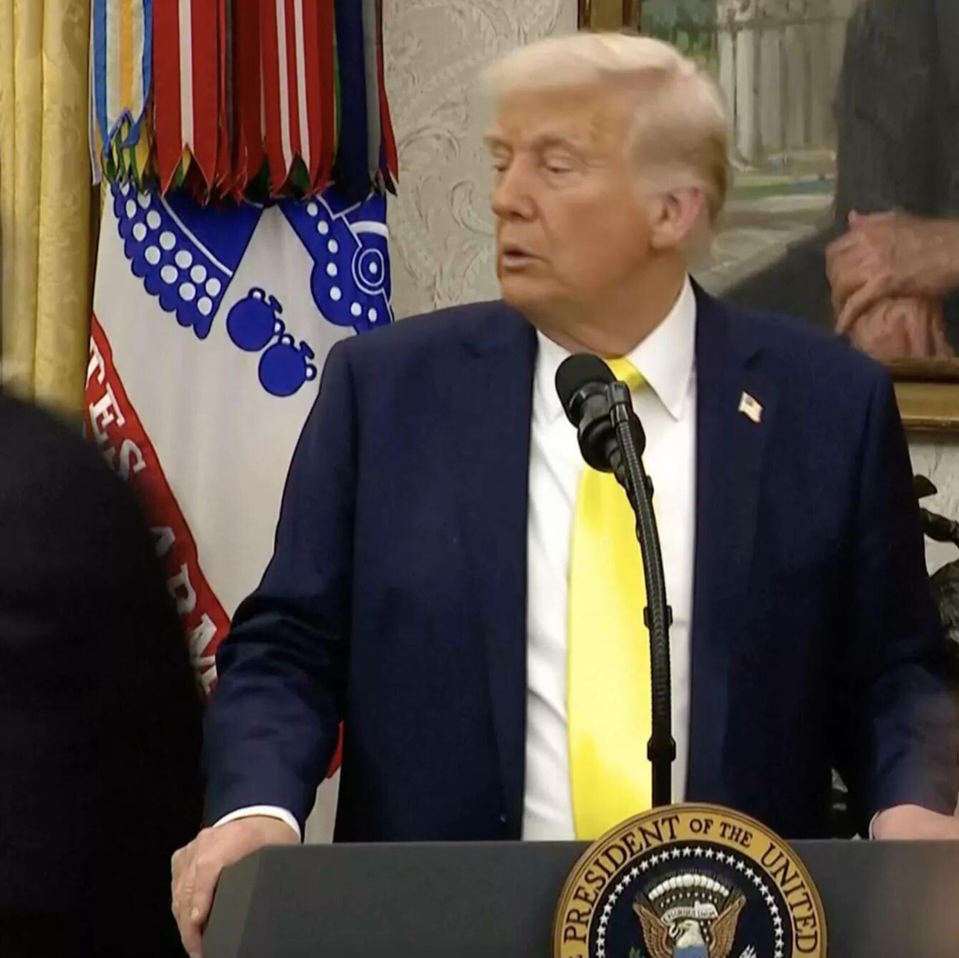 00:01 19.04.2025 (güncellendi: 00:03 19.04.2025) ABD Başkanı Donald Trump'ın, Dr. Mehmet Öz'ün 'Medicare ve Medicaid Hizmetleri Merkezi' yöneticiliği yemin töreni sonrasındaki basın toplantısı, Öz'ün 11 yaşındaki torununun bayılmasıyla kesintiye uğradı. Dr. Öz'ün kızı Daphne babasına bağırırken Trump şaşkına döndü. Yetkililer olay yerine koşarken, basın mensuplarına odadan çıkmaları emredildi.