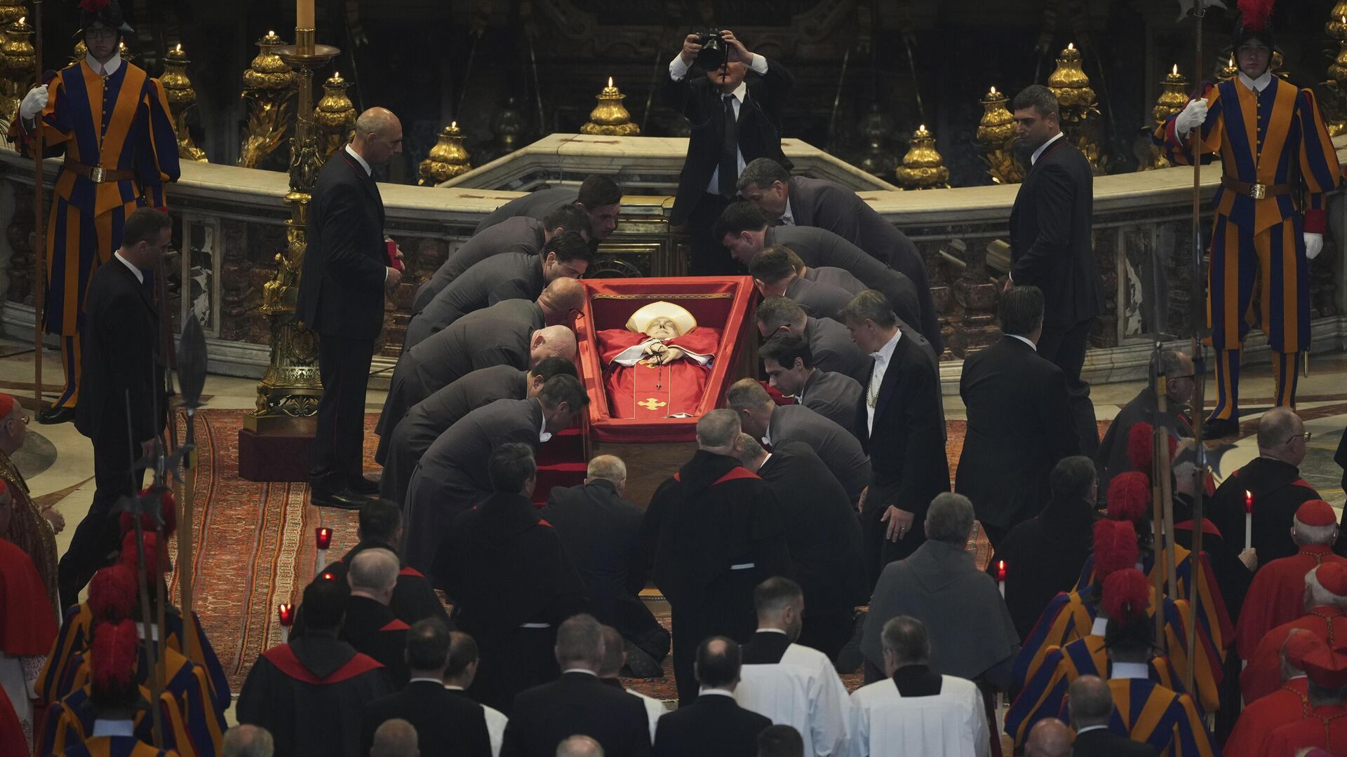 Cenaze töreni Aziz Petrus Bazilikası'nın önündeki meydanda yerel saatle 10:00'da başlayacak. Cenaze törenine dünyanın dört bir yanından patrikler, kardinaller, başpiskoposlar, piskoposlar ve rahipler katılacak. Kardinaller Koleji dekanı Kardinal Giovanni Battista Re ayini yönetecek.
