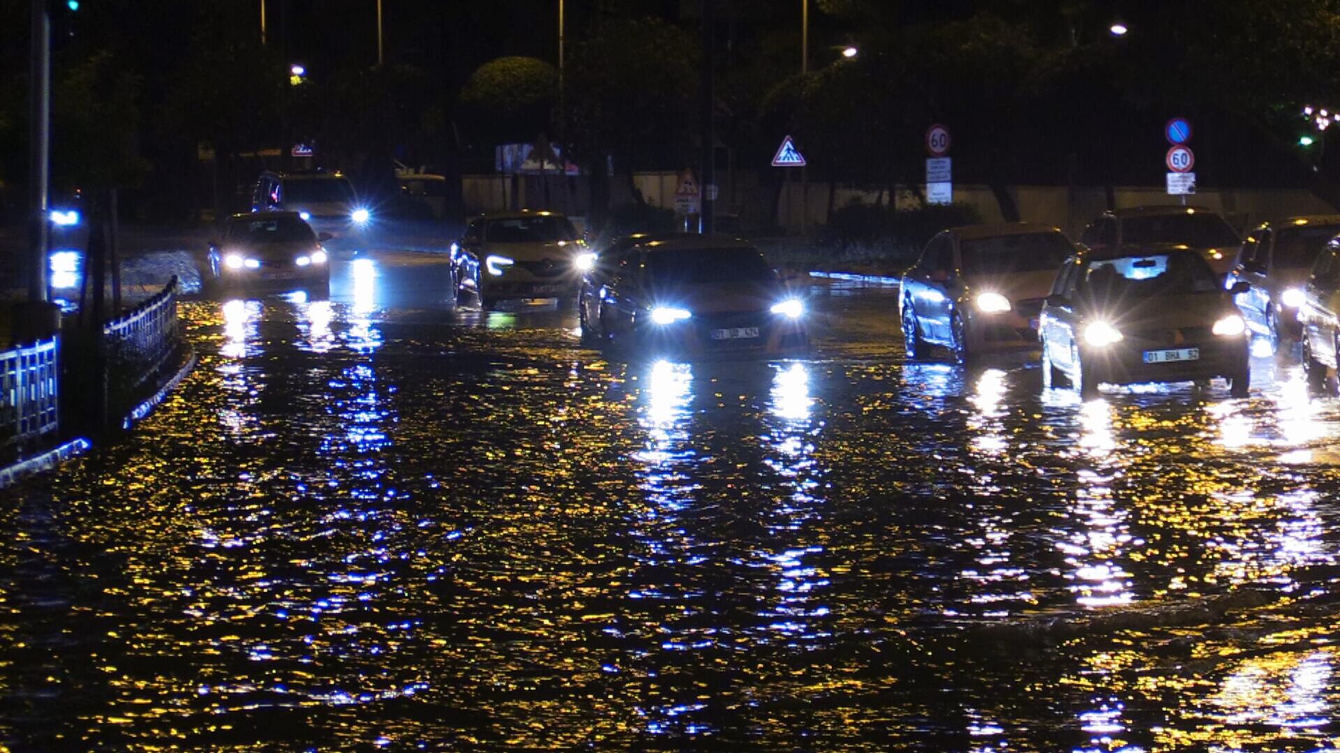 Adana'da sağanak: Su birikintileri oluştu, caddelerde araçlar mahsur kaldı