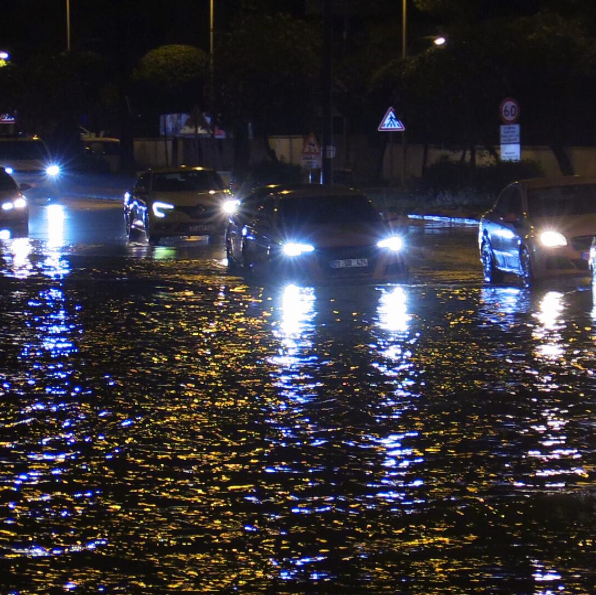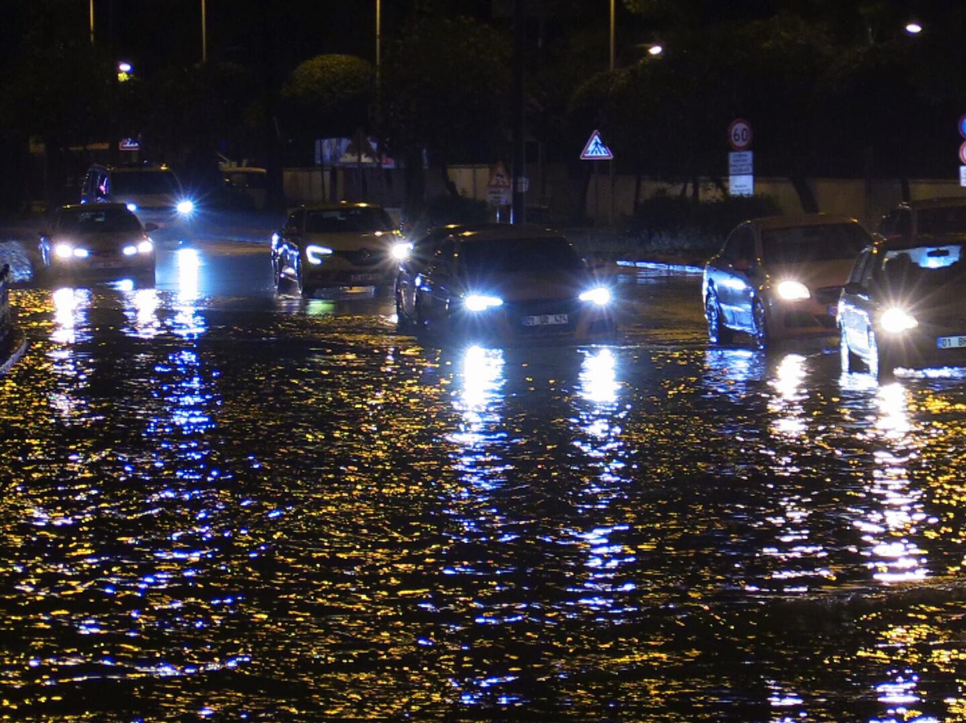 Türkiye'de bazı kentleri etkisi altına alan sağanak yağışın yaşandığı Adana'da yağış sonrası bazı cadde ve sokaklarda su birikintisi oluştu. 25.04.2025, Sputnik Türkiye