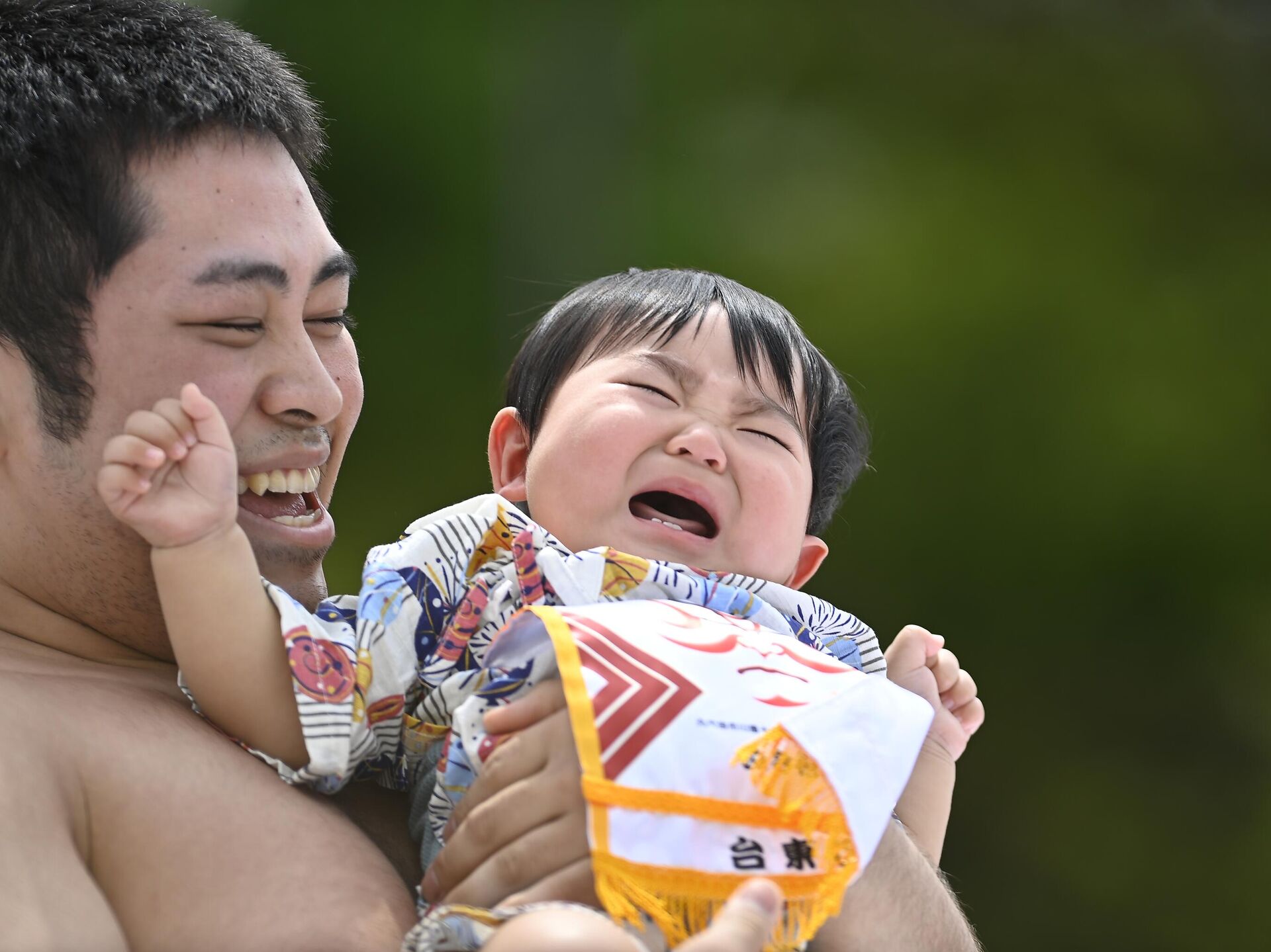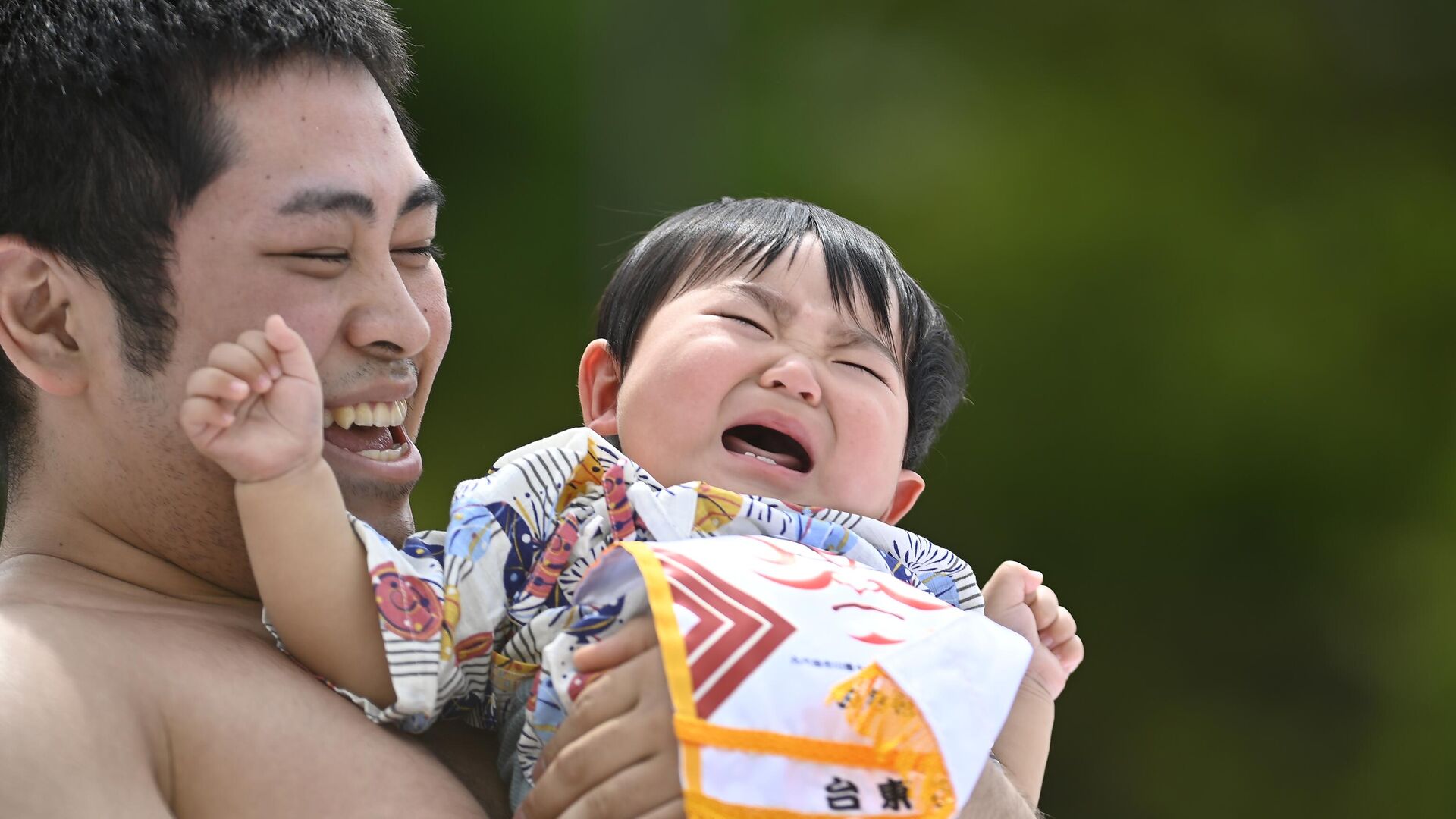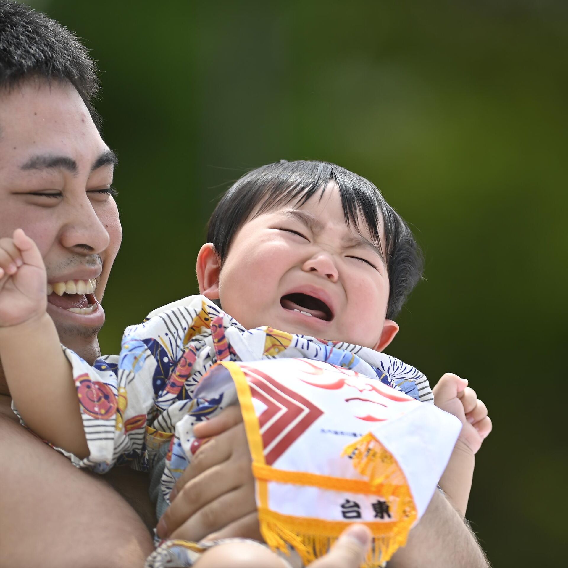 Japonya'nın köklü geleneklerinden biri olan "Ağlayan Bebek Sumo" festivali, bu yıl da coşkuyla kutlandı. Başkent Tokyo’daki Sensoji Tapınağı'nda gerçekleştirilen etkinlikte, sumo güreşçileri kucaklarında tuttukları bebeklerin ağlaması için yarıştı.