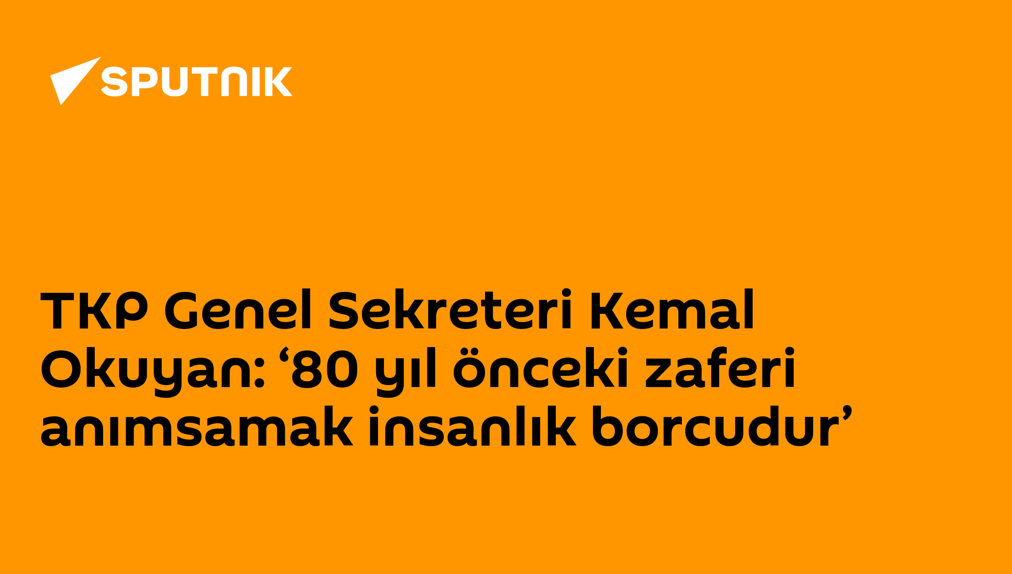 Sovyet halklarının Nazi güçlerini mağlup ettiği 9 Mayıs Zaferi’nin üzerinden 80 yıl geçti. Zaferin 80. yılını Radyo Sputnik editörü İlknur Karadeniz’e değerlendiren TKP Genel Sekreteri Kemal Okuyan, 80 yıl önceki zaferi anımsamanın bir insanlık borcu olduğunu söyledi.