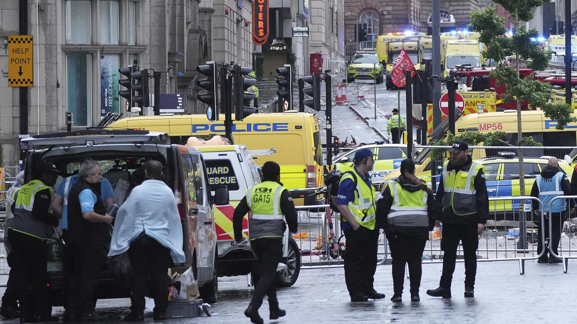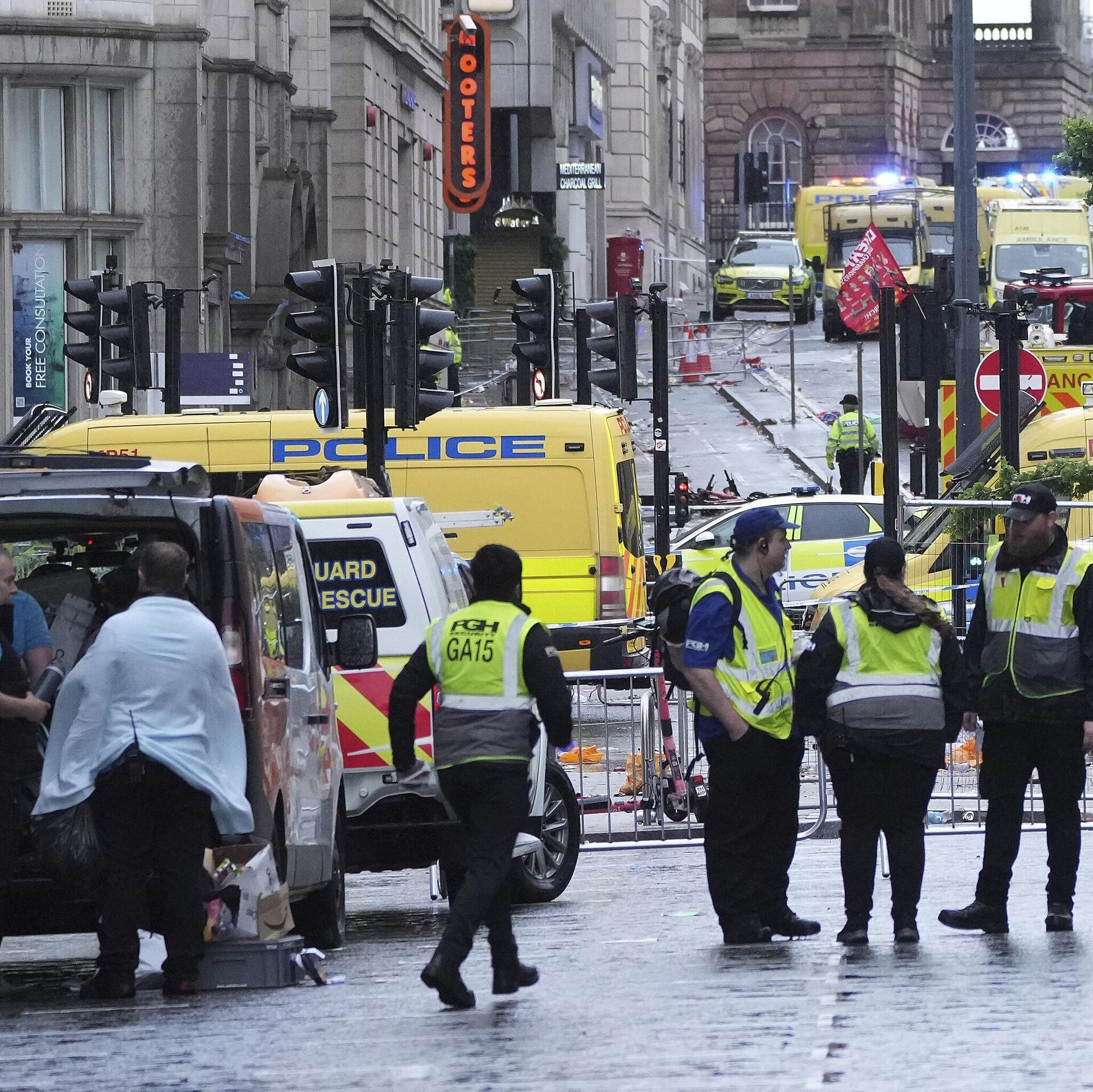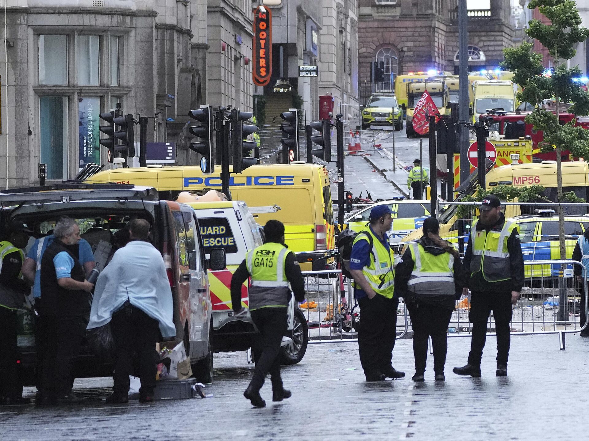 Merseyside Yangın ve Kurtarma Servisi İtfaiye Şefi Searle de olay yerine vardıklarında çok sayıda yaralı olduğunu ve 4 kişinin aracın altında sıkıştığını aktardı.