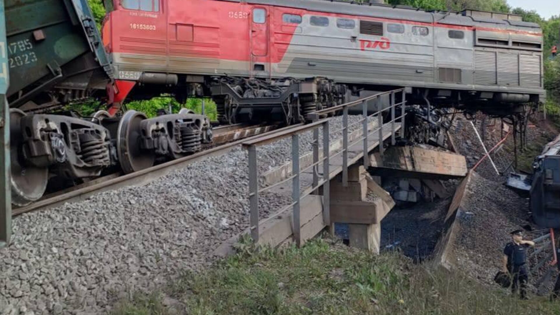 Kursk Bölgesi’ndeki Trosna-Kalinovka karayolunun 48. kilometresinde dün gece bir köprü, altından geçen yük treninin üzerine çöktü, kaza sonucu bir makinist yaralandı.