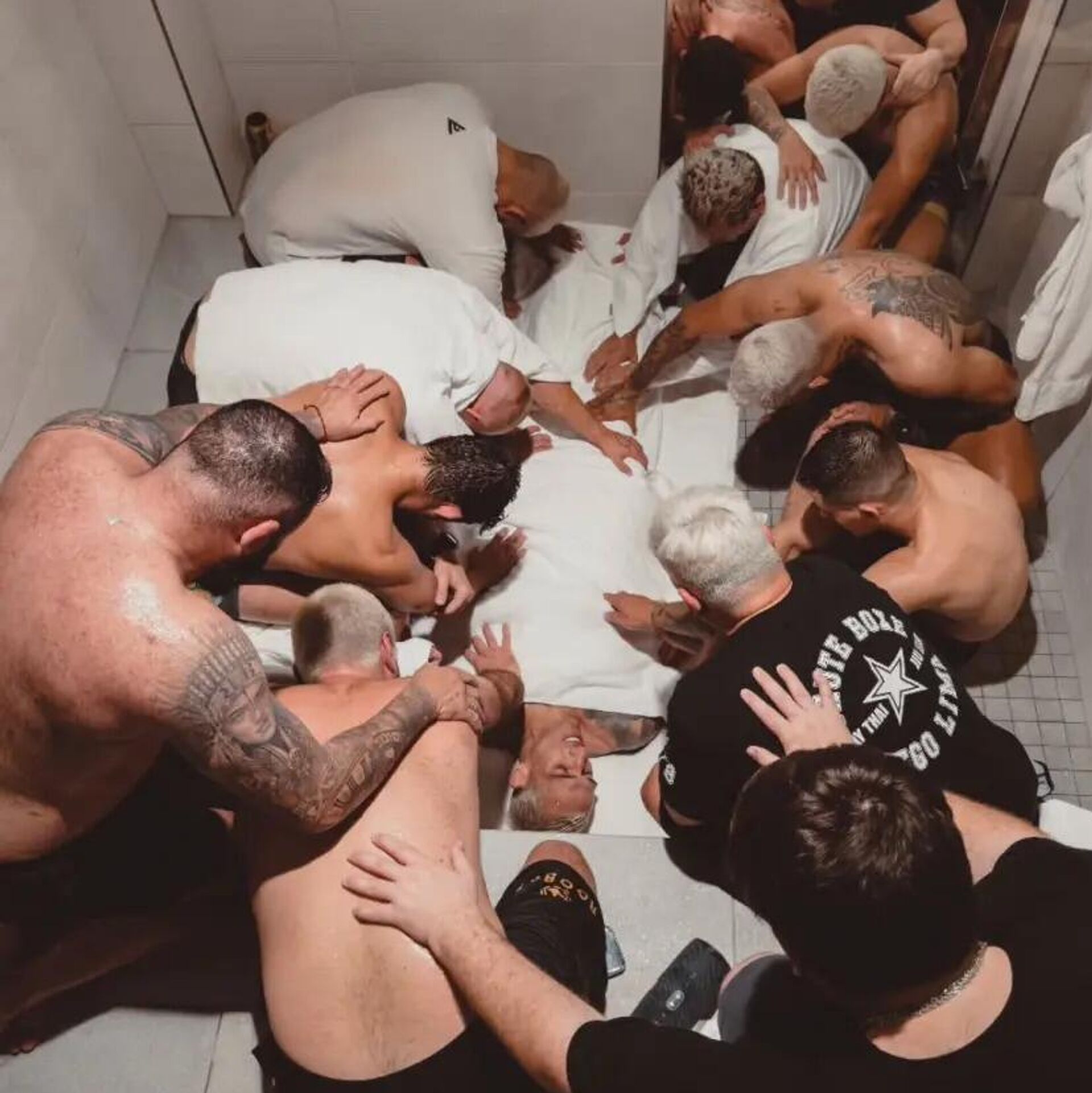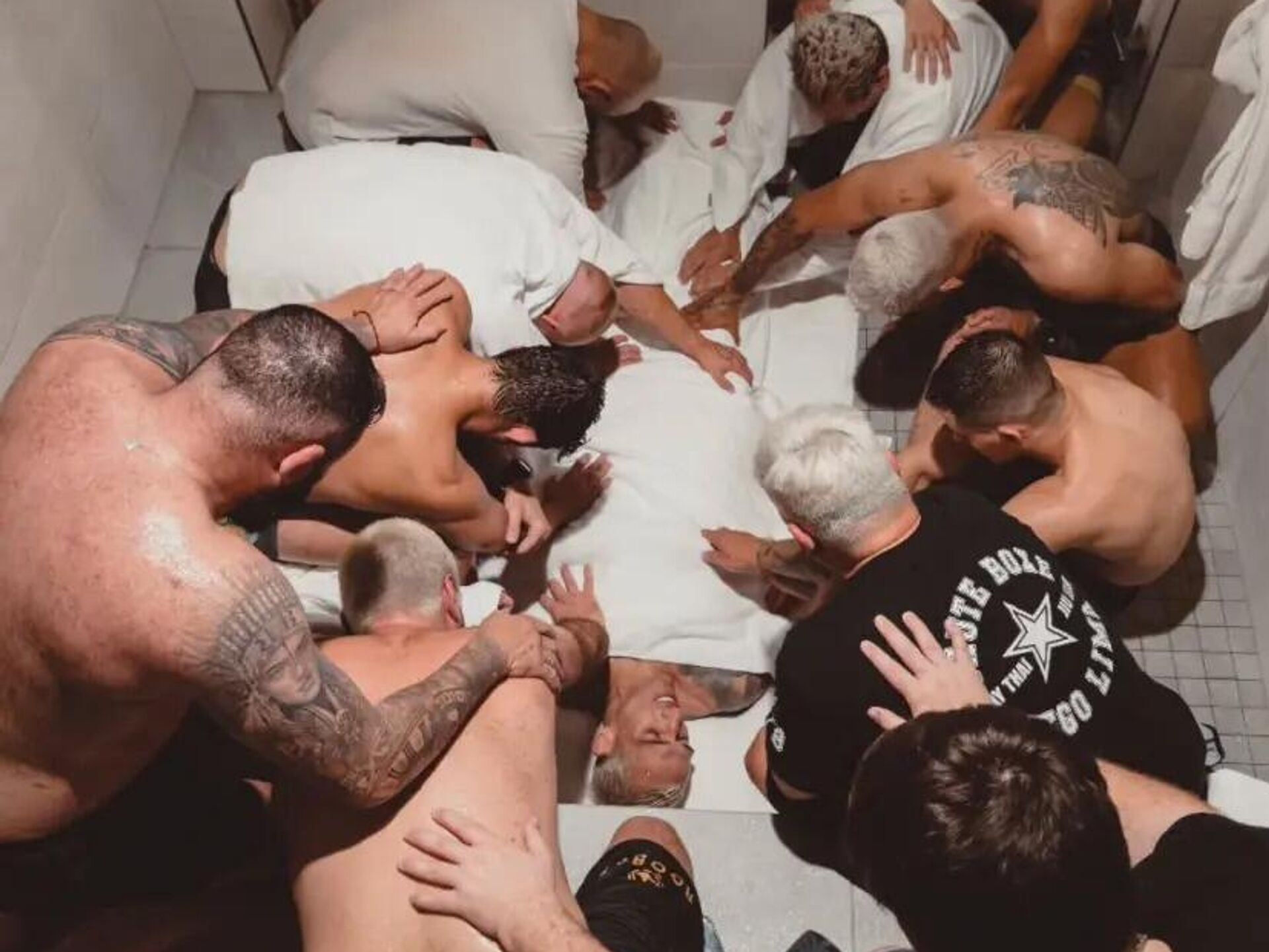 Antrenörü Diego Lima’nın sosyal medyada paylaştığı fotoğrafta, ekibin Oliveira’nın etrafında dua ettiği ve dövüşçünün battaniyelere sarılarak terlemeye çalıştığı görüldü. Lima, paylaşımında, “Bu anları yaşadığımız ve Tanrı’nın bize güç verdiğini hissettiğimiz için minnettarız” ifadelerine yer verdi.