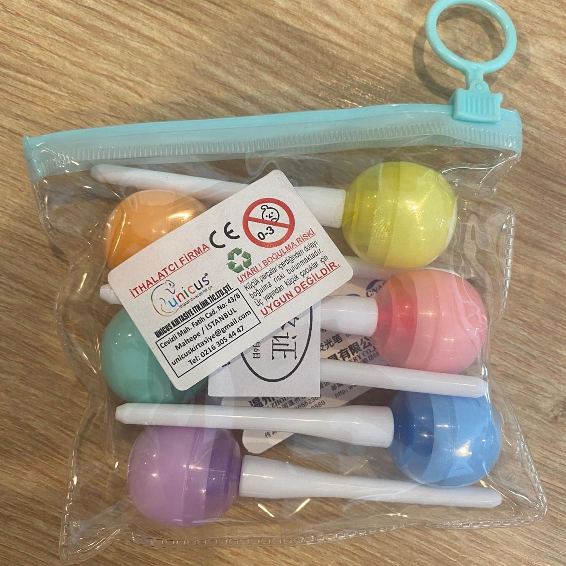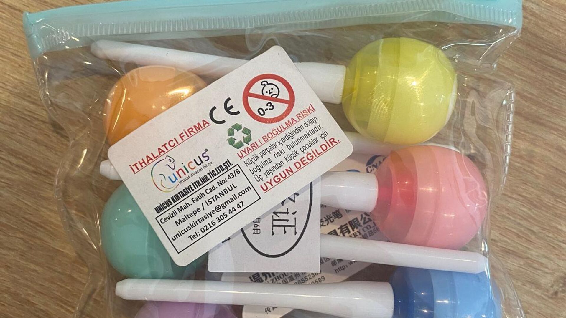 Bakanlık tarafından güvensiz bulunan diğer bir ürün ise "Unicus" marka "6'lı lolipop fosforlu kalem" oldu. Üründen alınan numenin orijinal halinden küçük parçalar içerdiği belirtilirken söz konusu ürünün piyasadan toplatılmasına karar verildi.
