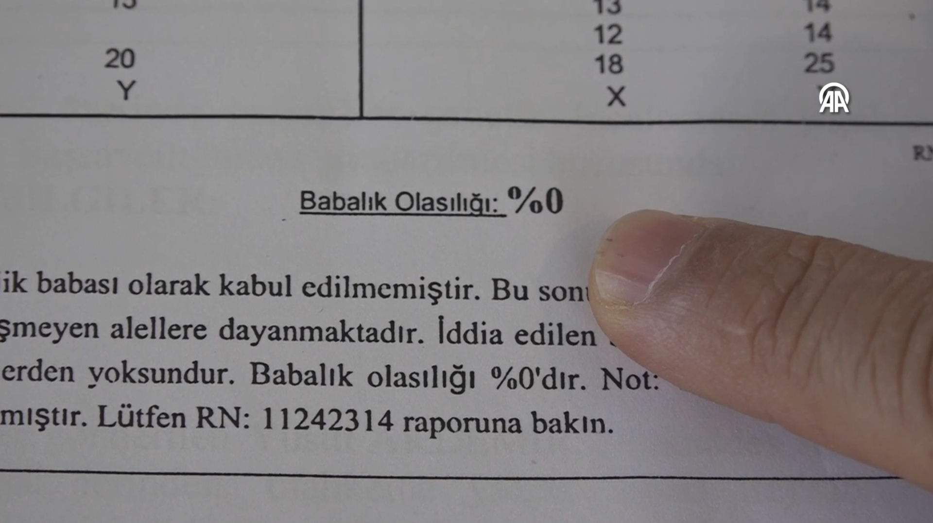 DNA test raporunda, "Annelik ve babalık olasılığı yüzde 0" olarak belirlenerek, "İddia edilen anne ve baba, test edilen çocuğun biyolojik anne ve babası olarak kabul edilmemektedir." ifadesine yer verildi.
