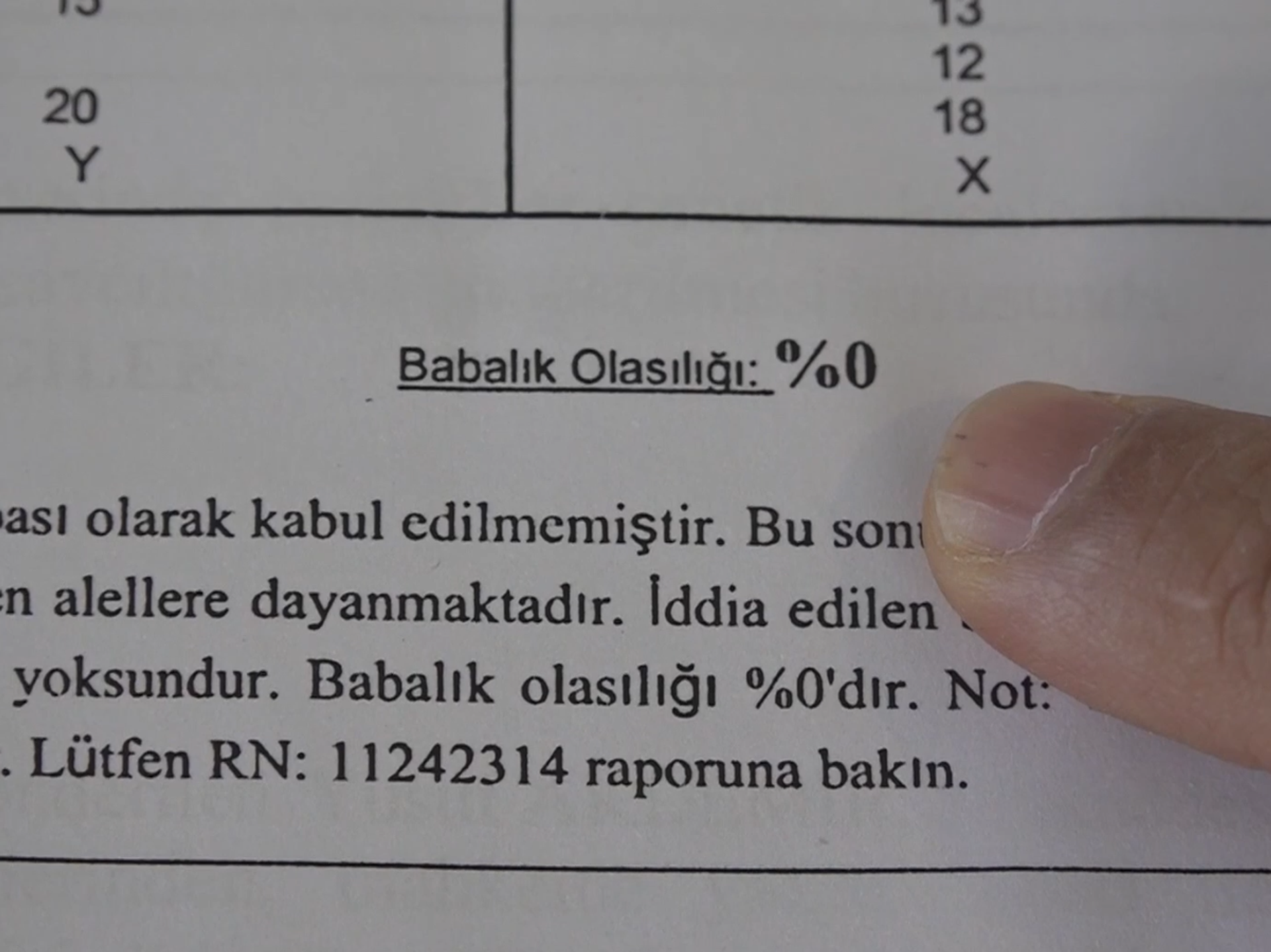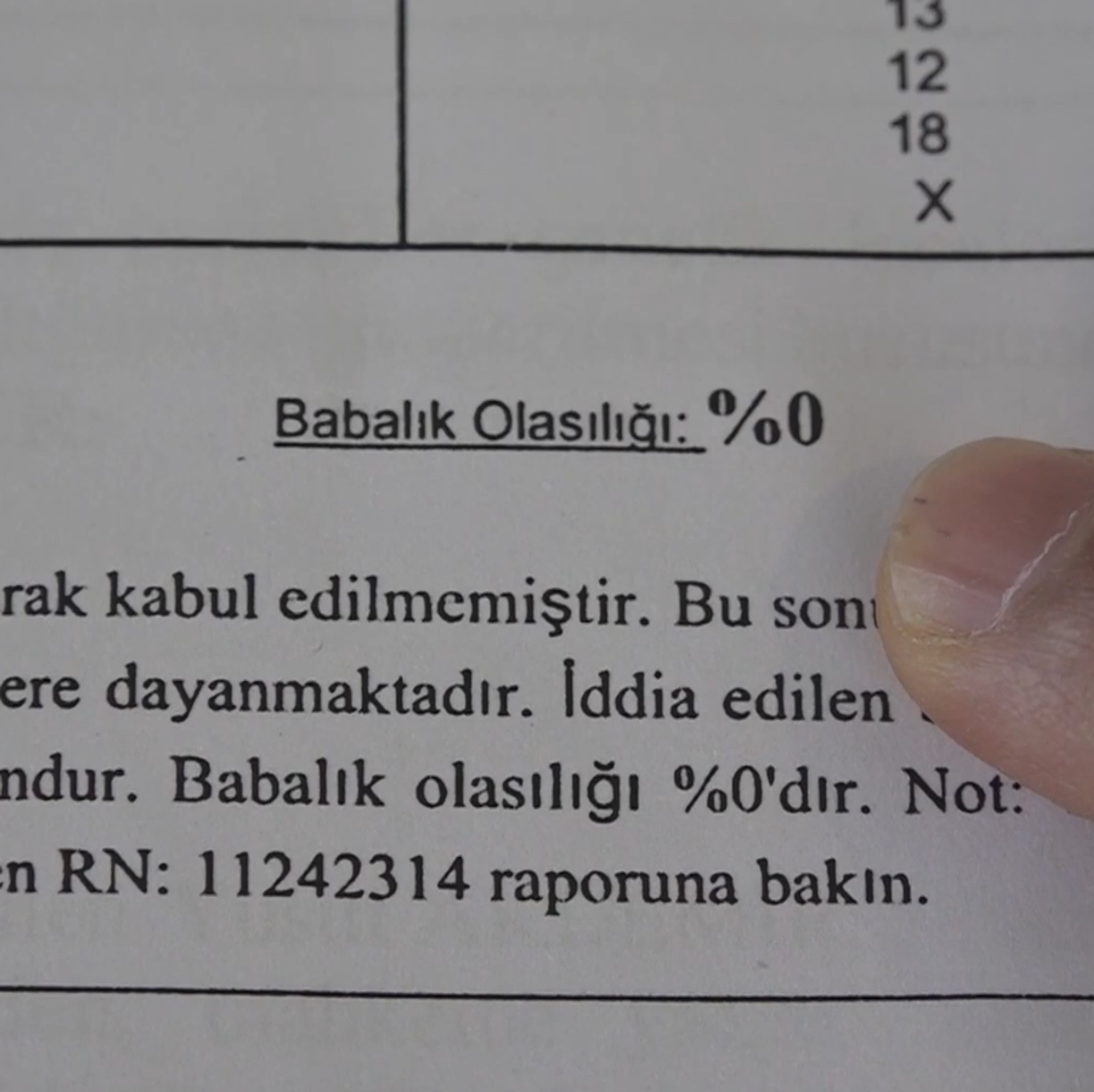 Test sonucu: Anen baba olasılığı yüzde 0