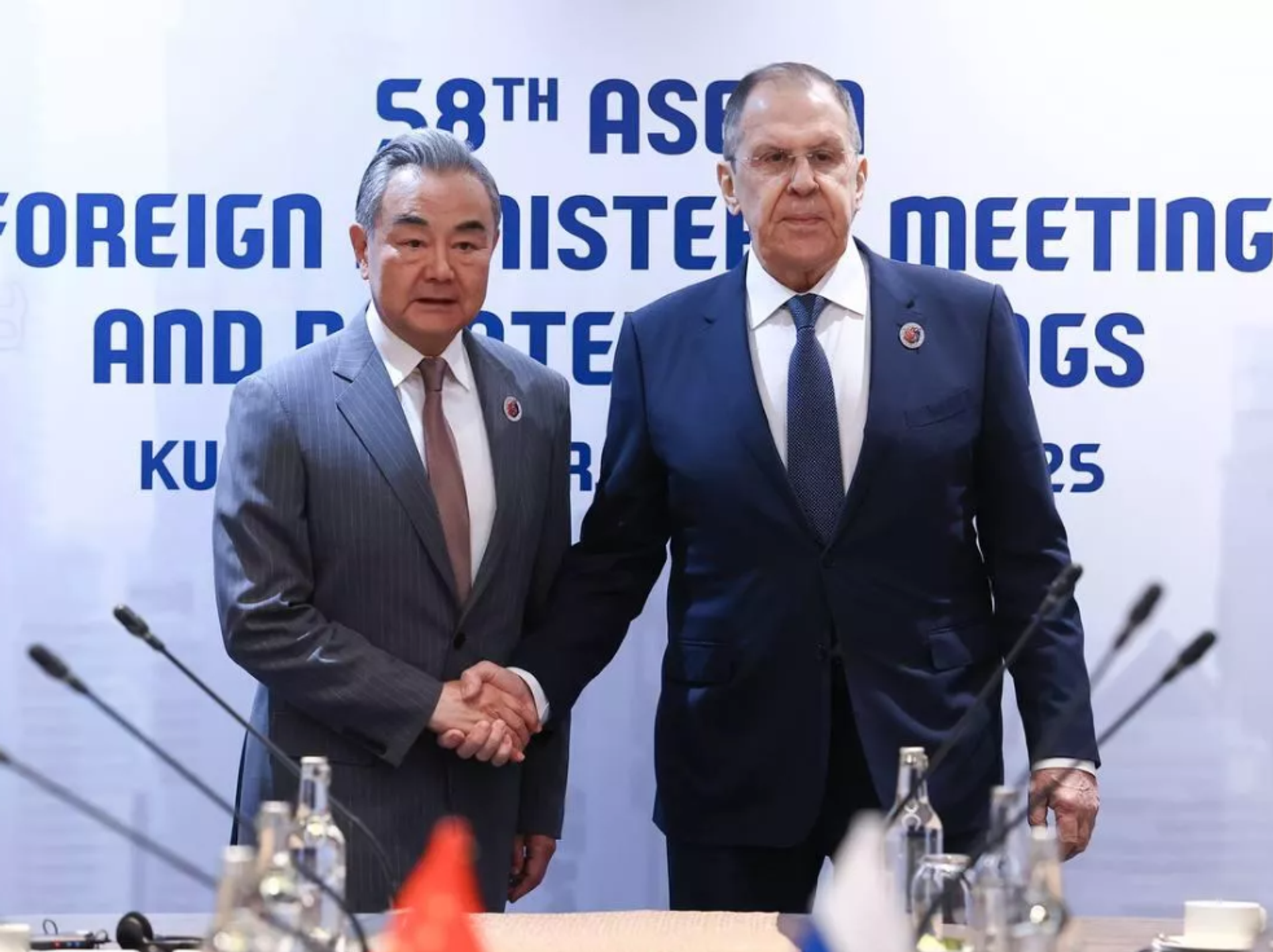 Rusya Dışişleri Bakanı Sergey Lavrov, Kuala-Lumpur’da düzenlenen Güneydoğu Asya Ülkeleri Birliği (ASEAN) toplantısı kapsamında Çin Dışişleri Bakanı Vang Yi ile bir araya geldi.