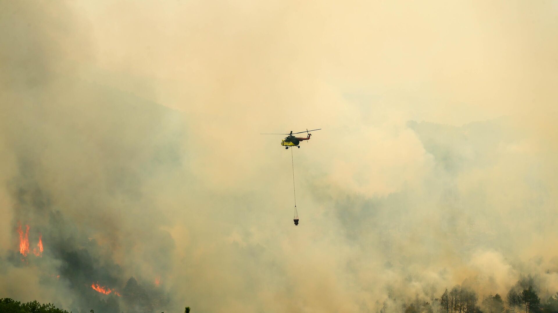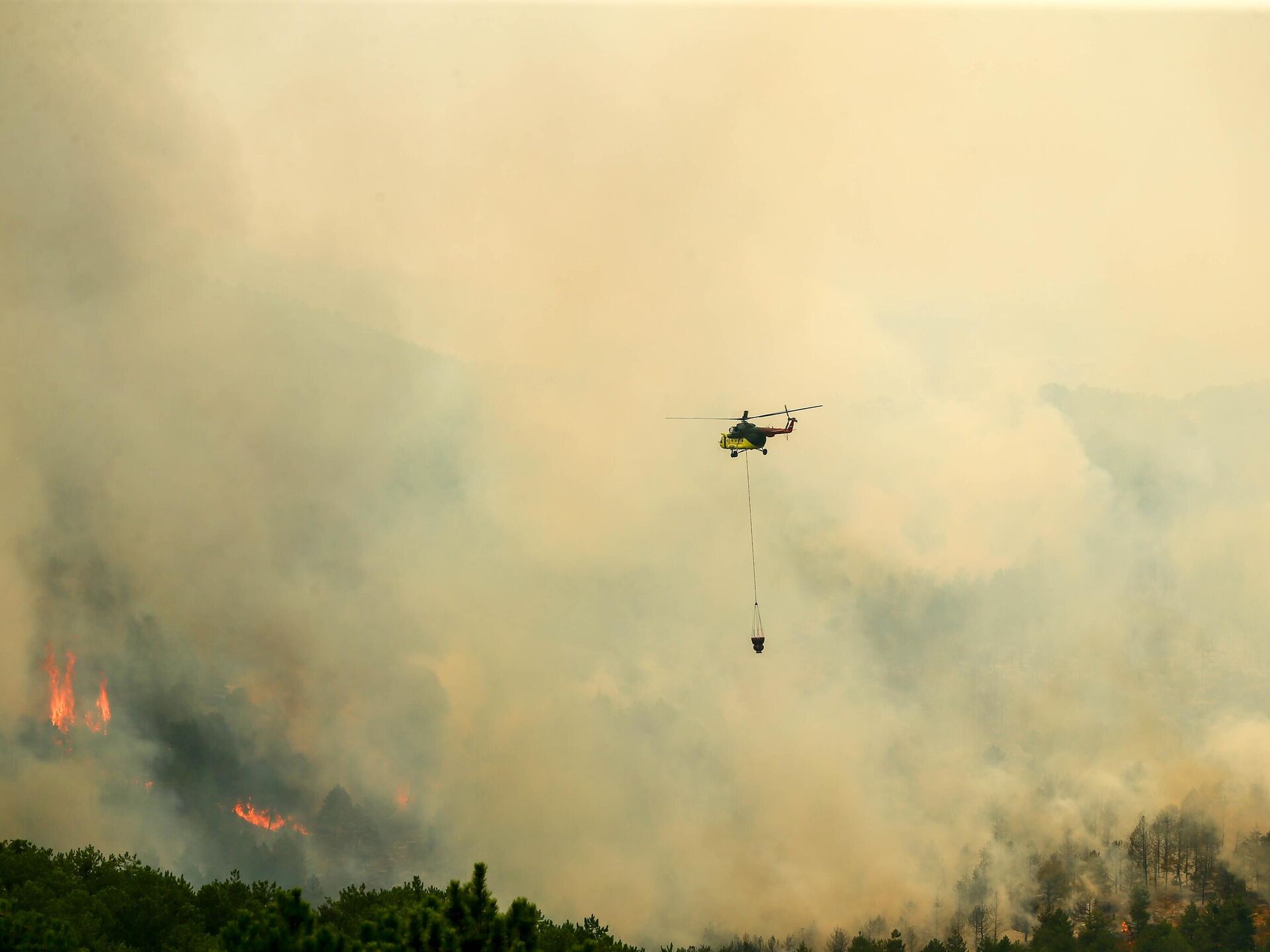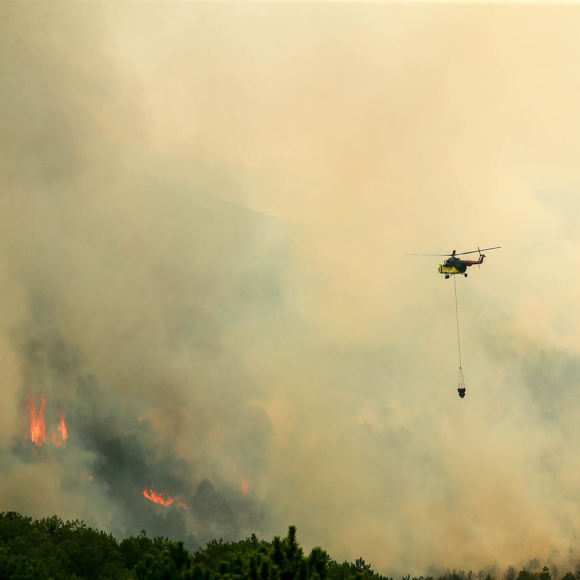 Uşak'ta çıkan orman yangınına havadan ve karadan müdahale ediliyor. 20.07.2025, Sputnik Türkiye