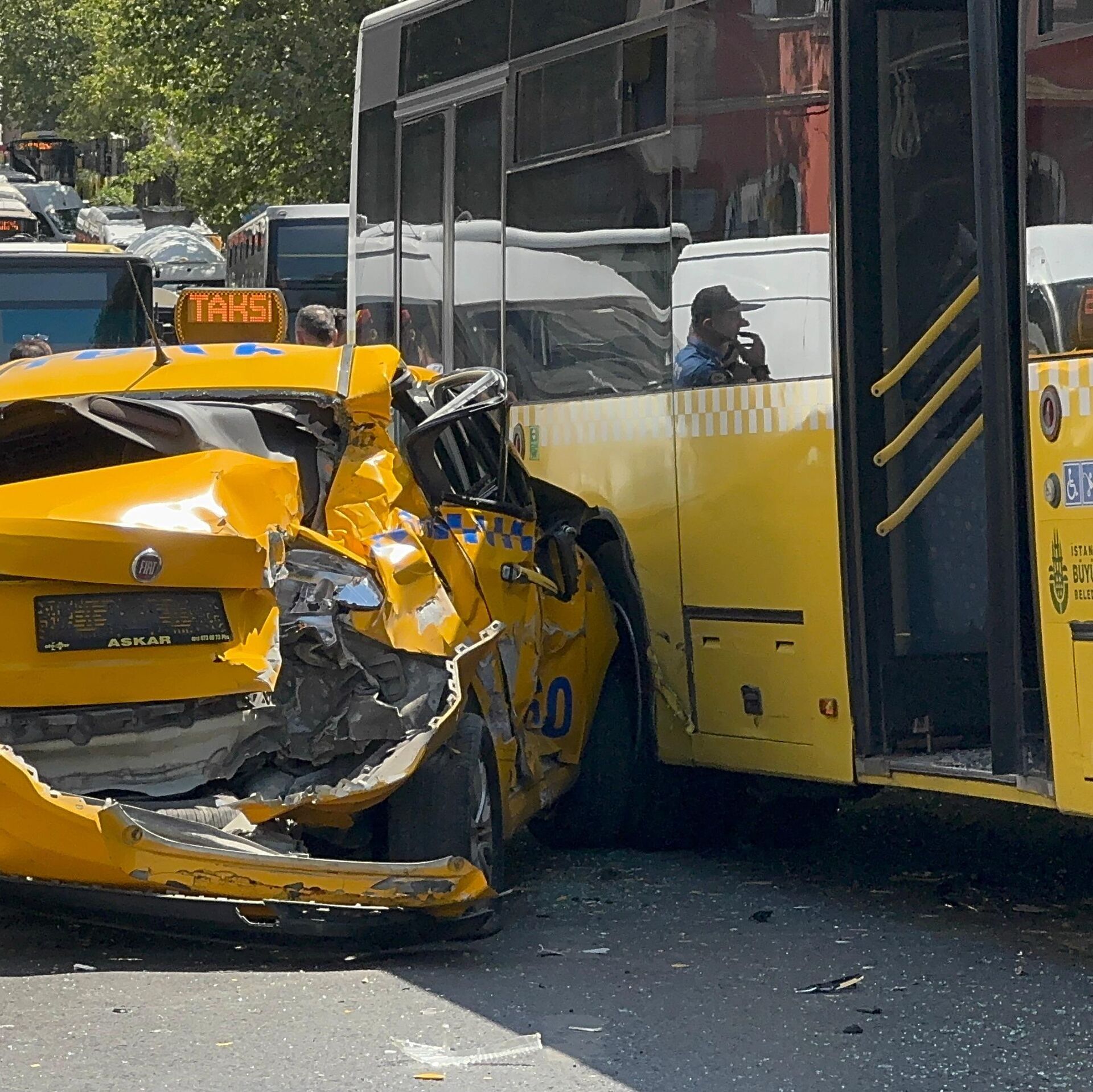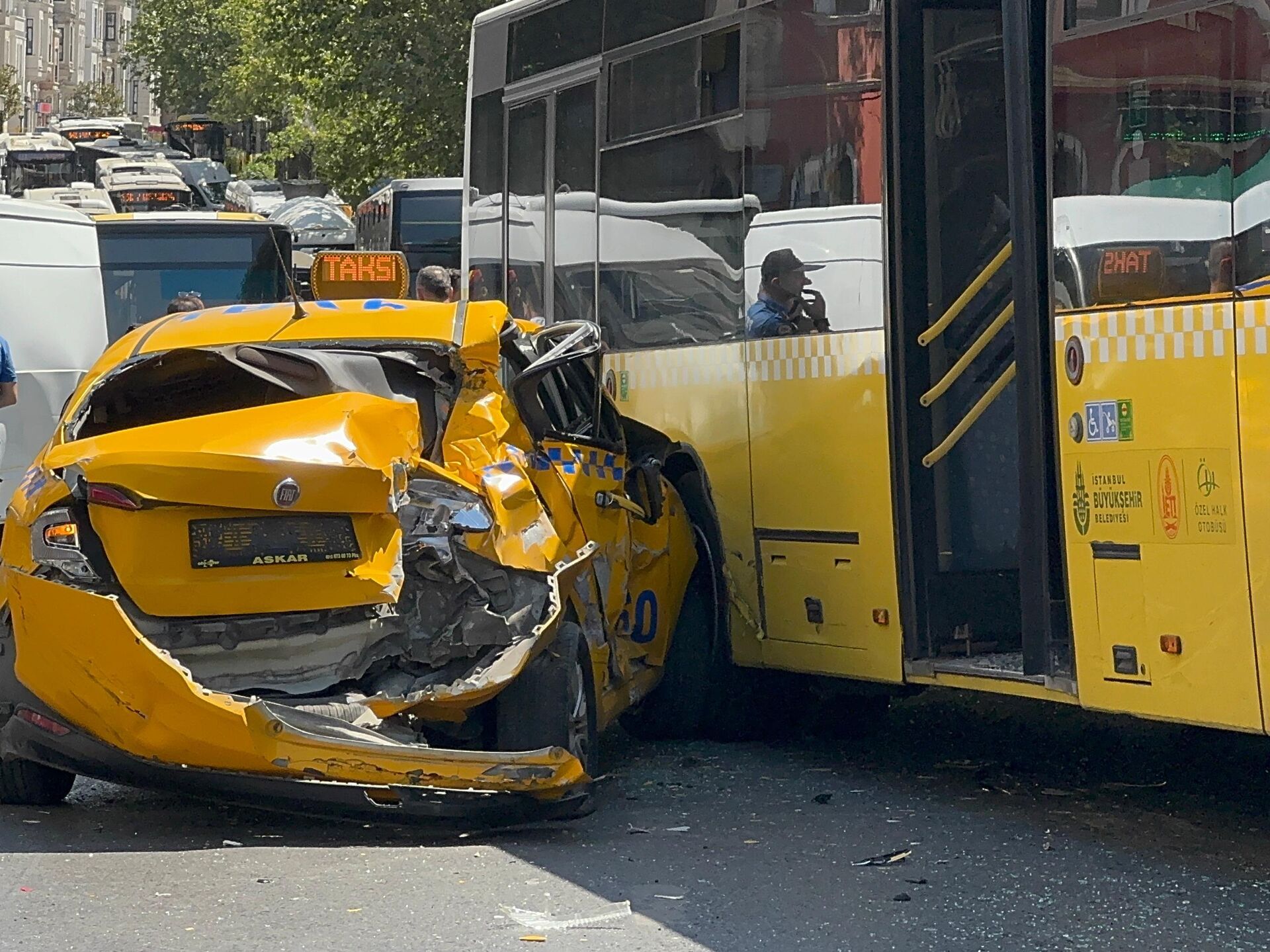 © Mustafa Mert KaracaOtobüs ve taksi kaza