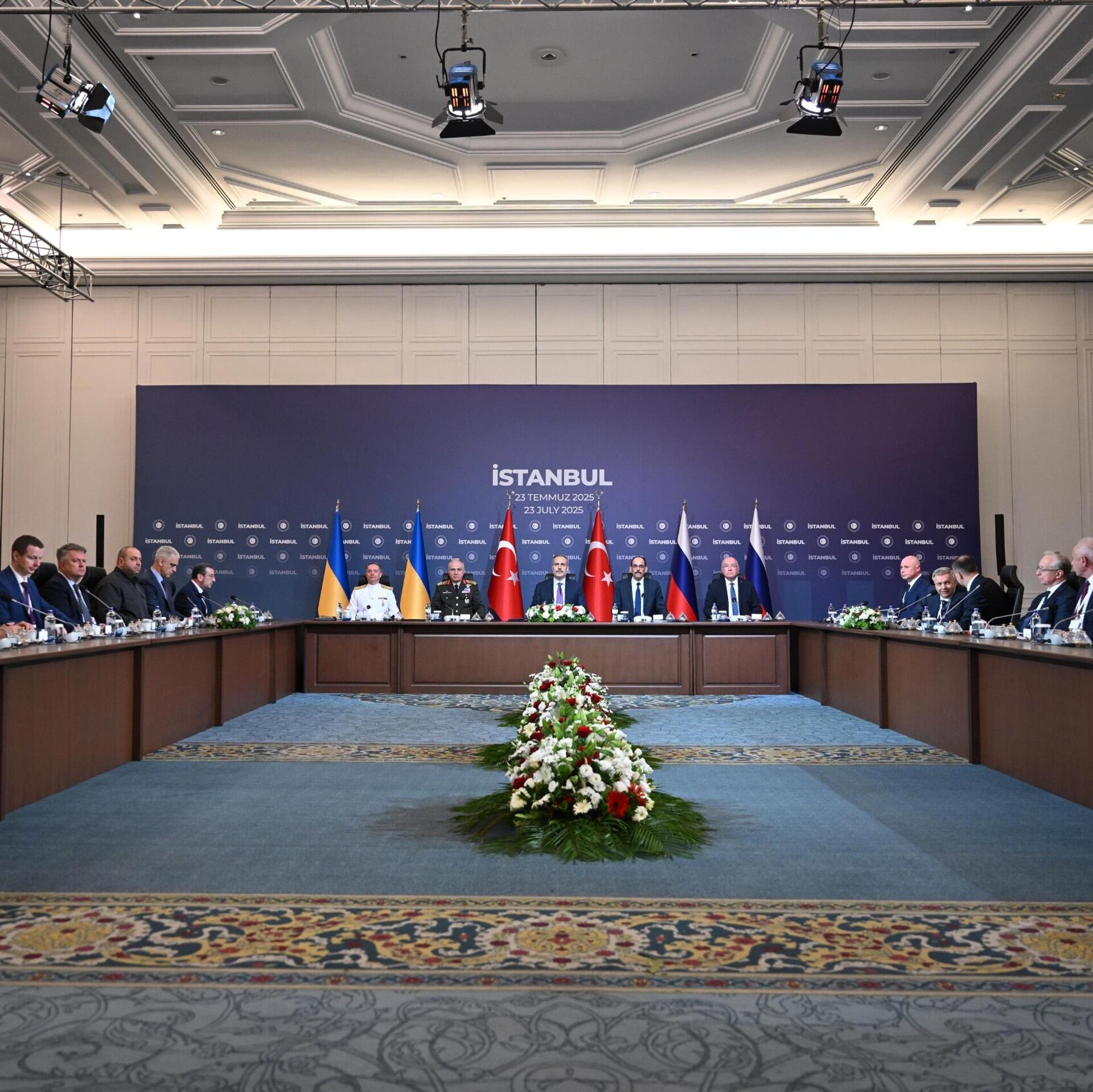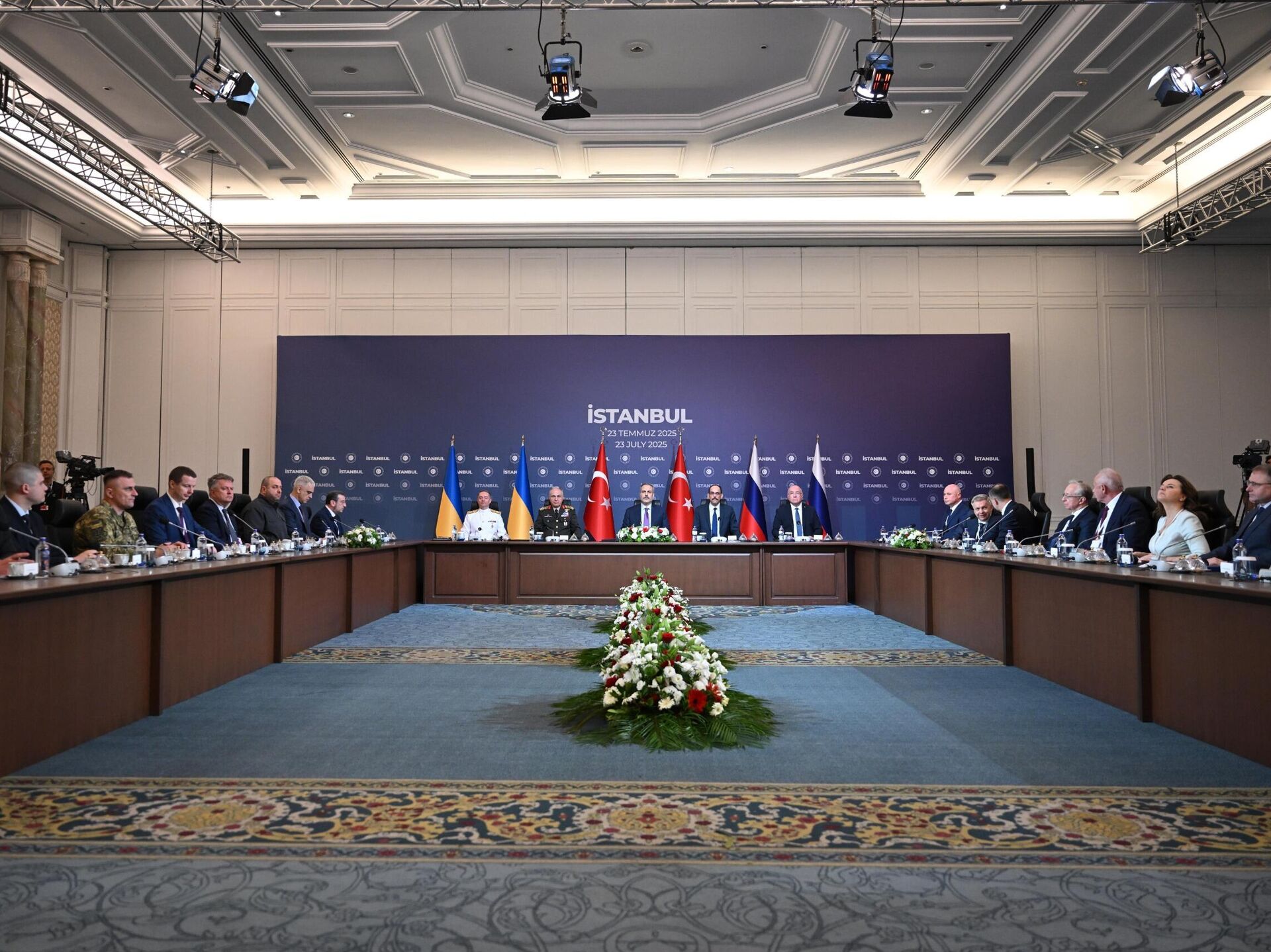 Rusya ve Ukrayna heyetlerinin Çırağan Sarayı'nda bir araya geldikleri, müzakerelerin 3. turunun sona erdiği bildirildi. Toplantının ardınan Rus heyetine... 23.07.2025, Sputnik Türkiye