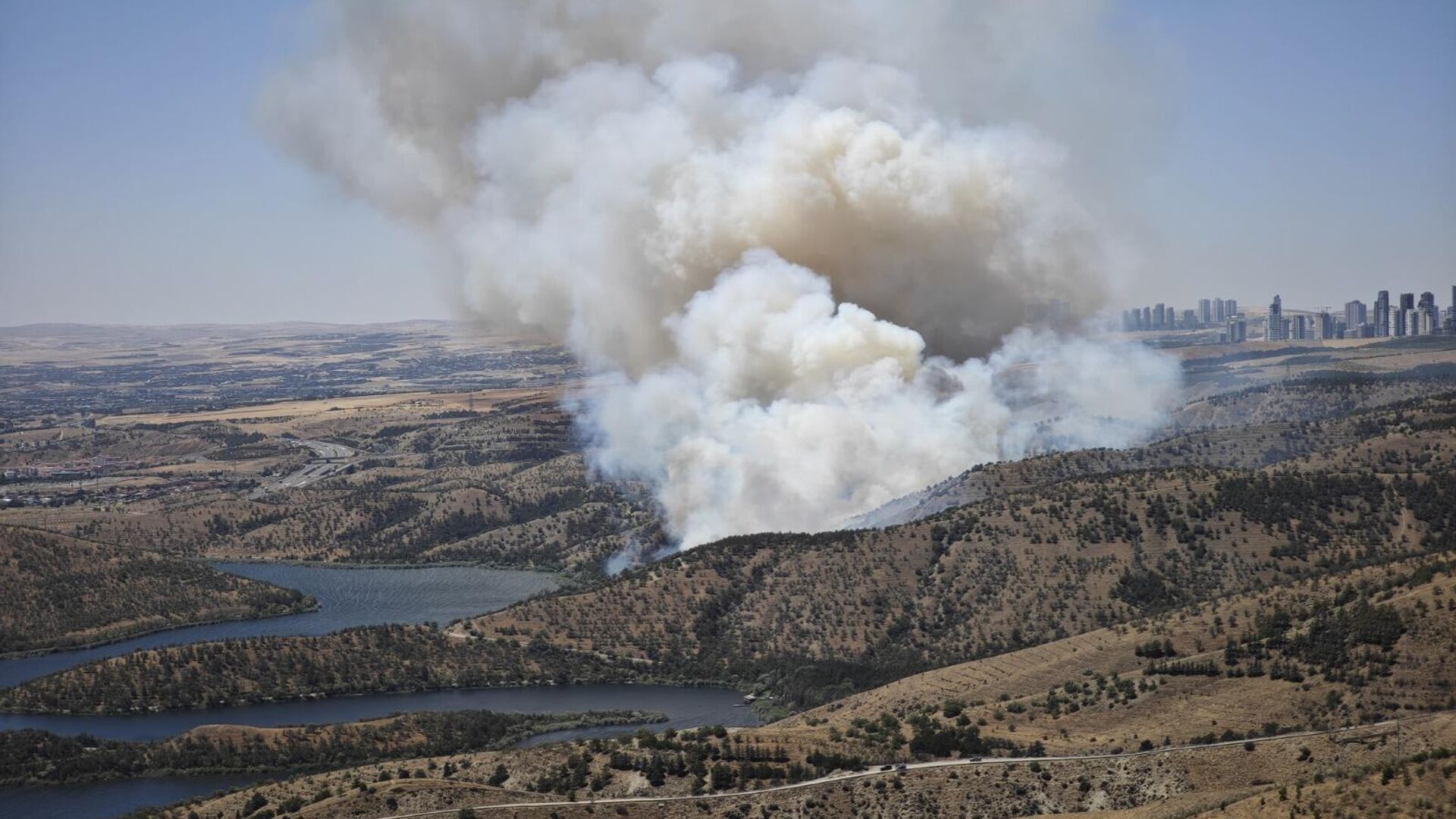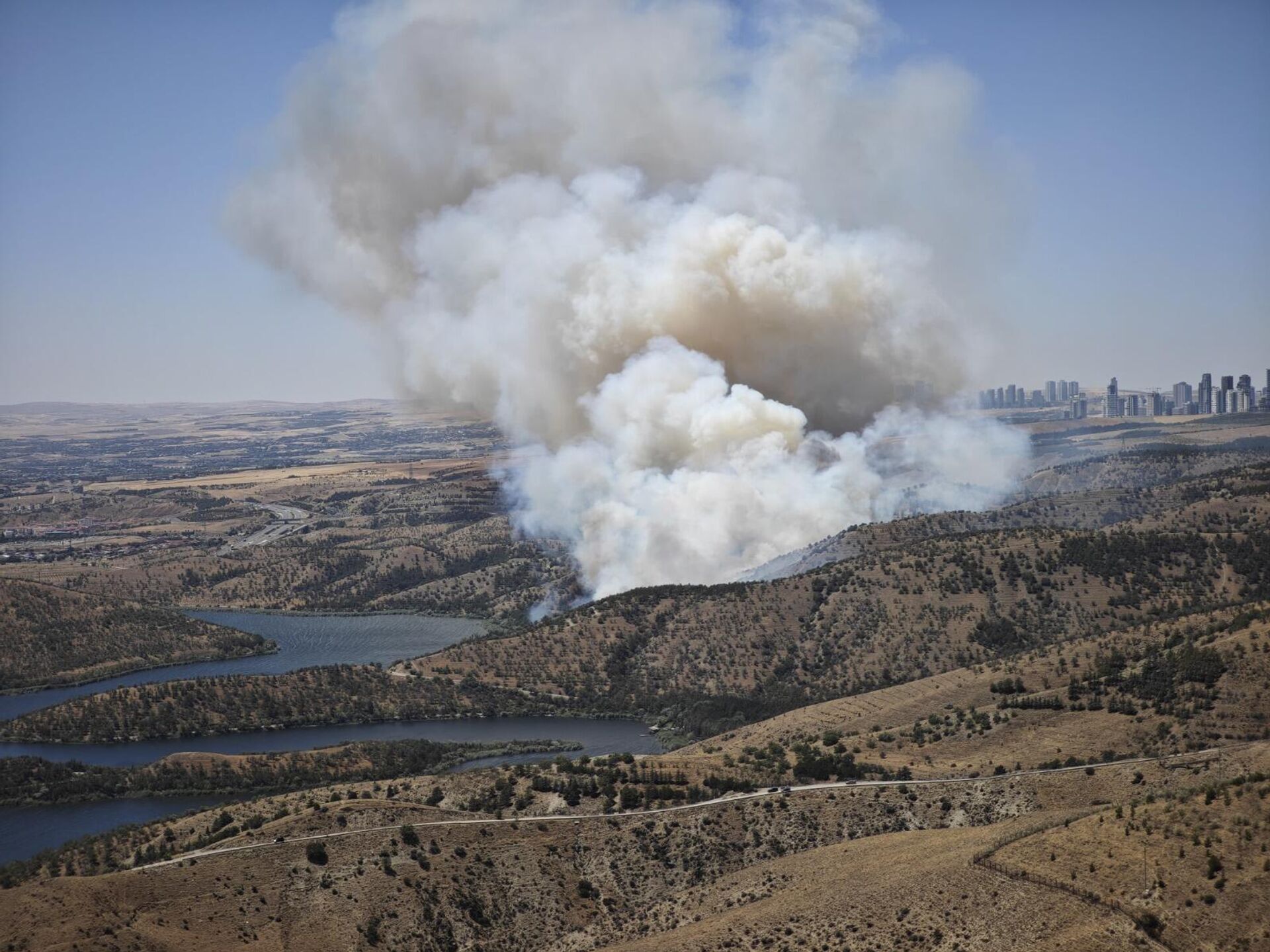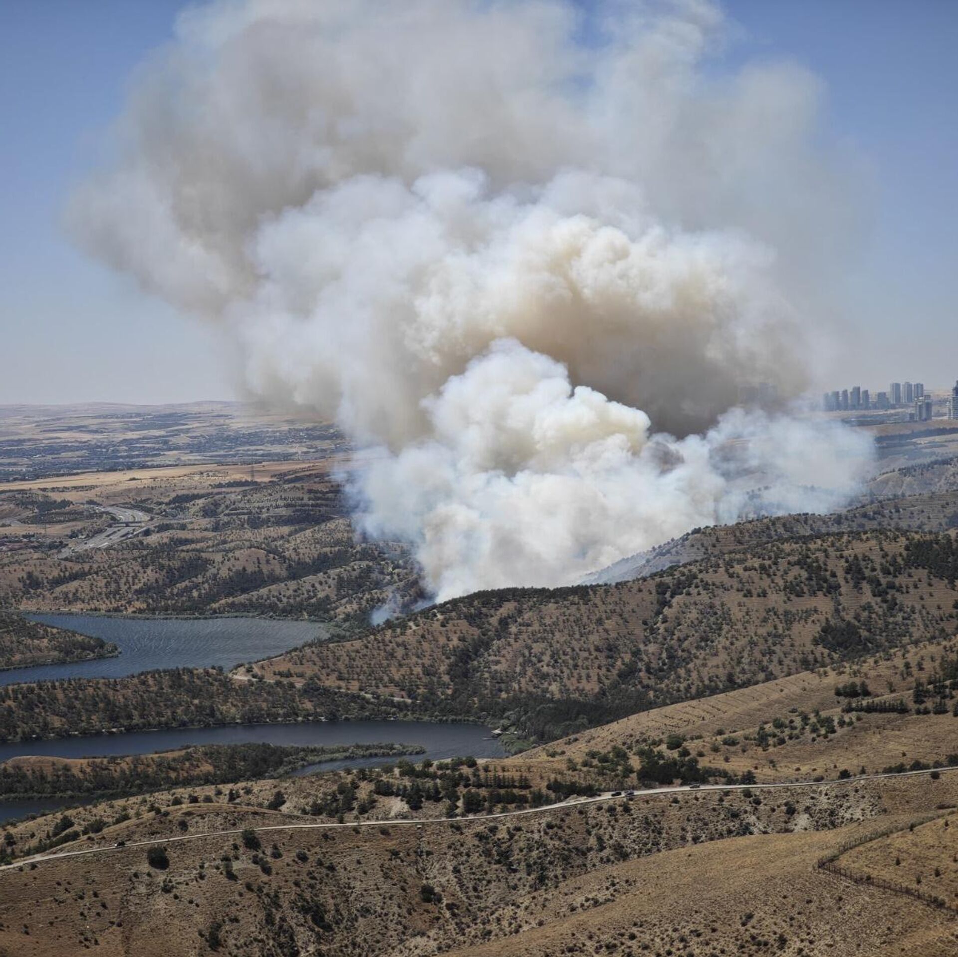 Ankara Eymir Gölü çevresindeki ormanlık alanda sabah saatlerinde yangın çıktı. Olay yerine çok sayıda itfaiye ve polis ekibi sevk edilirken, havadan helikopter... 26.07.2025, Sputnik Türkiye
