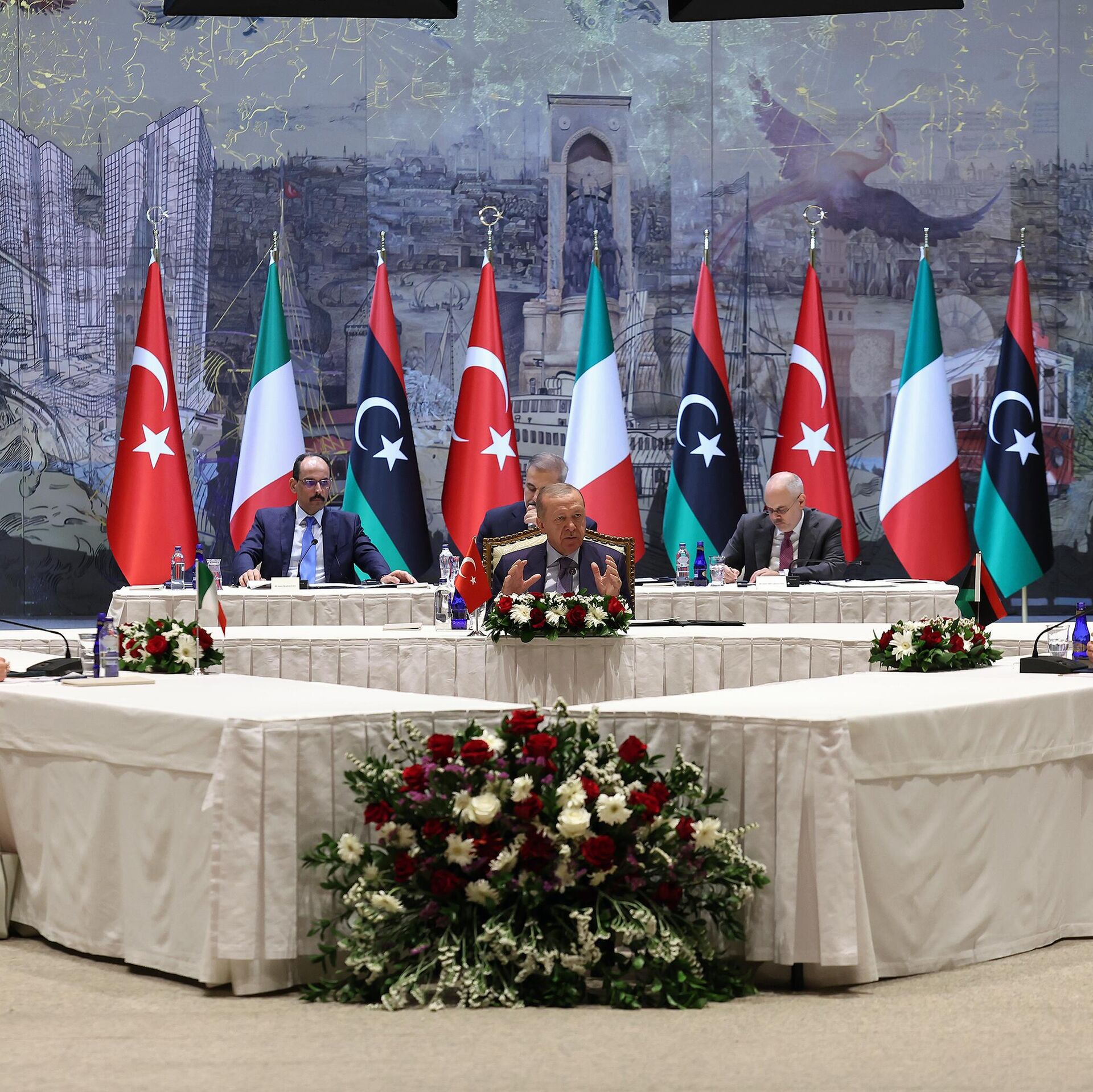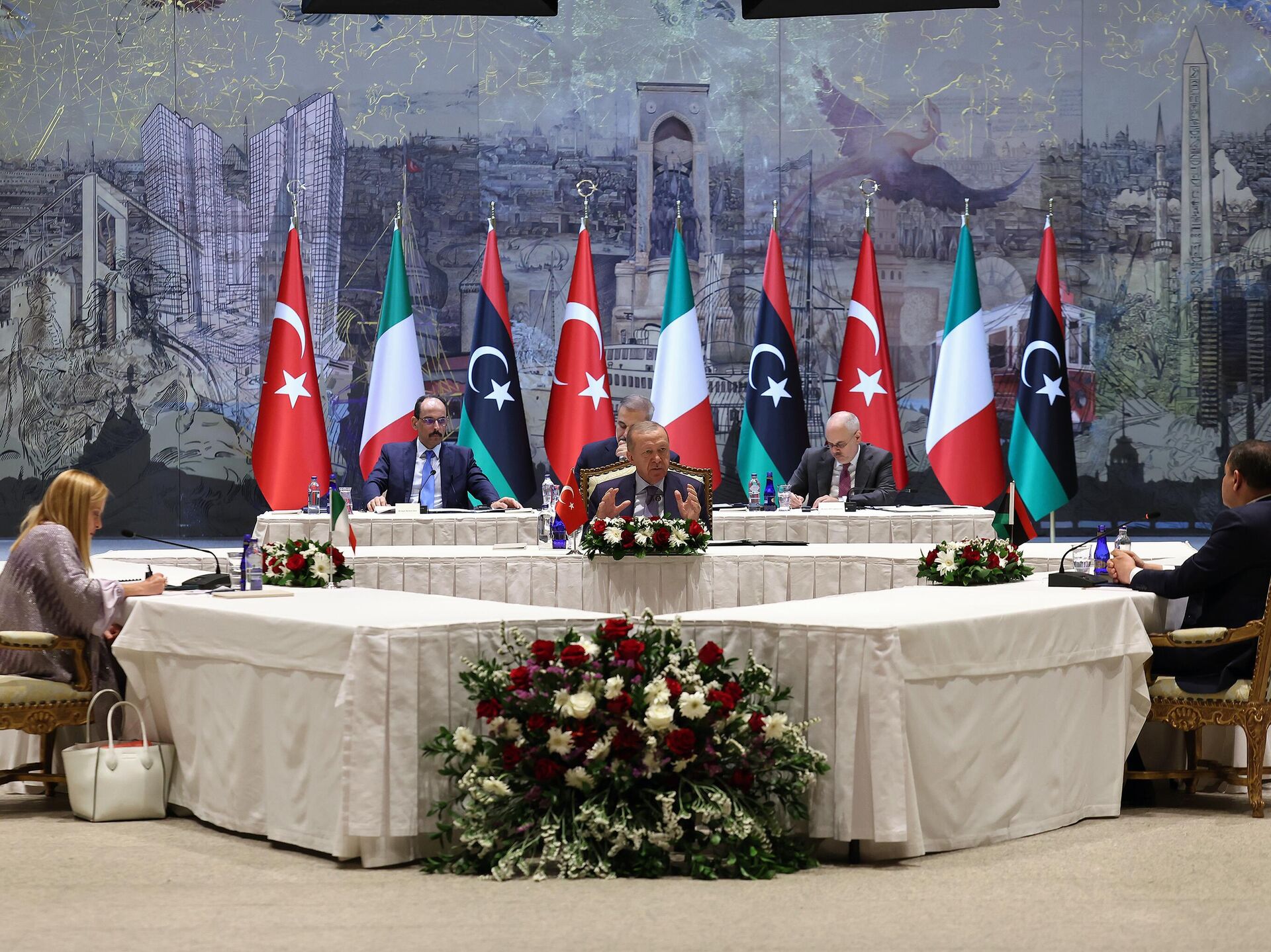 Cumhurbaşkanı Recep Tayyip Erdoğan, 1 Ağustos 2025 tarihinde İstanbul Dolmabahçe Çalışma Ofisi’nde, İtalya Başbakanı Giorgia Meloni ve Libya Ulusal Birlik Hükümeti Başbakanı Abdulhamid Dibeybe ile ayrı ayrı görüşmeler gerçekleştirdi.