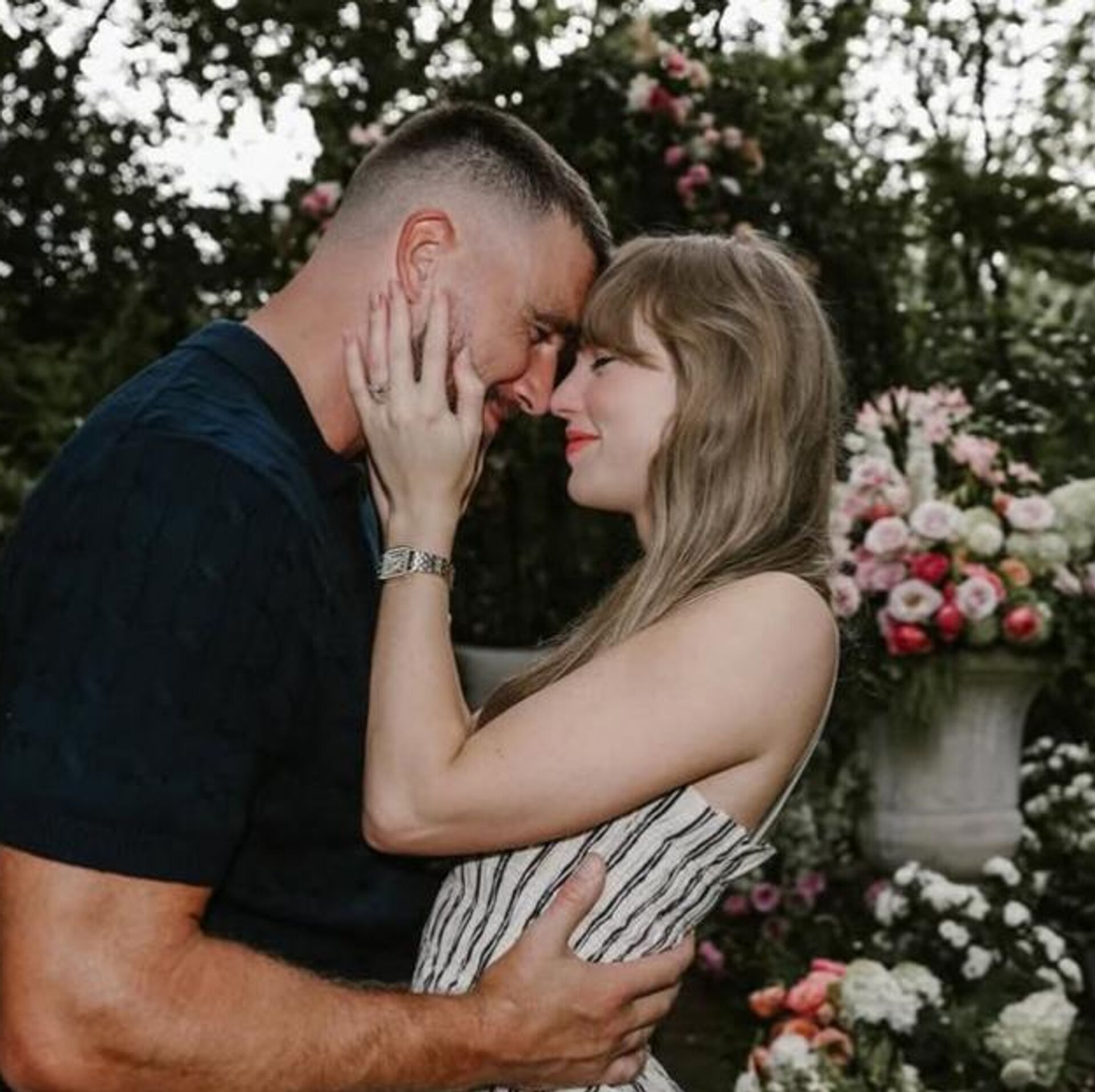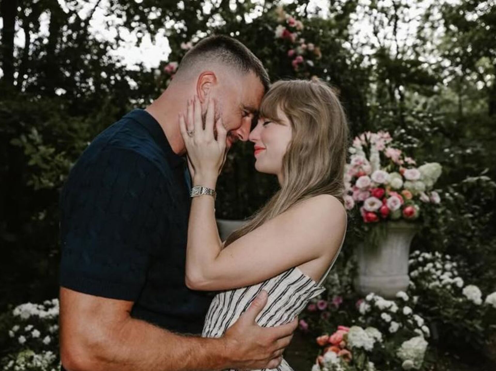 Swift, sosyal medya hesabı üzerinden yaptığı paylaşımda, Kelce ile birlikte çektirdiği fotoğraflara yer verdi. Çiçekler içinde çekilen karelerde, çiftin el ele tutuştuğu ve sarıldığı anlar ile Swift’in parmağındaki elmas nişan yüzüğü dikkat çekti.