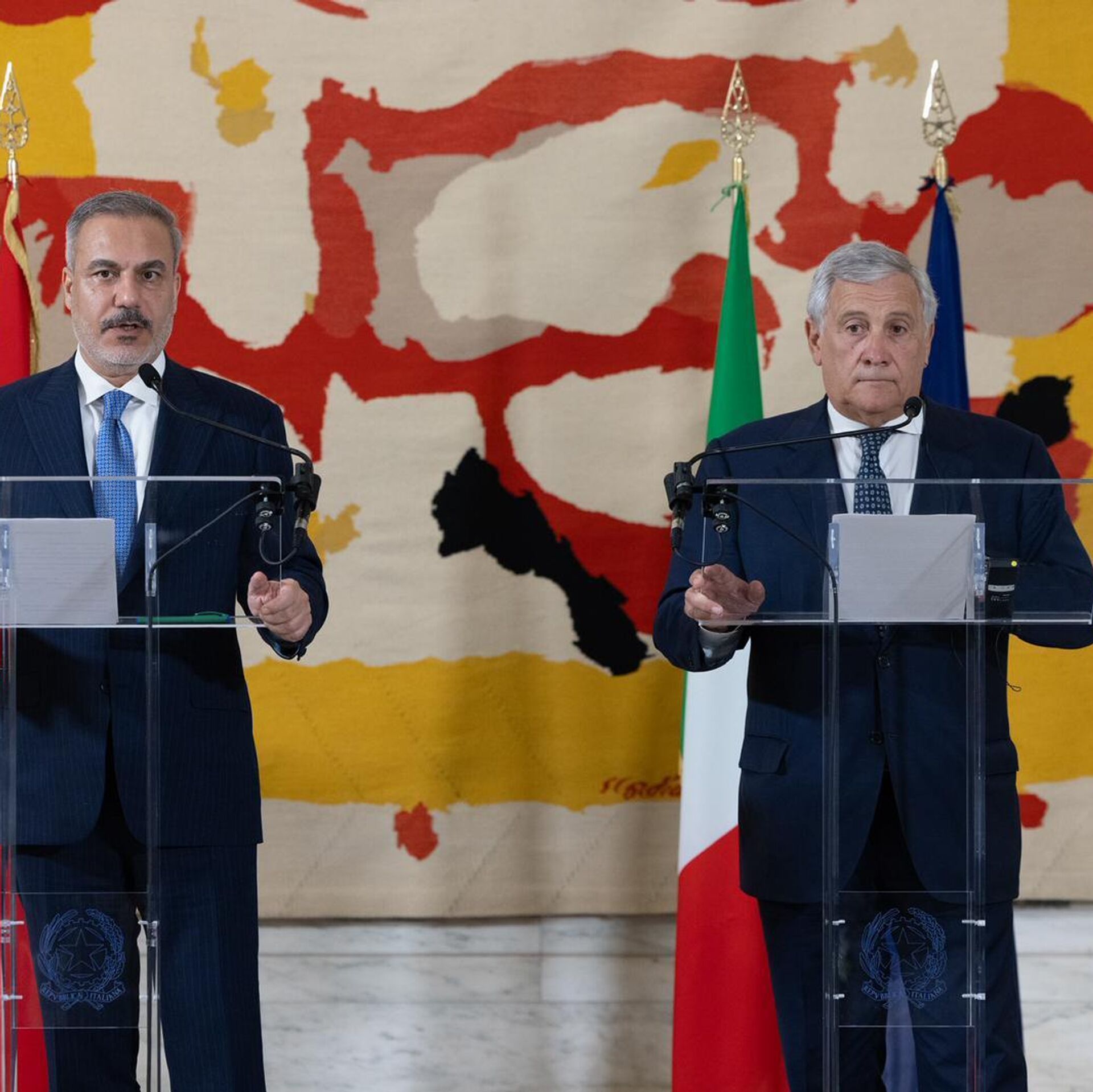 İtalya - Türkiye ilişkileri hakkında konuşan Bakan Fidan, ''Baykar’ın Piaggio Aerospace'i bünyesine katması, Leonardo'yla ortaklık kurması bölgemiz için örnek teşkil etmektedir. Libya'nın birliği, toprak bütünlüğü, egemenliği, istikrarı ve güvenliğinin kalıcı şekilde sürdürülmesi önem arz ediyor. Türkiye ve İtalya olarak bu yöndeki çalışmalarımıza devam edeceğiz'' dedi.