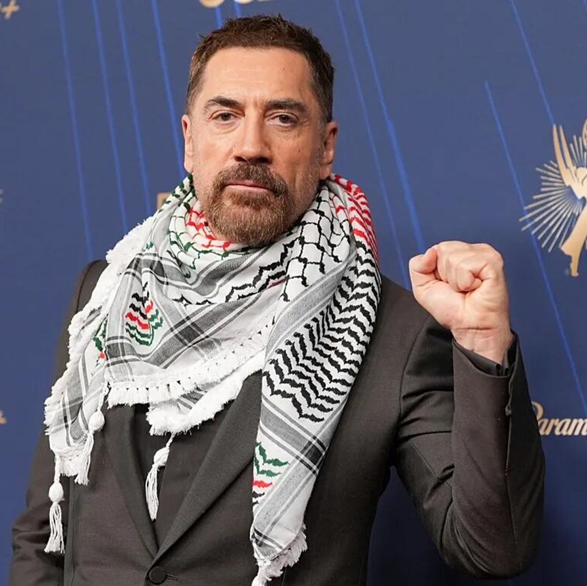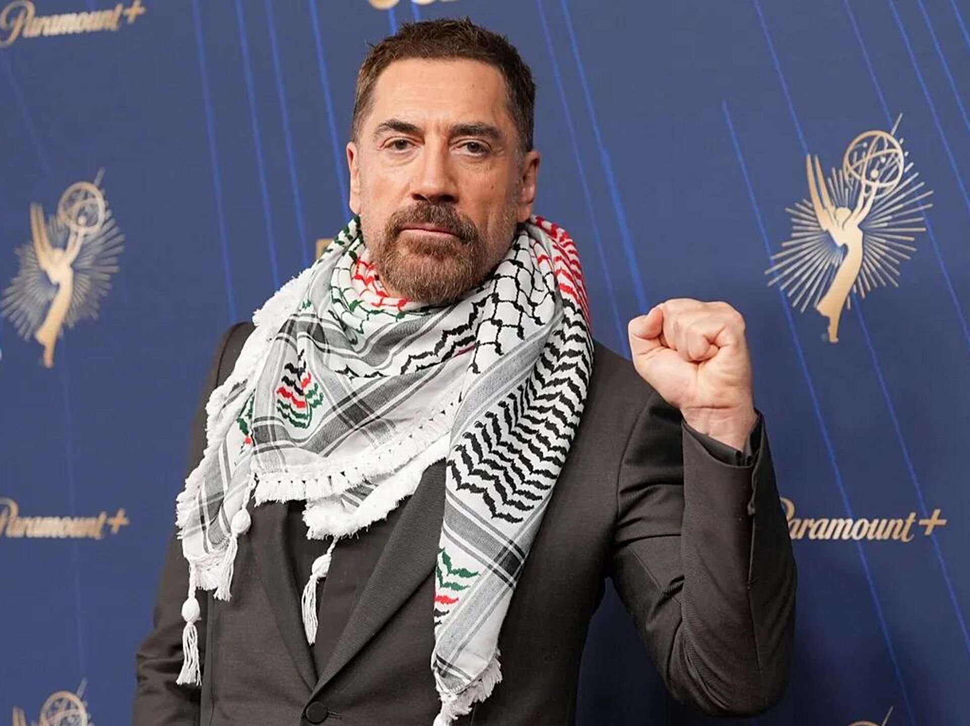 Javier Bardem, Emmy kırmızı halısında kefiye atkı takarak basının sorularını yanıtladı.