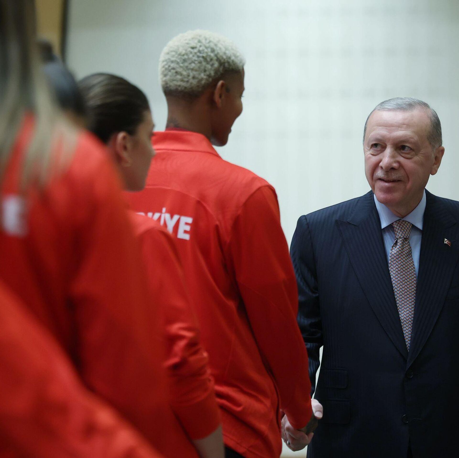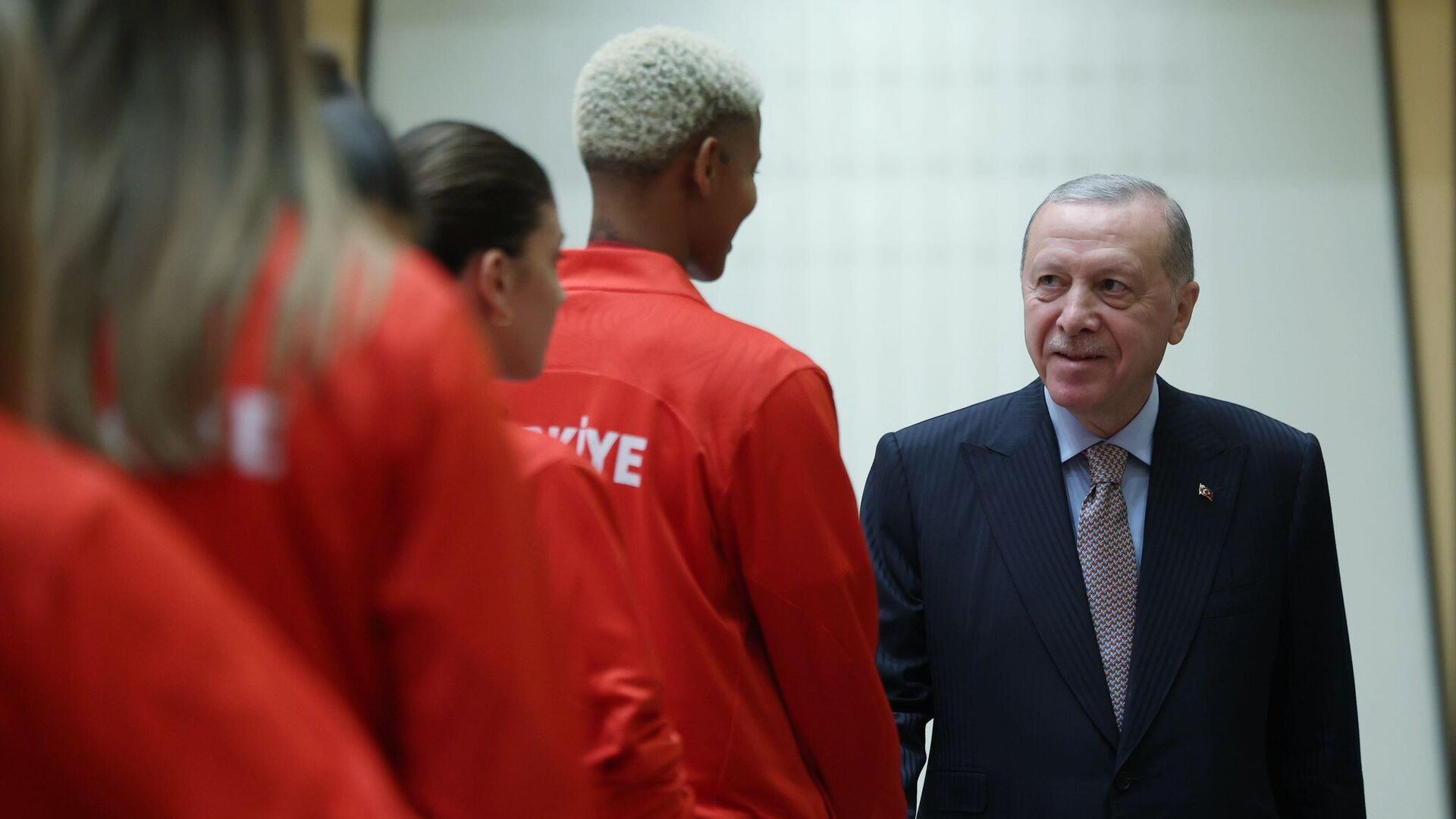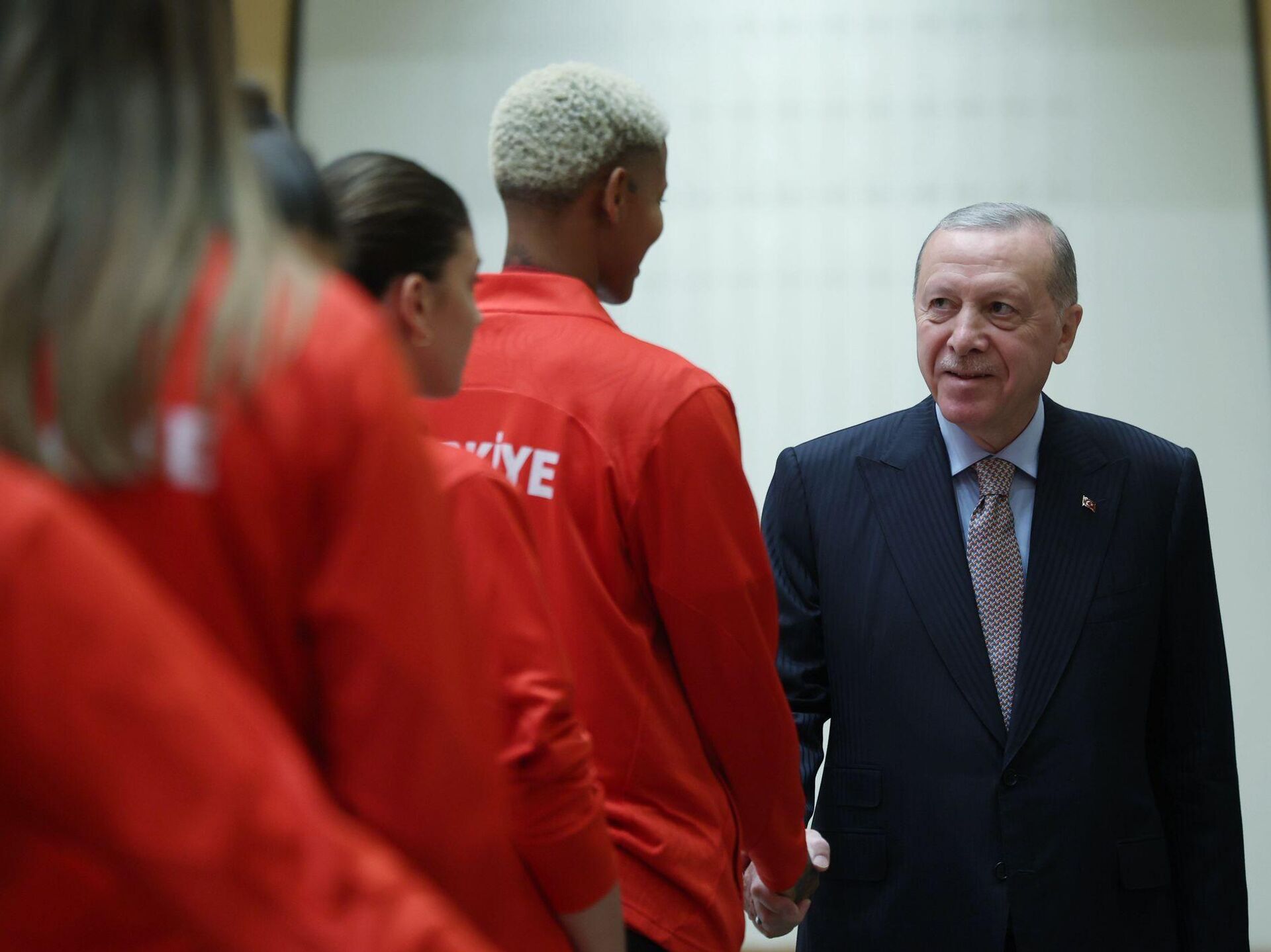 Cumhurbaşkanı Recep Tayyip Erdoğan, Bangkok’ta düzenlenen 2025 FIVB Dünya Şampiyonası’nda gümüş madalya kazanan A Milli Kadın Voleybol Takımı’nı kabul etti. 16.09.2025, Sputnik Türkiye