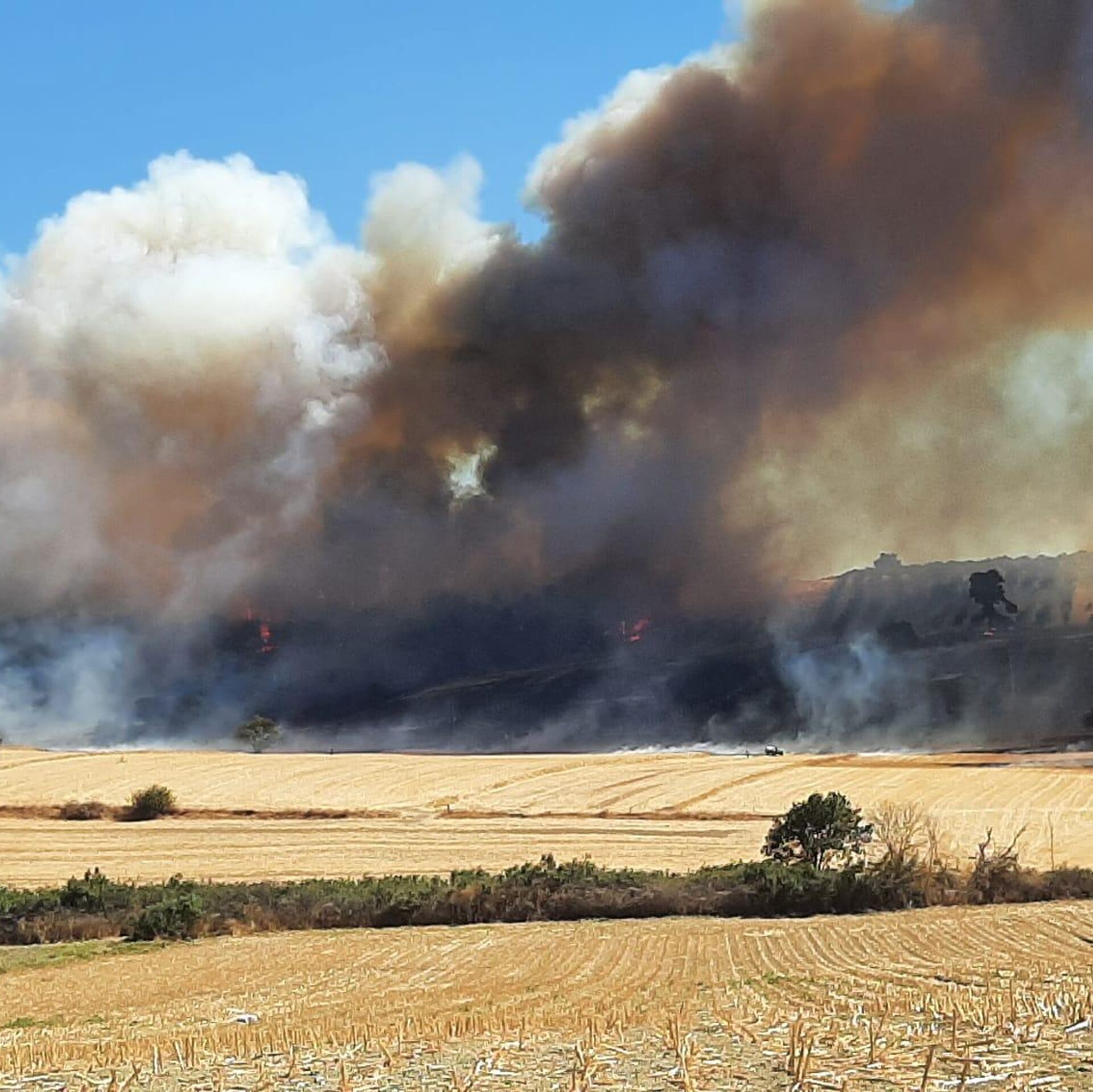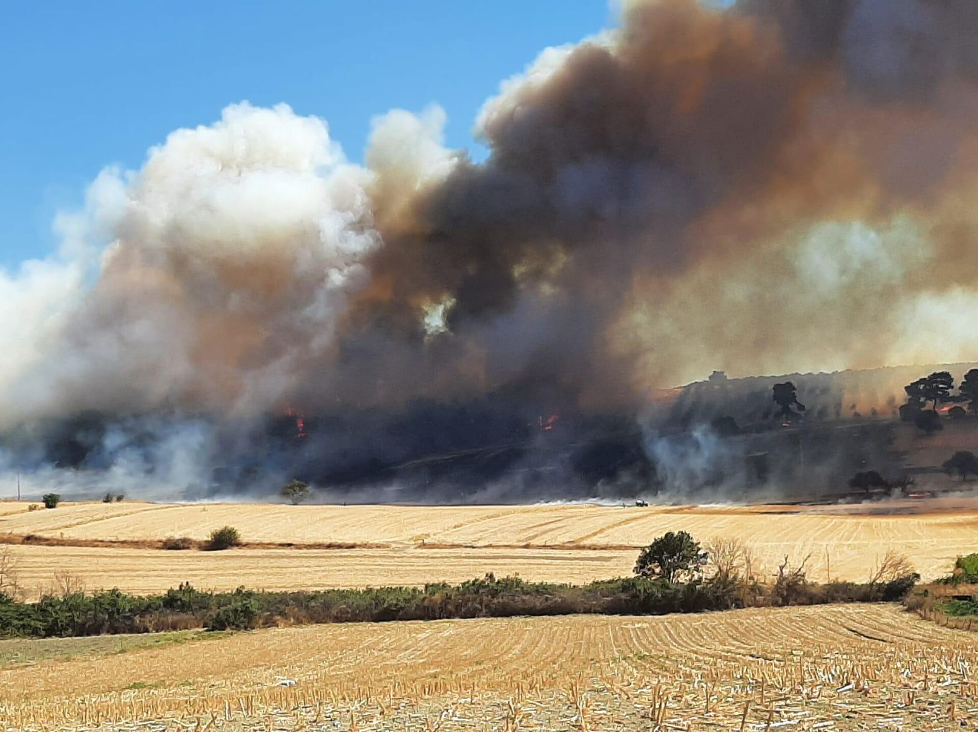 Akköy ile Güllüce köyleri arasındaki zeytinlikte bilinmeyen nedenle yangın çıktı.