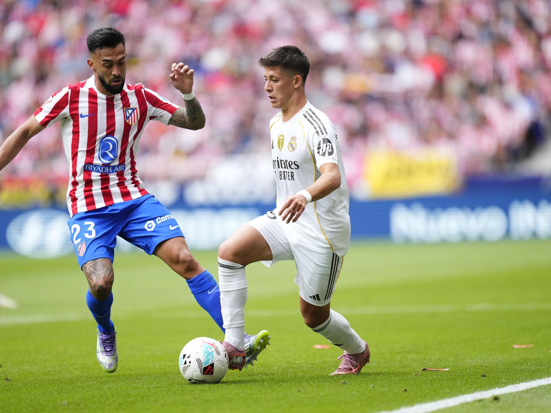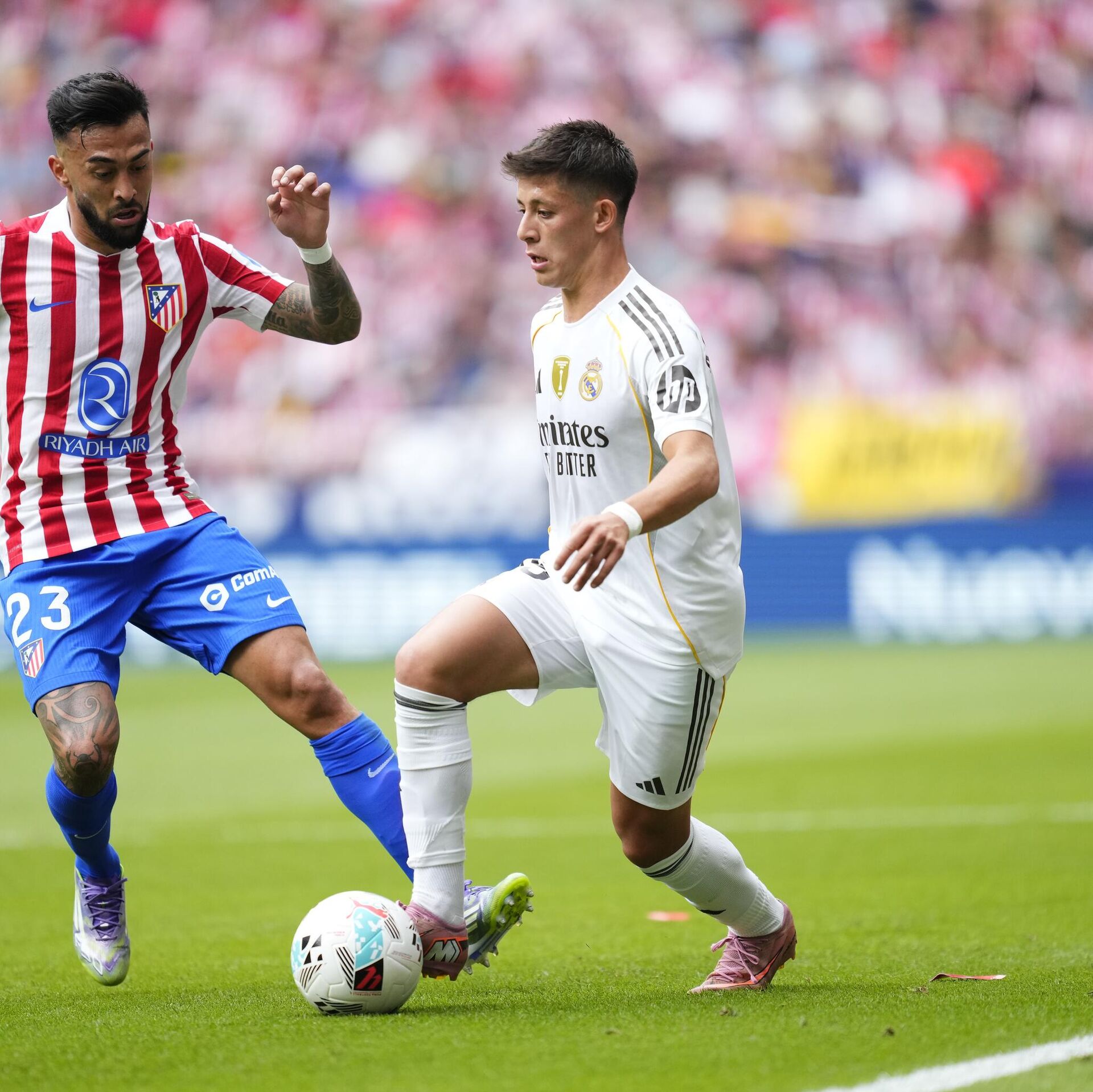 Haftaya lider giren Real Madrid, deplasmanda 14. dakikada Robin Le Normand'un golüyle 1-0 geriye düşerken 25. dakikada milli futbolcu Arda Güler'in derinlemesine uzun pasını gole çeviren Kylian Mbappe, eşitliği sağladı.Real Madrid, 36. dakikada Arda Güler'in golüyle 2-1 öne geçerken 45+3'te Alexander Sörloth, ilk yarının skorunu belirledi ve devreye 2-2 eşitlikle girildi.Atletico Madrid, Julian Alvarez'in 51. dakikada penaltıdan ve 64. dakikadaki golleri ile 90+3'te Antoine Griezmann'ın fileleri havalandırmasıyla karşılaşmadan 5-2 galip ayrıldı.LaLiga'ya 6'da 6 galibiyetle 18 puanla başlayan Real Madrid, 7. haftada ligde sezonun ilk yenilgisini alırken Atletico Madrid ise puanını 12'ye yükseltti.