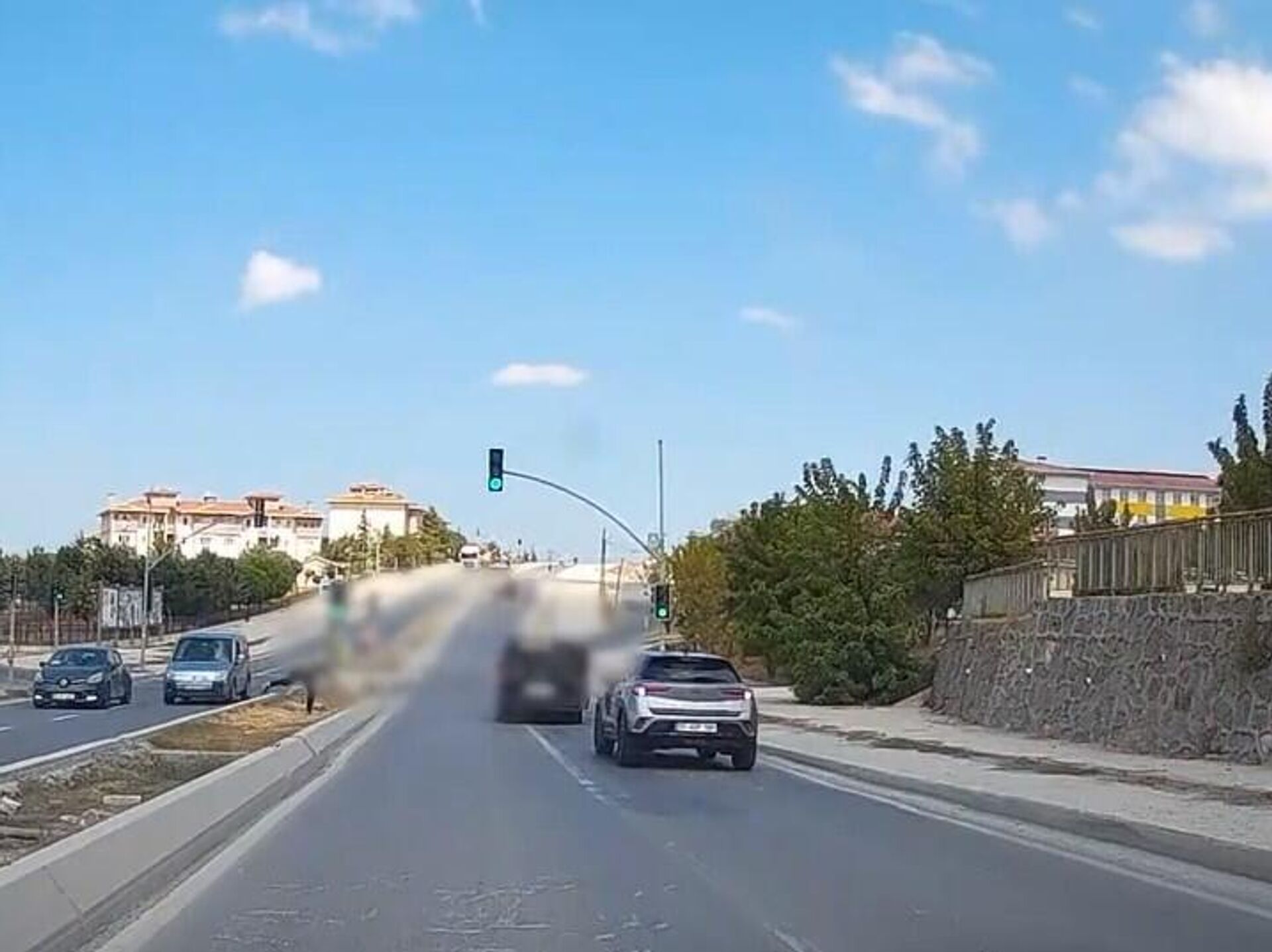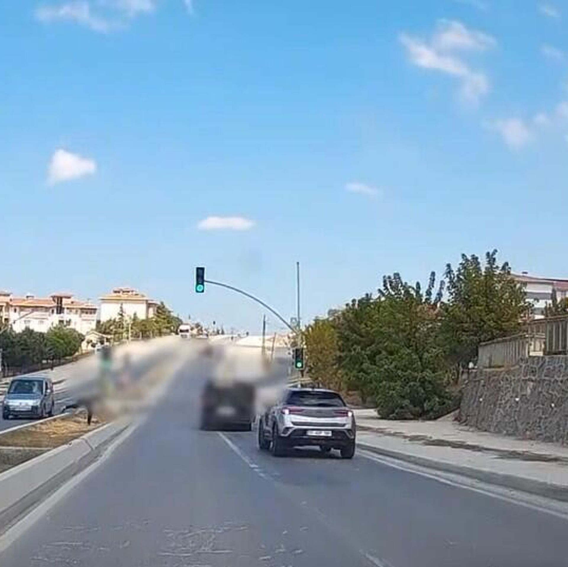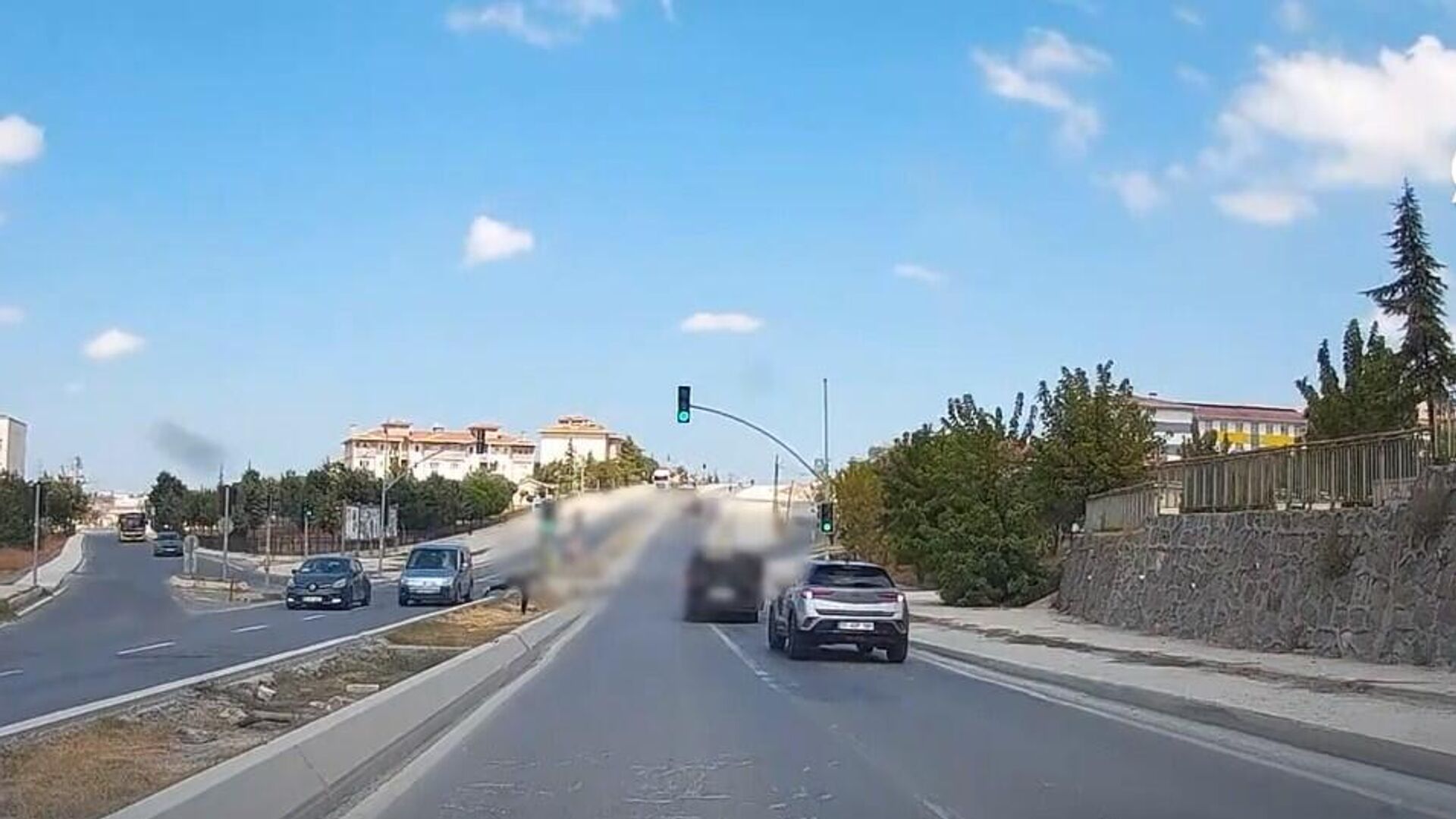 O sırada trafikte bulunan başka bir otomobilin kamerasına yansıyan olayda, taşlı saldırıya maruz kalan otomobilin sürücüsü, bir süre aracıyla geriye gittikten sonra olay yerinden uzaklaşıyor.