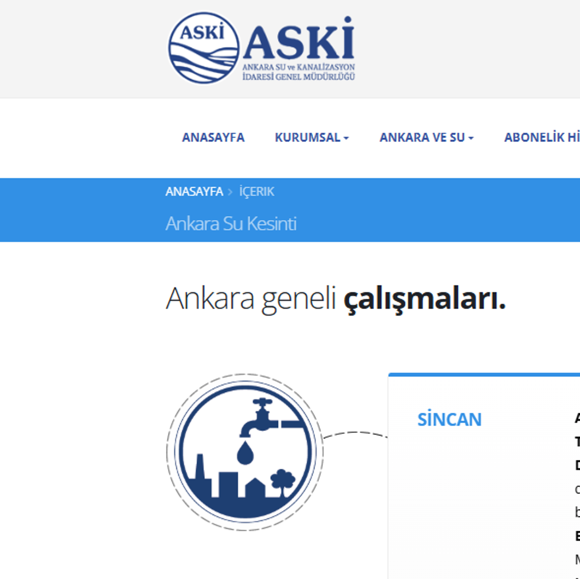 Ankara'nın 3 ilçesinde su kesintisi yapılacak