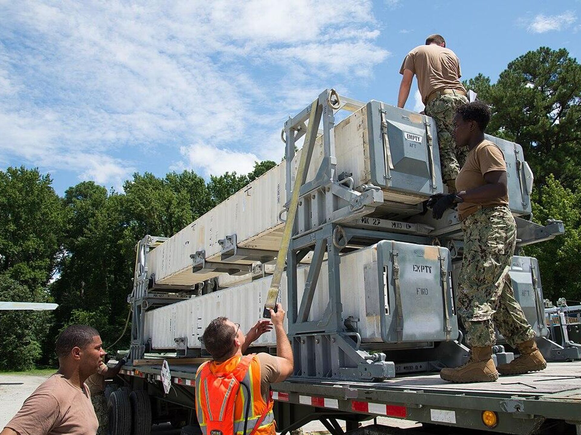 © Fotoğraf : Public Domain / Defensa de EEUUMilitares estadounidenses descargan desde un avión de transporte contenedores con misiles de crucero Tomahawk
