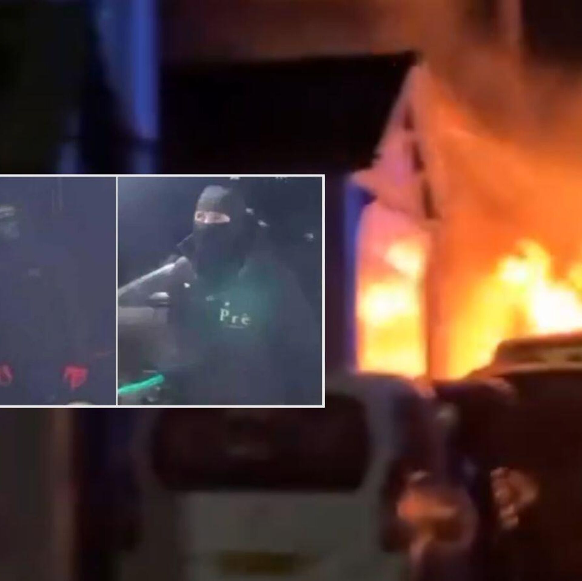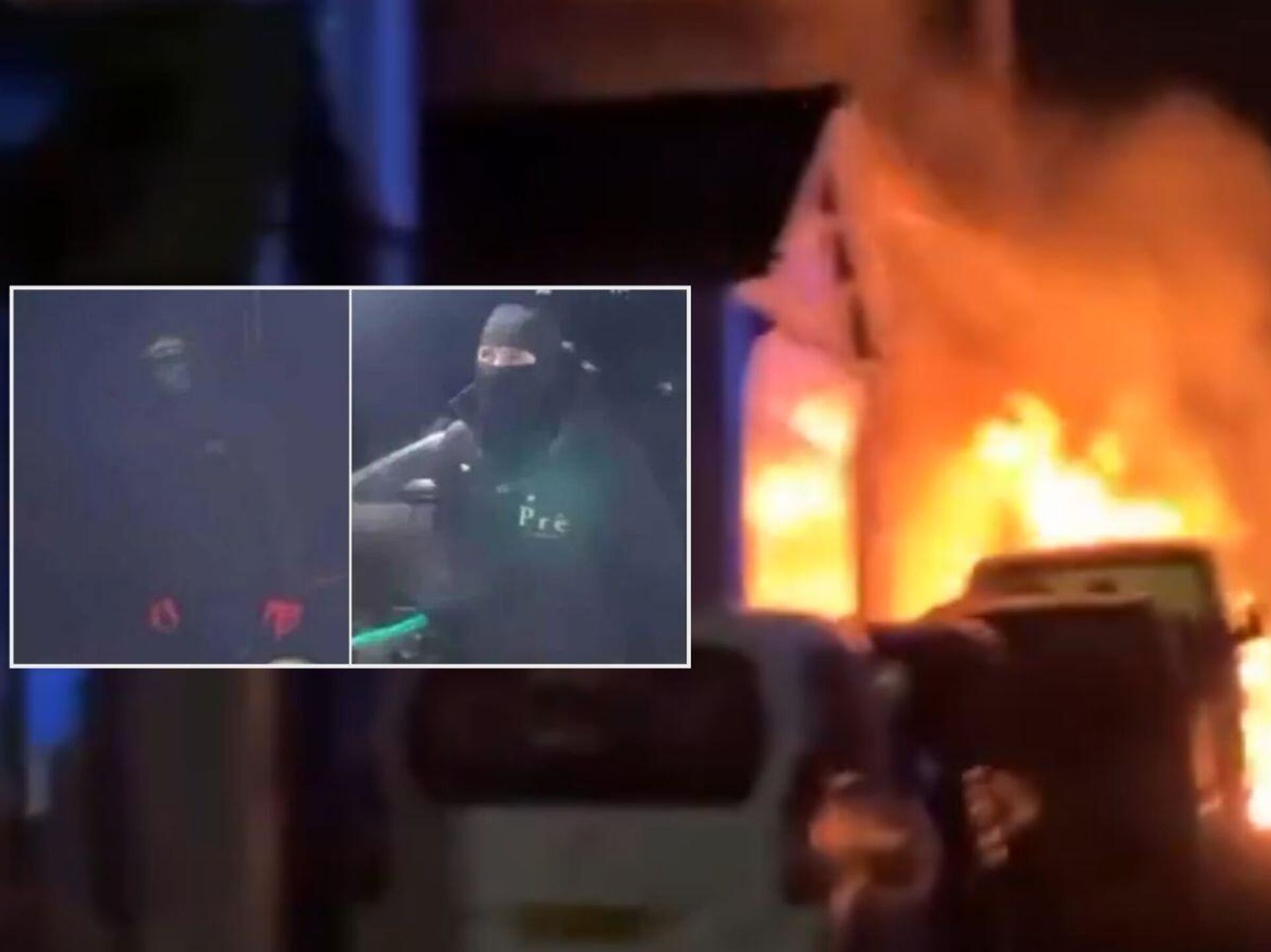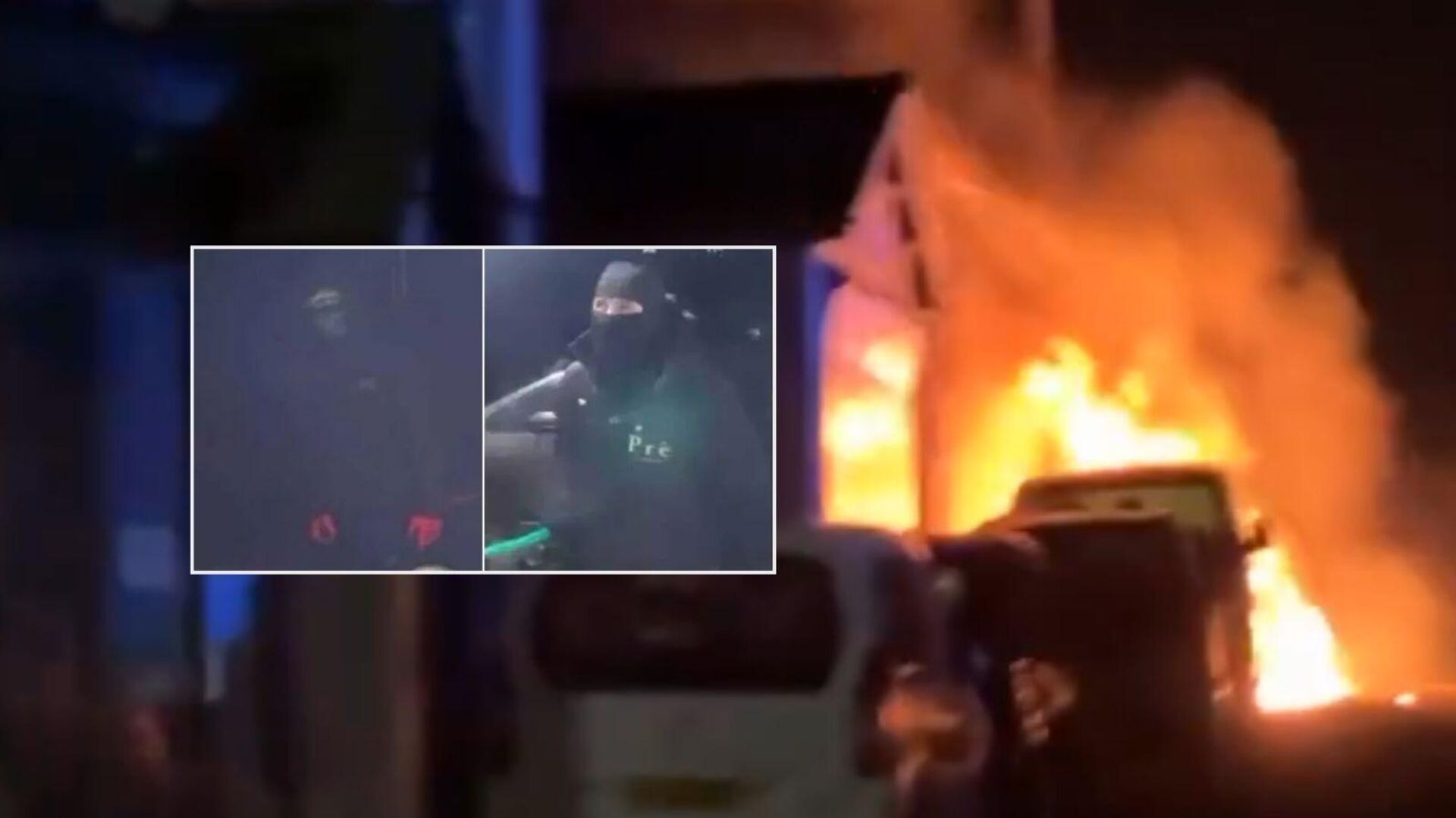 Güvenlik kamerası görüntülerinde, kar maskesi takan ve koyu renk kıyafetler giyen iki kişinin caminin ön kapısına yaklaşarak yanıcı bir sıvı sıktıkları ve ardından ateşe verdikleri görüldü.