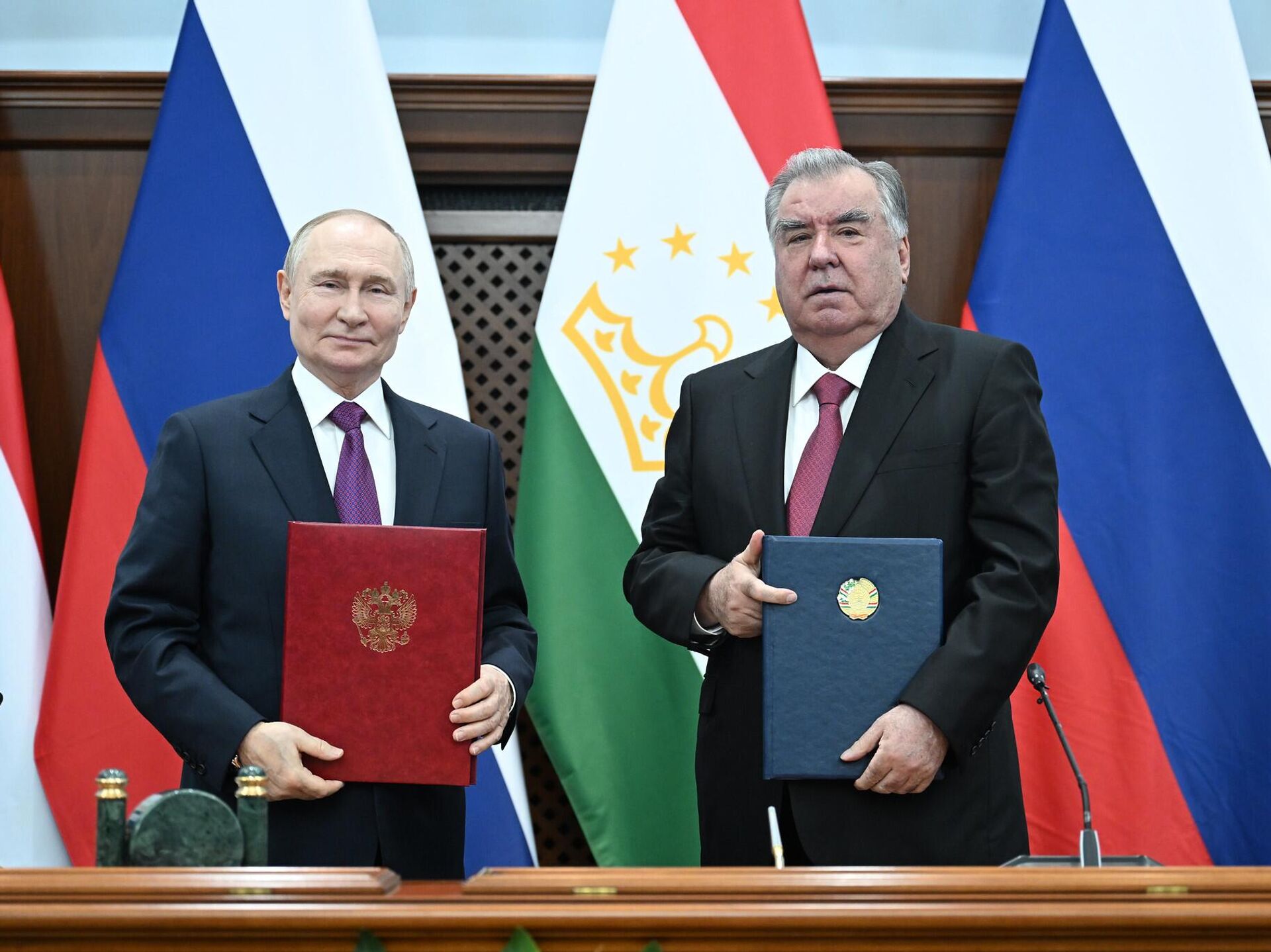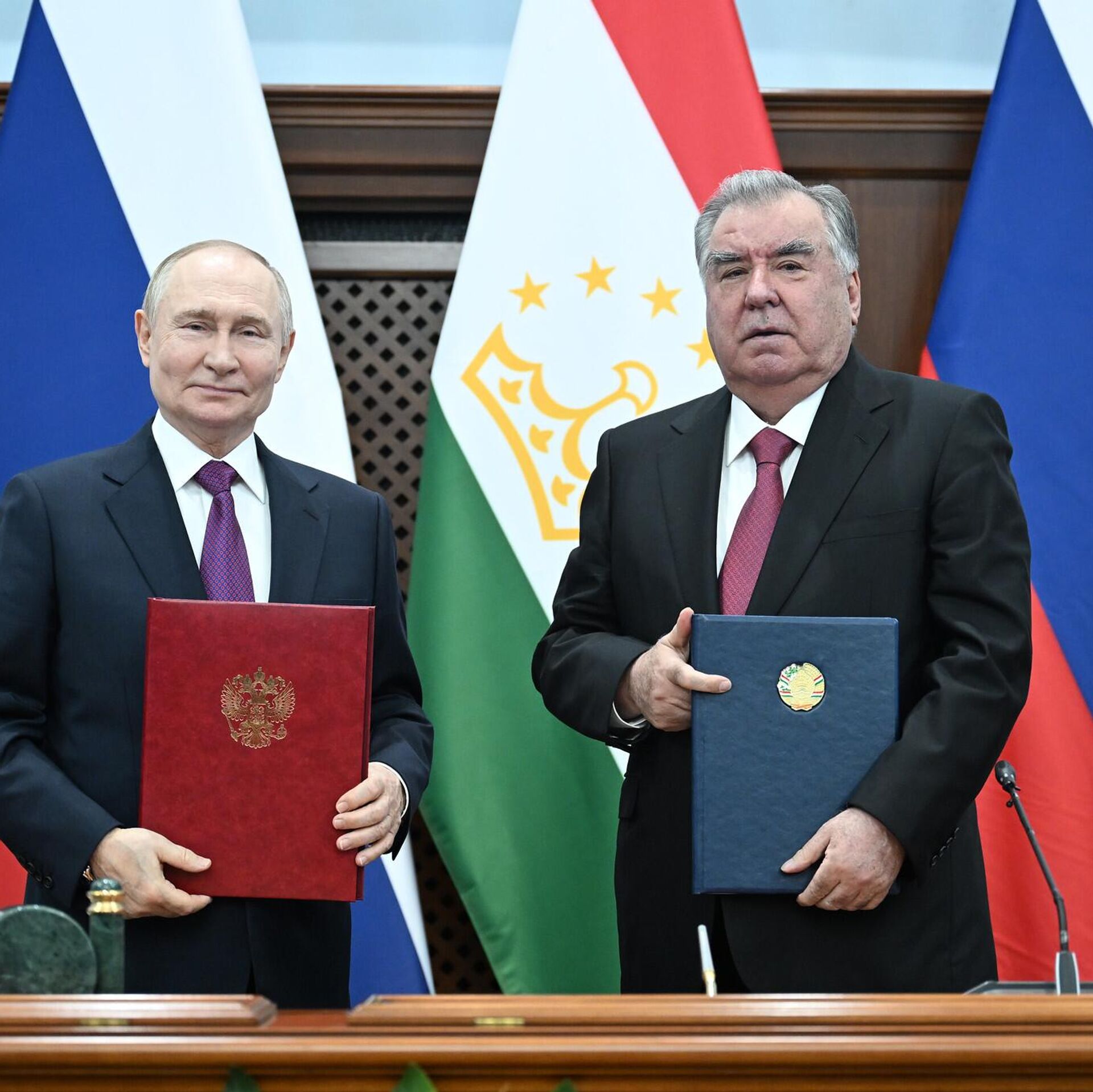 Rusya Devlet Başkanı Vladimir Putin ve Tacikistan Devlet Başkanı İmamali Rahman, bugün Duşanbe'de gerçekleştirilen ikili ve heyetler arası görüşmelerin ardından ortak açıklamaya imza attı.