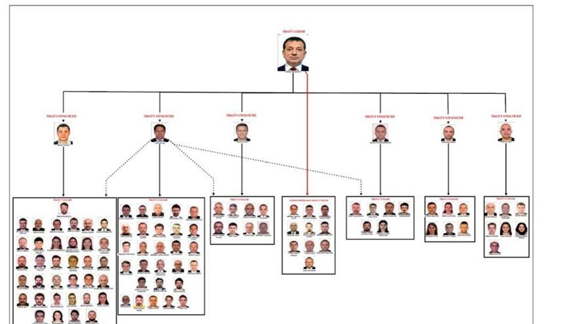 İddianamede örgütün kurucusu ve lideri şüpheli Ekrem İmamoğlu hakkında; Doğrudan işlediği suçlar olan suç işlemek amacıyla örgüt kurma, rüşvet (12 kez), suç gelirlerinin aklanması (7 kez), kamu kurum ve kuruluşları zararına dolandırıcılık (7 kez) suçlarından, Suç örgütünün kurucusu ve lideri olması dolayısıyla 5237 sayılı Türk Ceza Kanunu’nun 220/5’inci maddesi uyarınca örgütün faaliyeti çerçevesinde örgüt mensupları tarafından işlenen kişisel verilerin kaydedilmesi (2 kez), kişisel verileri ele geçirme ve yayma (2 kez), suç delillerini gizleme (4 kez), haberleşmenin engellenmesi, kamu malına zarar verme, rüşvet alma (47 kez), halkı yanıltıcı bilgiyi alenen yayma, irtikap (9 kez), kamu kurum ve kuruluşları zararına dolandırıcılık (39 kez), suçtan kaynaklanan mal varlığı değerlerini aklama (4 kez), ihaleye fesat karıştırma (70 kez), çevrenin kasten kirletilmesi, vergi usul kanununa muhalefet, orman kanununa muhalefet, maden kanununa muhalefet suçlarından olmak üzere toplamda iddianameye konu (142) eylemle ilgili olarak cezalandırma talep edilmiştir.