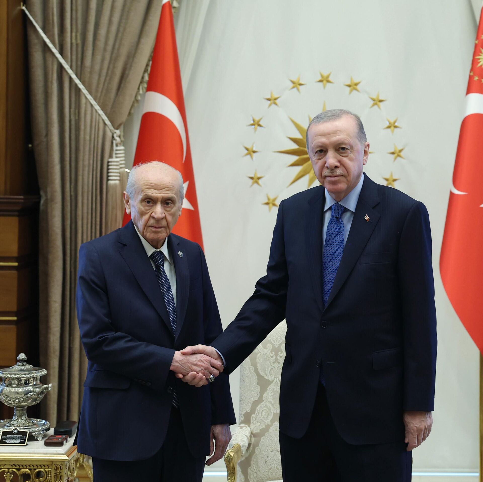 Cumhurbaşkanı Erdoğan, MHP Genel Başkanı Bahçeli'yi Cumhurbaşkanlığı Külliyesi'nde kabul etti - Sputnik Türkiye, 1920, 12.11.2025
