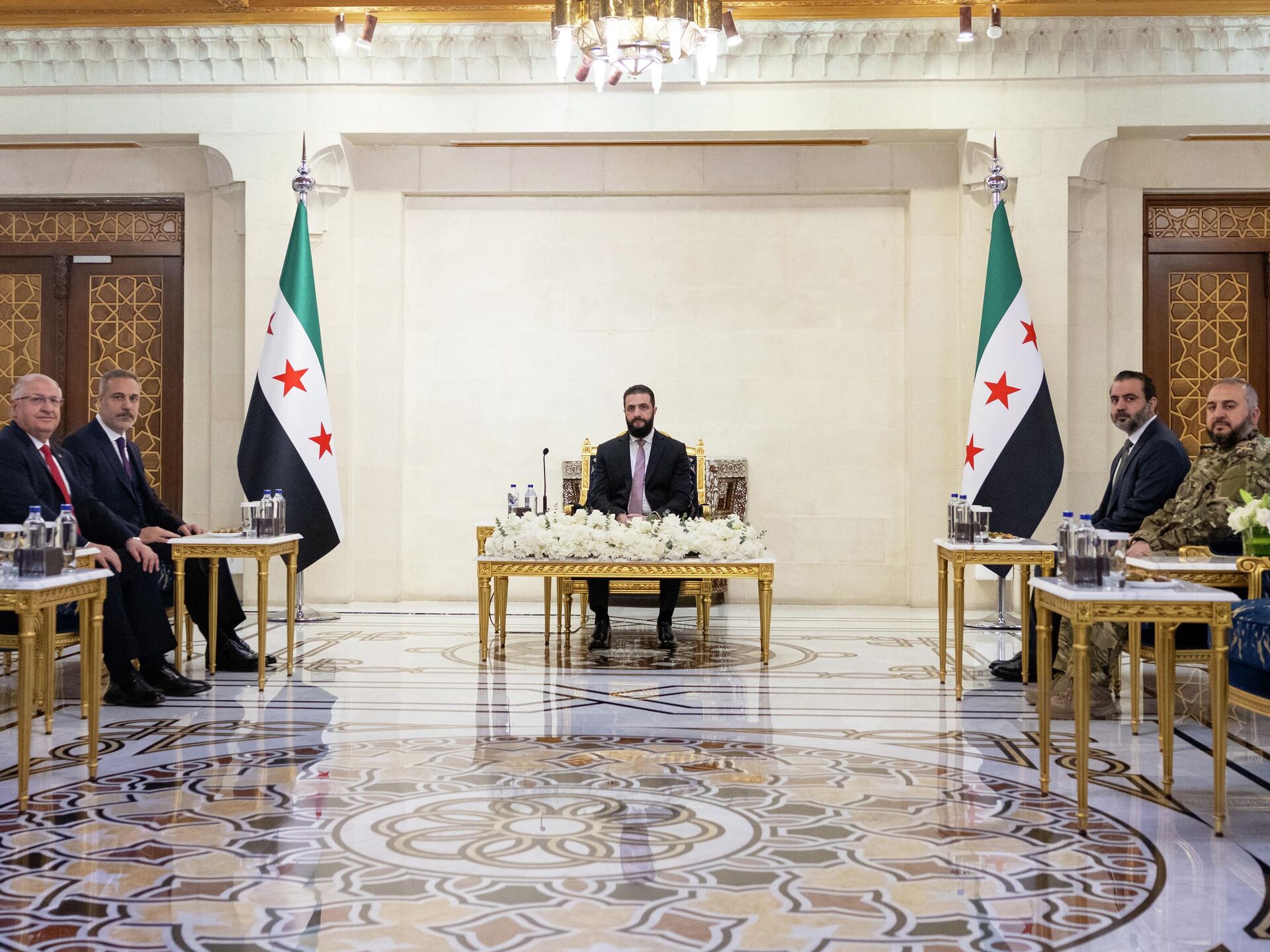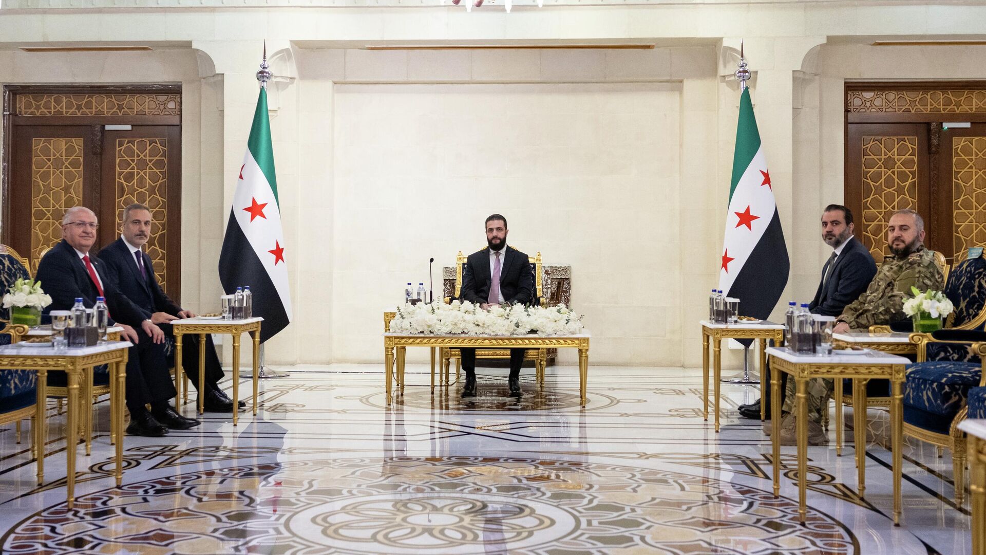 Suriye Cumhurbaşkanı Ahmed Şara ve üst düzey Suriyeli yetkililerle görüşme gerçekleştiriyor.