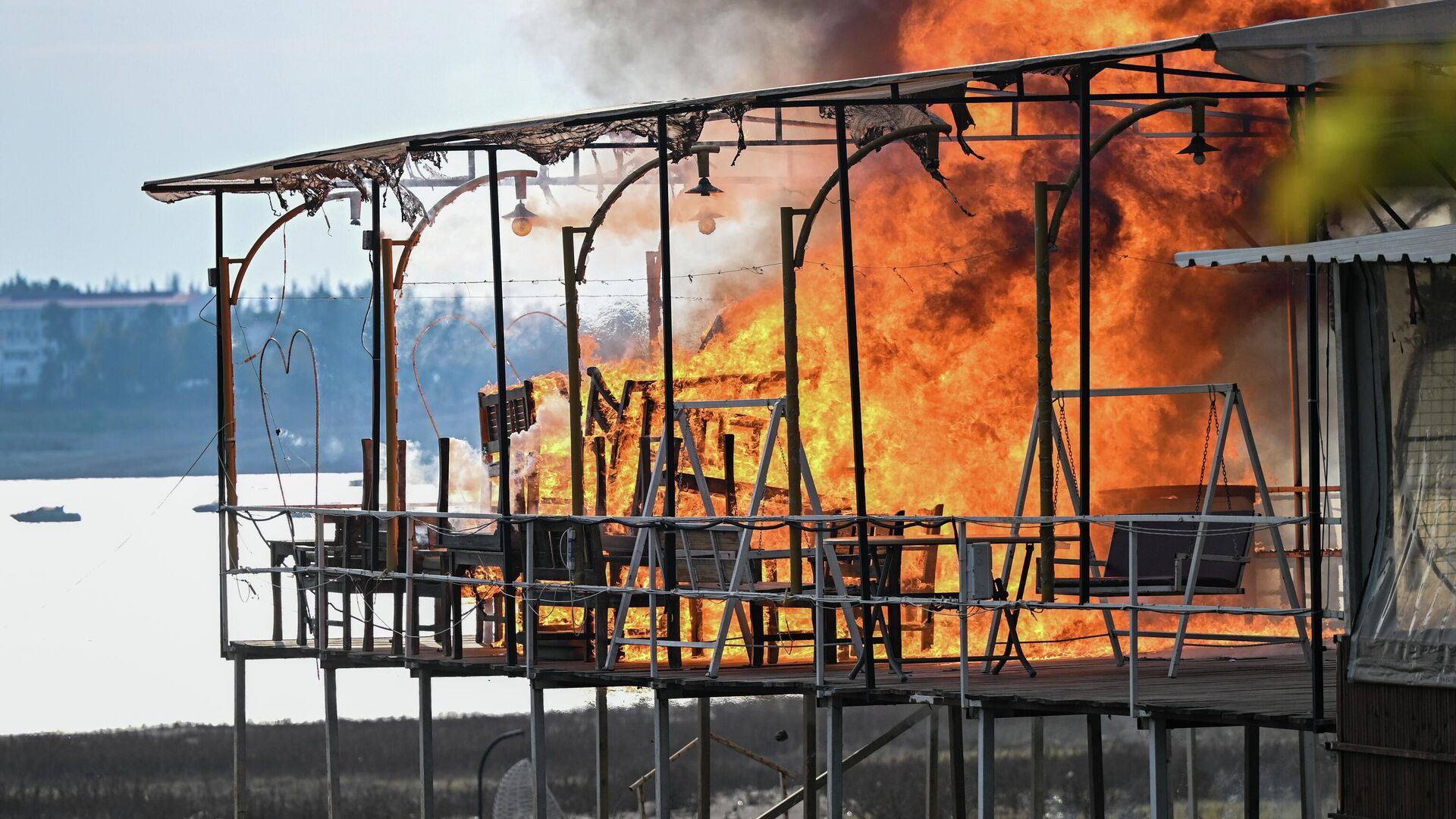 Menderes Adası'nda kaçak yapılar yıkıldı: Esnaf iş yerlerini ateşe verdi